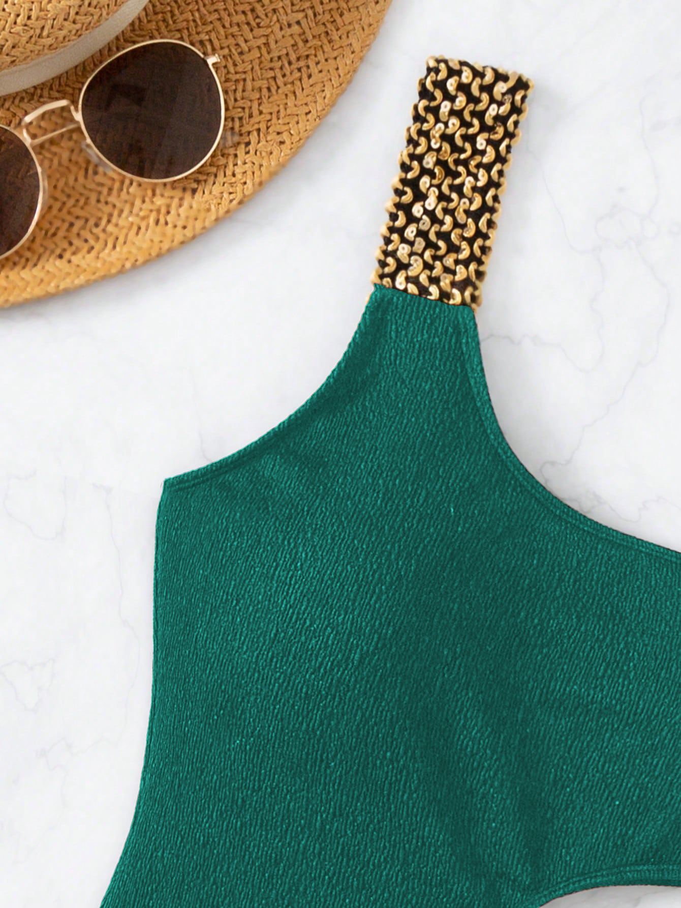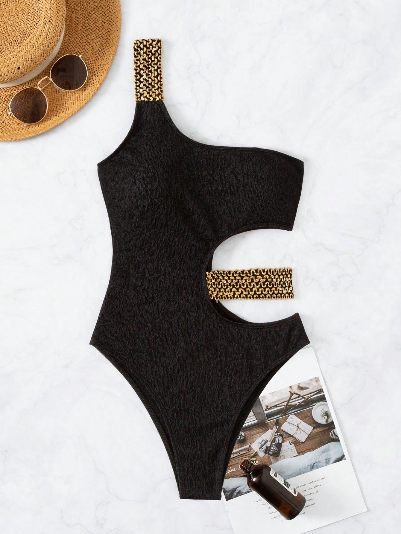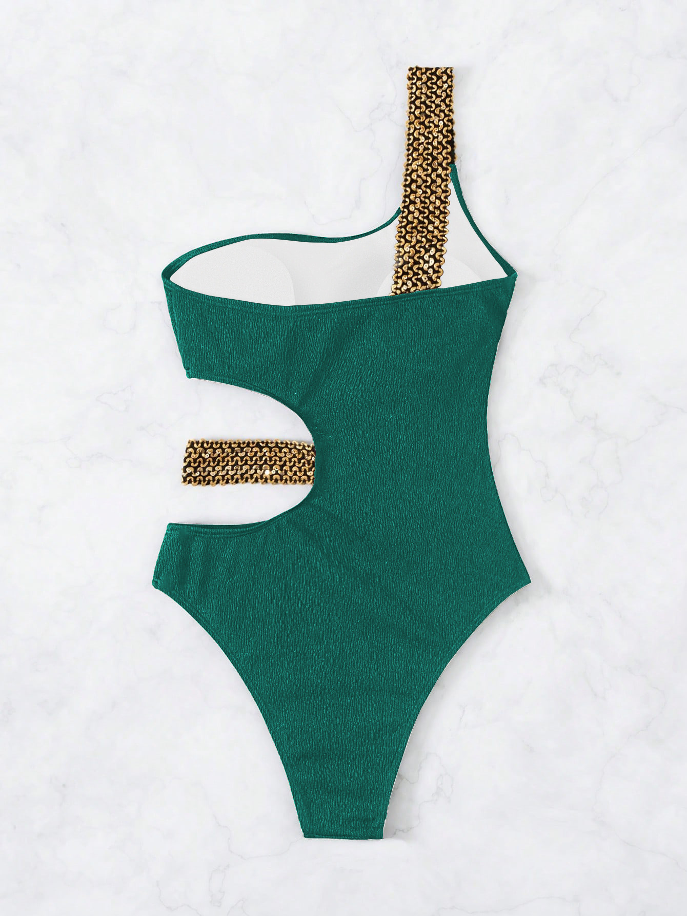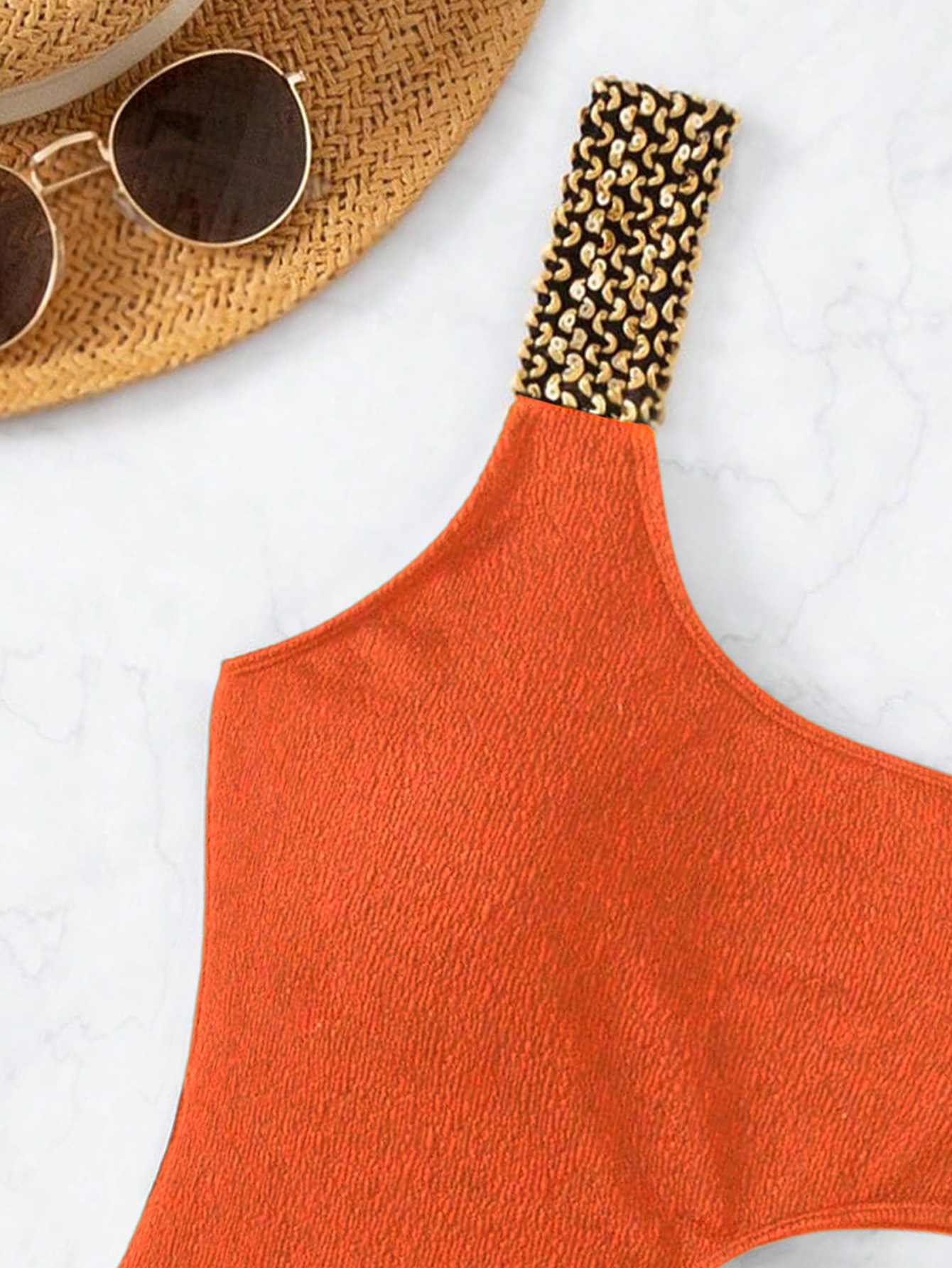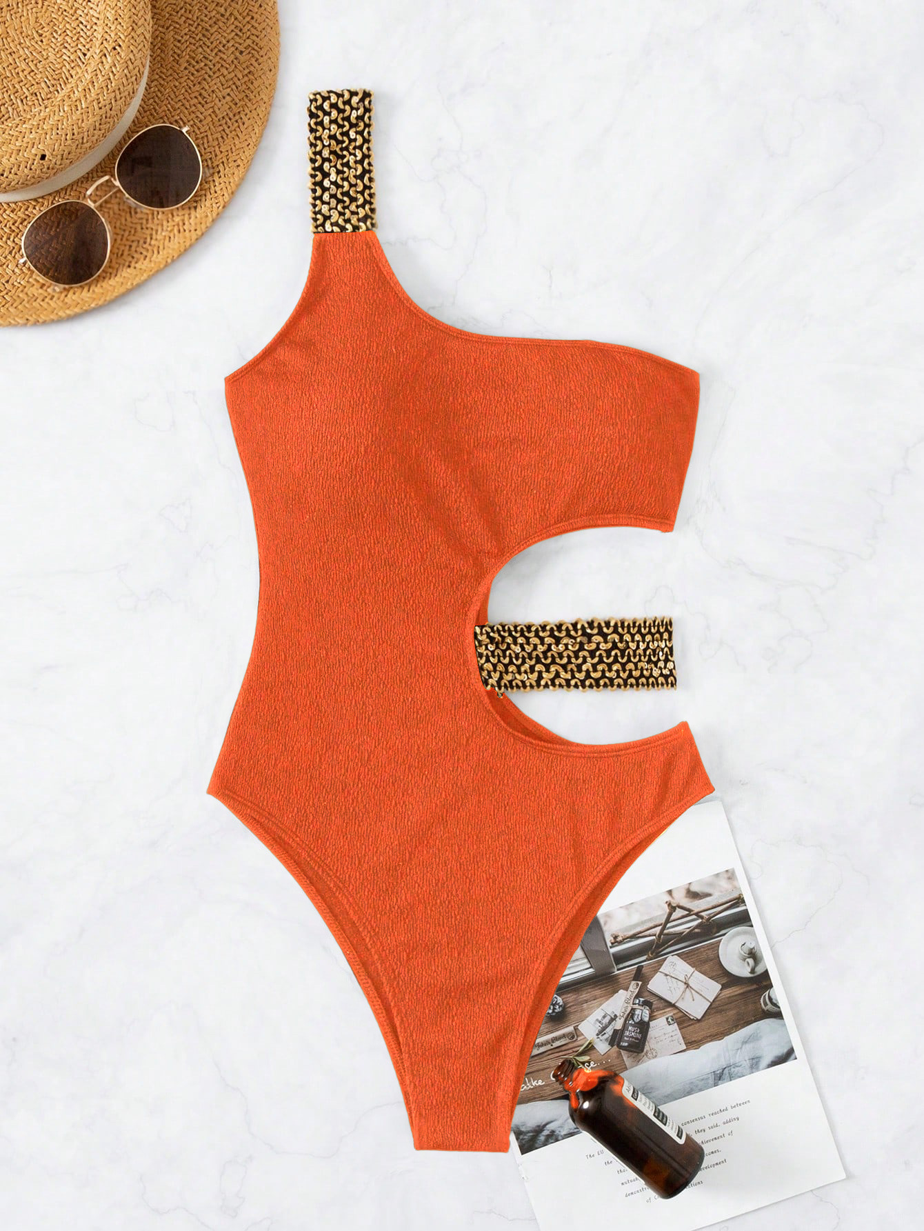 크로스보더 원피스 수영복 신상 단색 원숄더 아마존 섹시 비키니 온천 휴가 레이싱 수영복 여성용