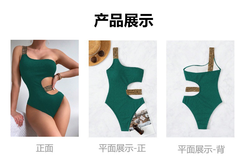 크로스보더 원피스 수영복 신상 단색 원숄더 아마존 섹시 비키니 온천 휴가 레이싱 수영복 여성용스토어 가기