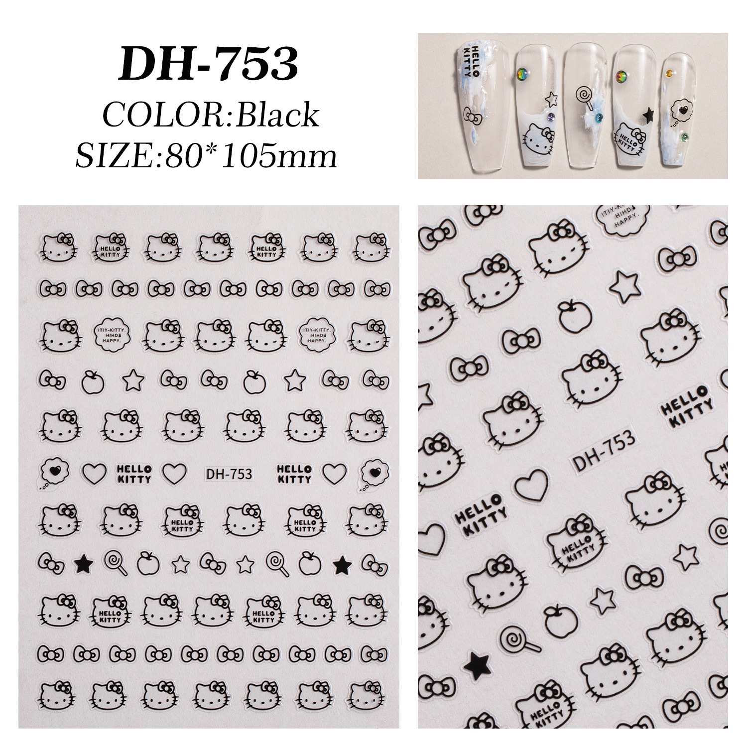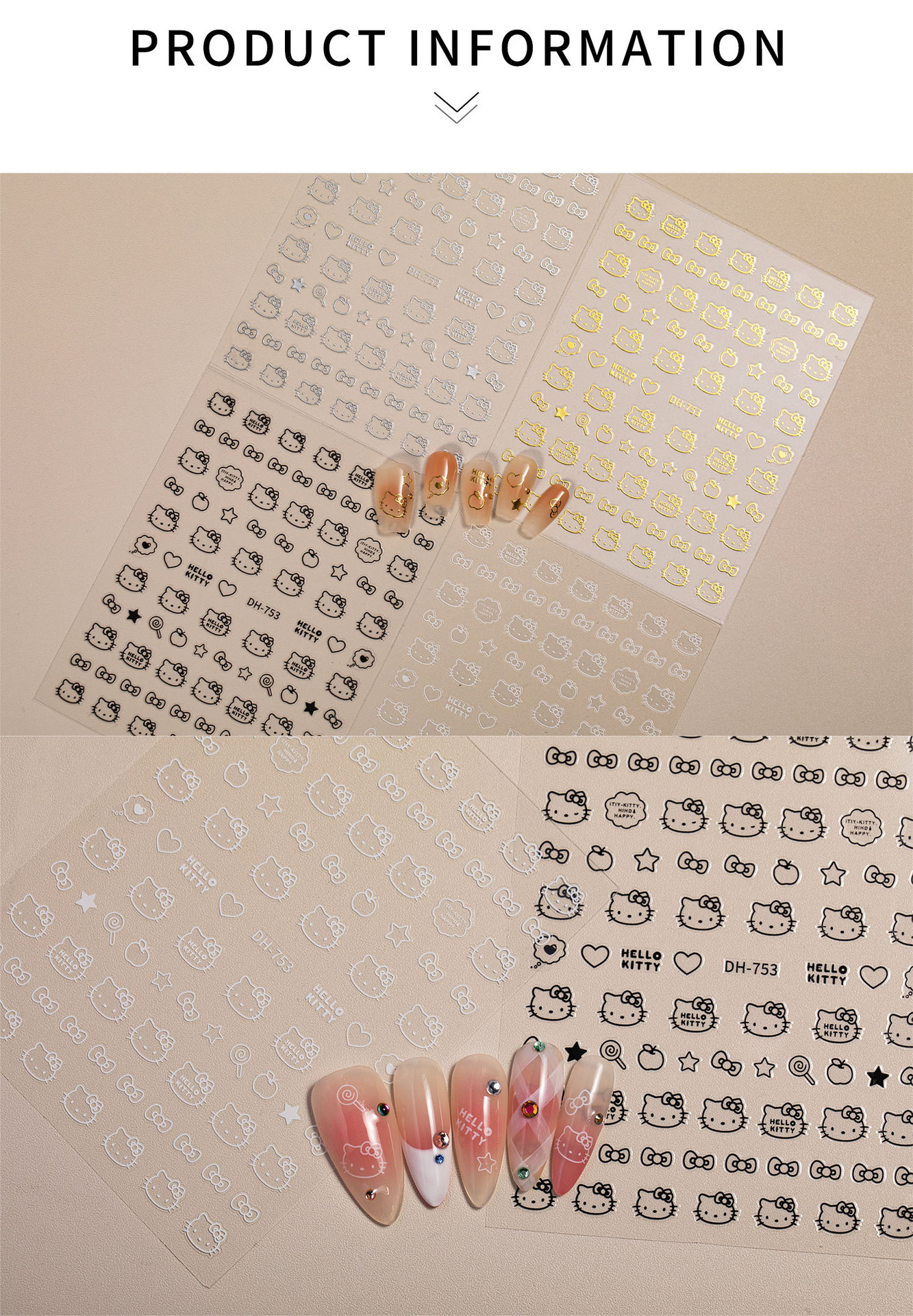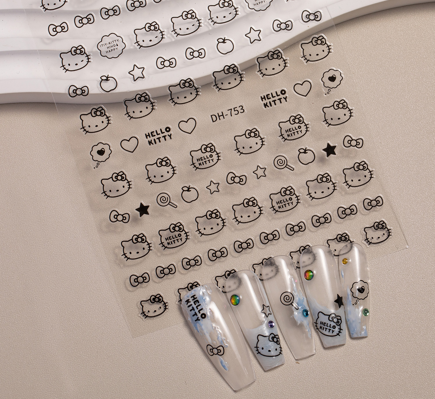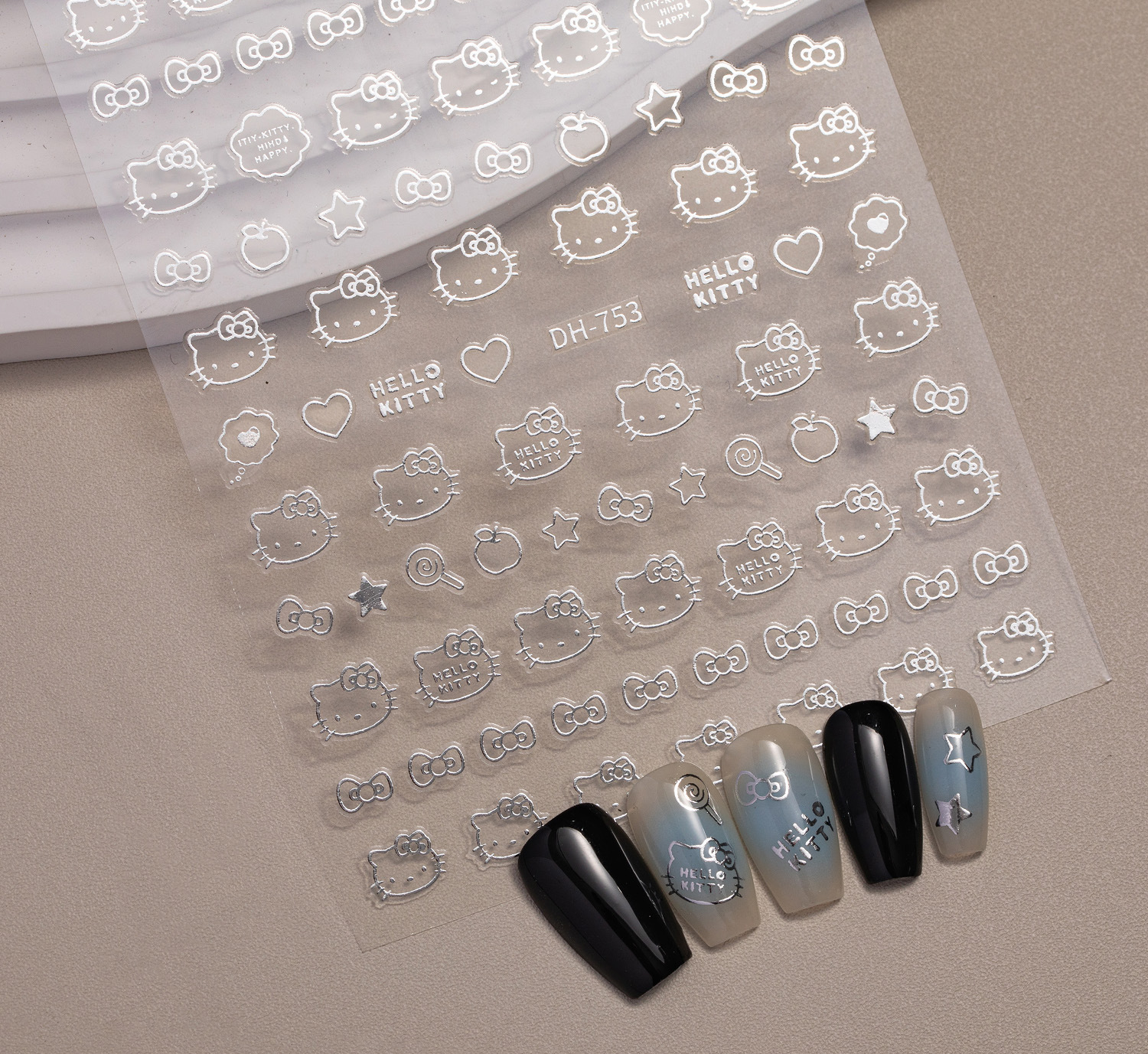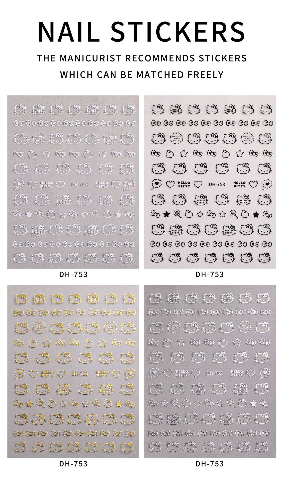 Ins 핫 스탬핑 귀여운 고양이 솔리드 컬러 러브 하트 초박형 이음매 없는 3D 접착 네일 아트 스티커 액세서리 (러브 스티커 포함)