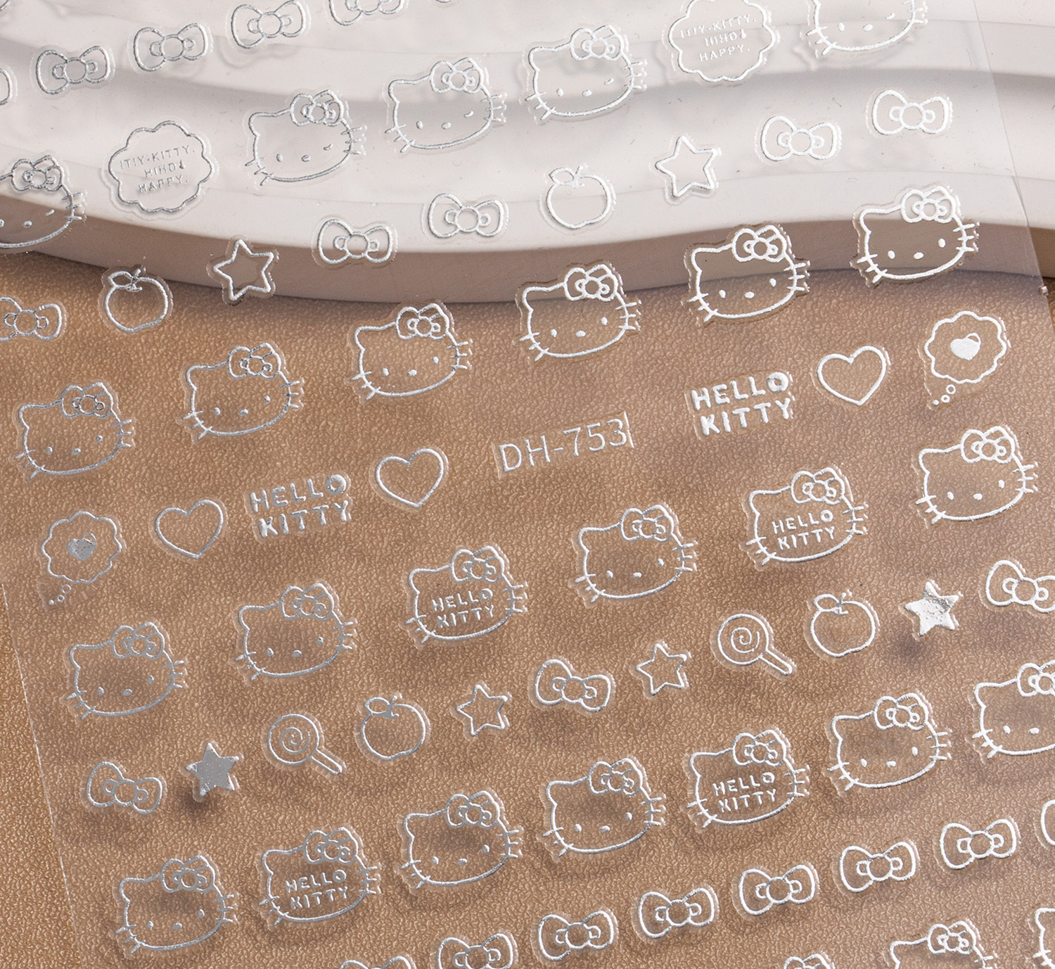 Ins 핫 스탬핑 귀여운 고양이 솔리드 컬러 러브 하트 초박형 이음매 없는 3D 접착 네일 아트 스티커 액세서리 (러브 스티커 포함)스토어 가기