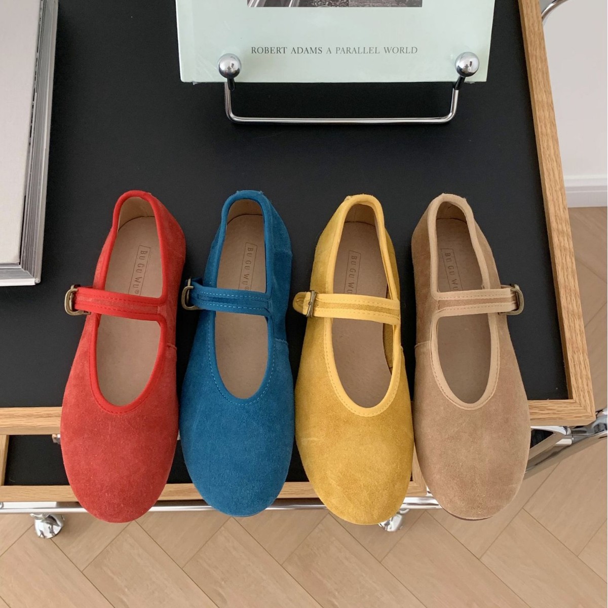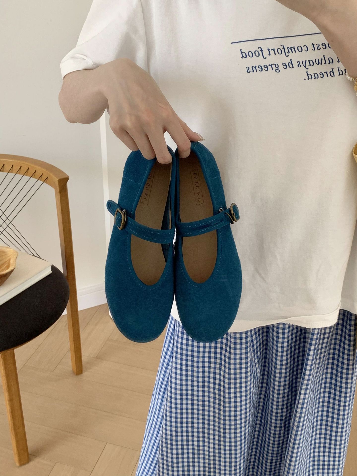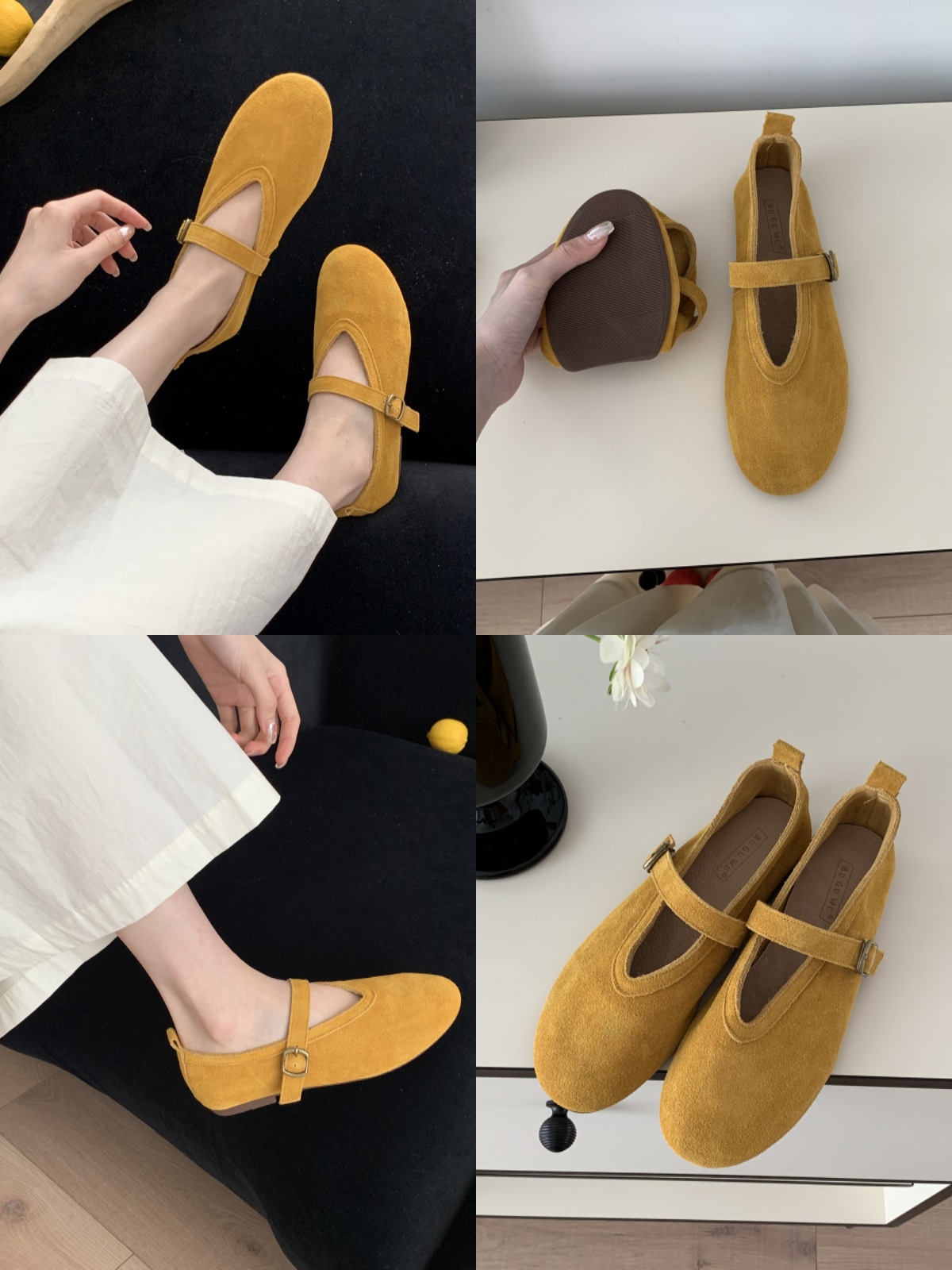 2025년 여름 신상 라운드 토 두꺼운 밑창 반투명 가죽 원 스트랩 편평한 밑창의 다용도 통근용 여성화스토어 가기