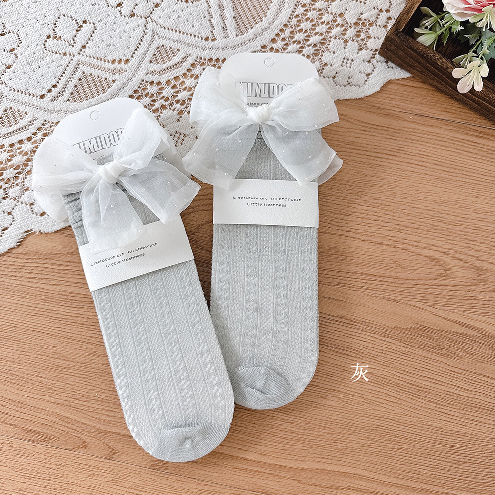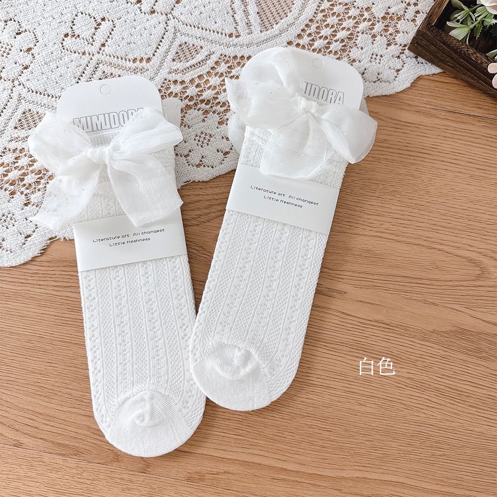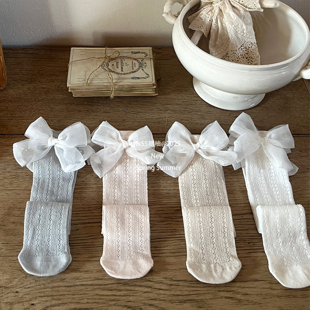 여름 대형 거즈 매듭 소녀 양말 한국 메쉬 통기성 어린이 중간 길이 양말 아기 뼈없는 얇은 면 양말 스타킹
