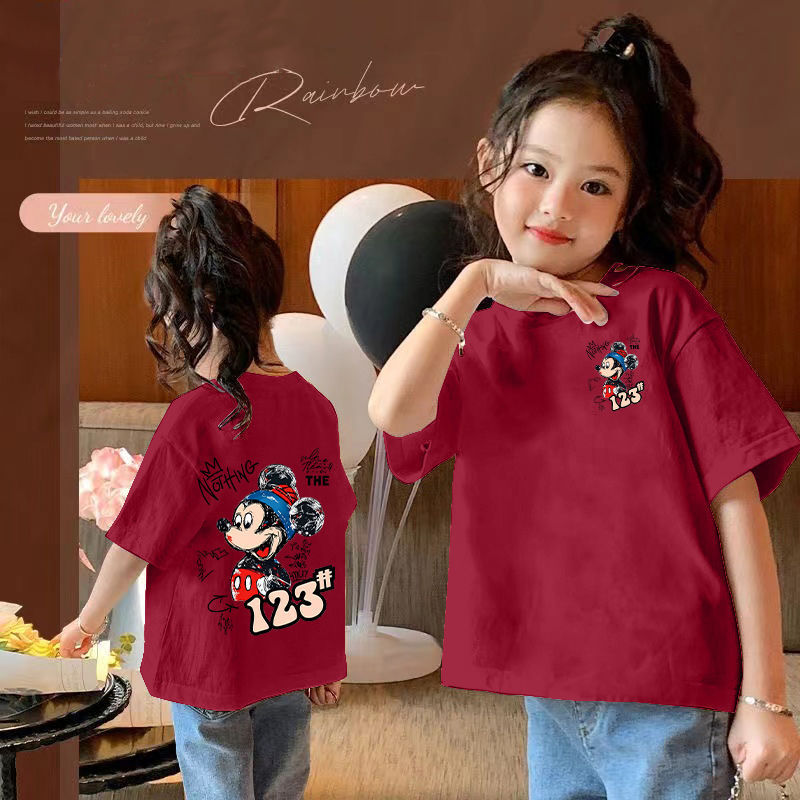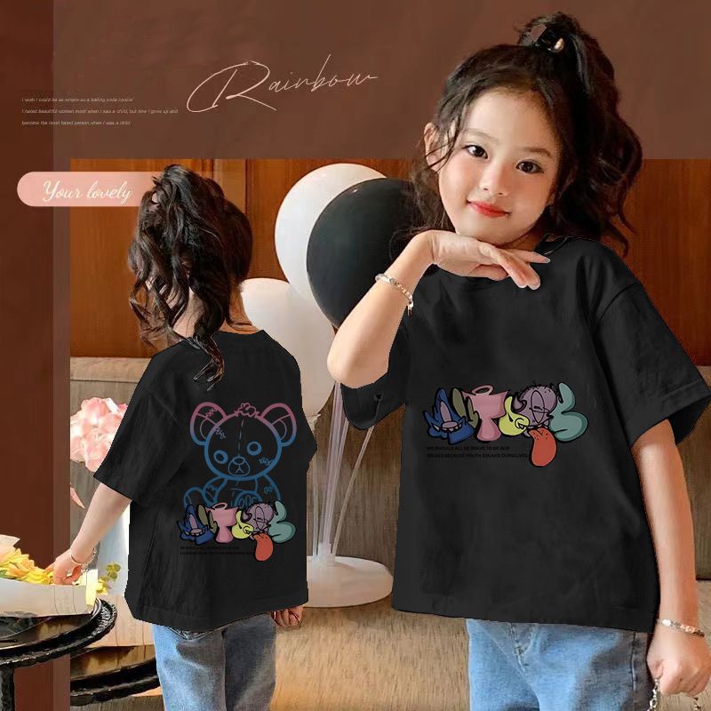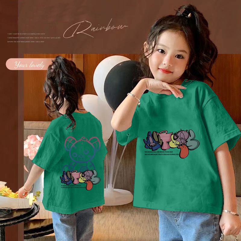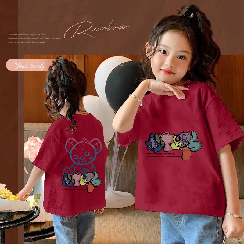 퓨어 코튼 탑 만화 소녀의 새로운베이스 셔츠 어린이 퓨어 코튼 티셔츠 걸스 반팔 서양식 중 큰 아이들스토어 가기