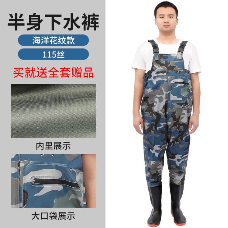 물 바지 저수지 비 바지 비 신발 방수 옷 물 신발 반쪽 남자 가죽 포크 잡기 물고기 전체 몸 두껍게스토어 가기