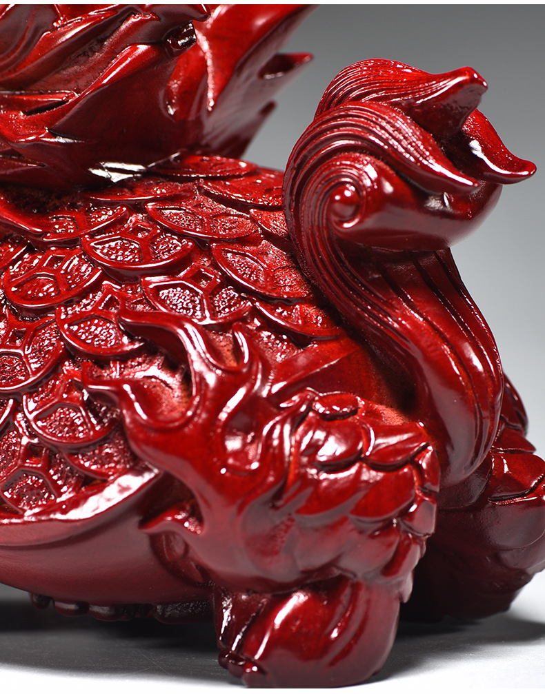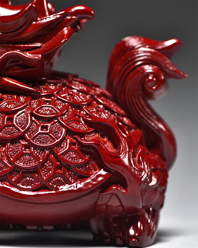 붉은 나무 조각 드래곤 거북이 장식품 드래곤 거북이 현무 가정 거실 코너 마스코트 장식 마호가니 공예품