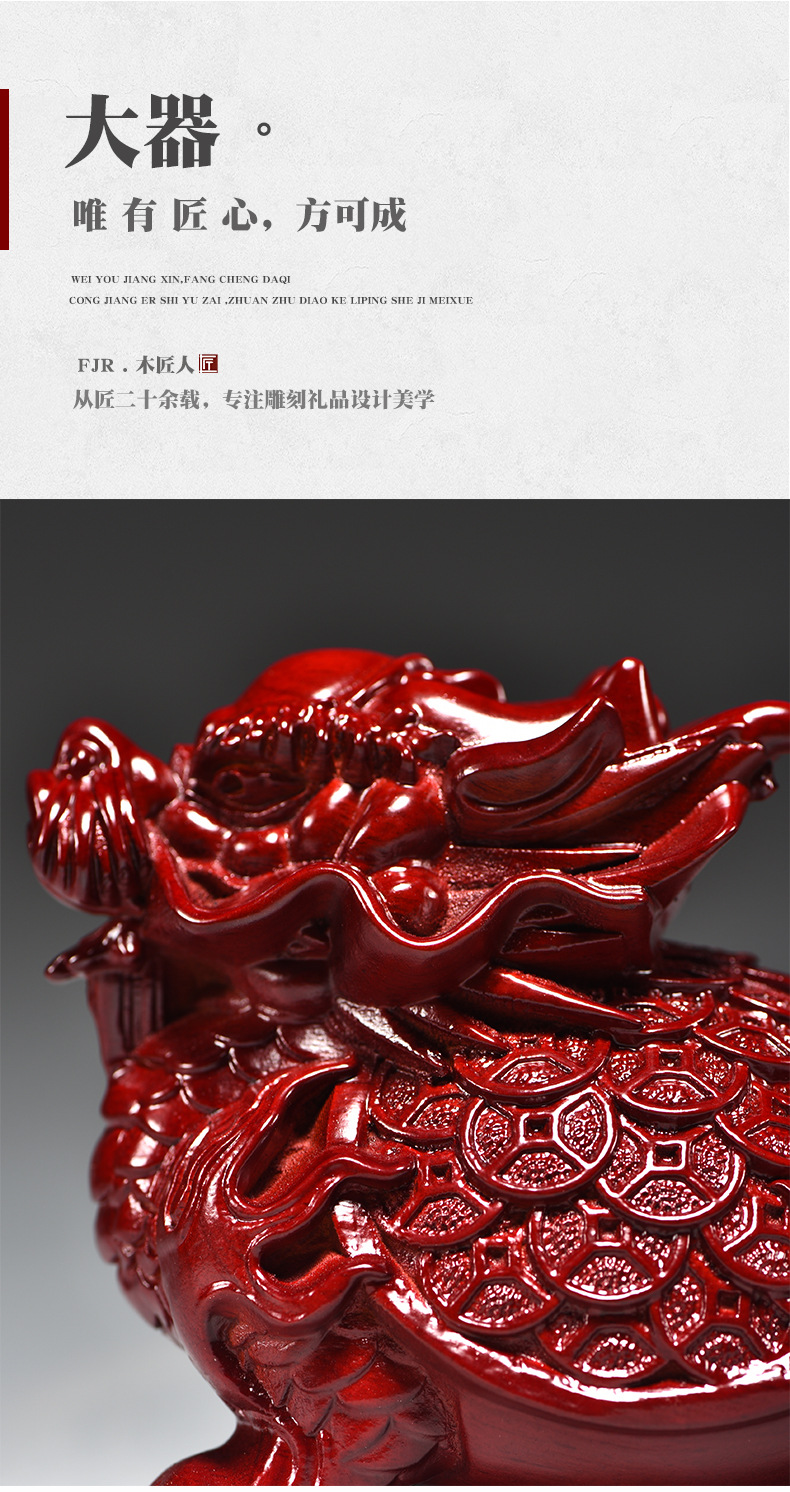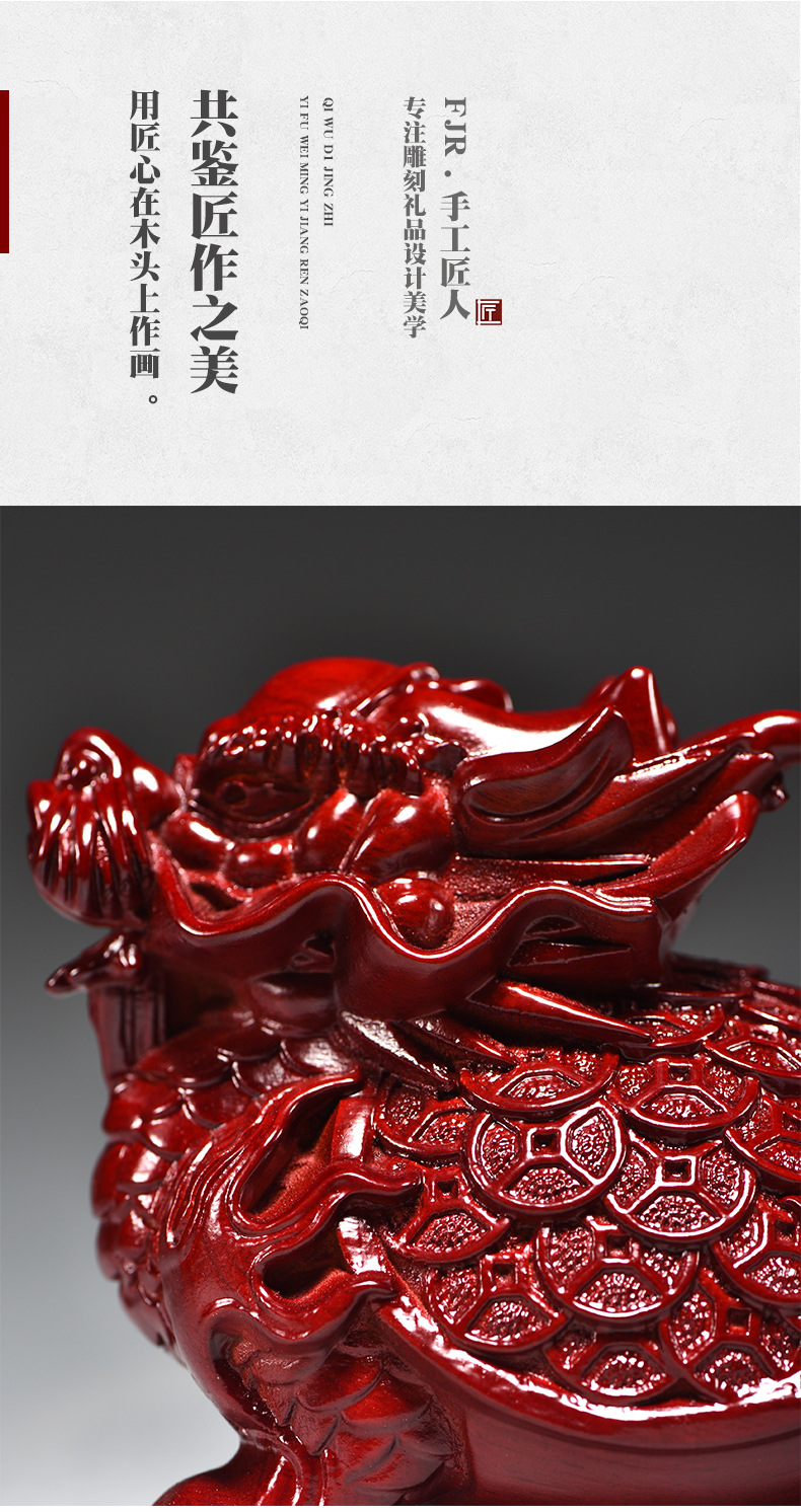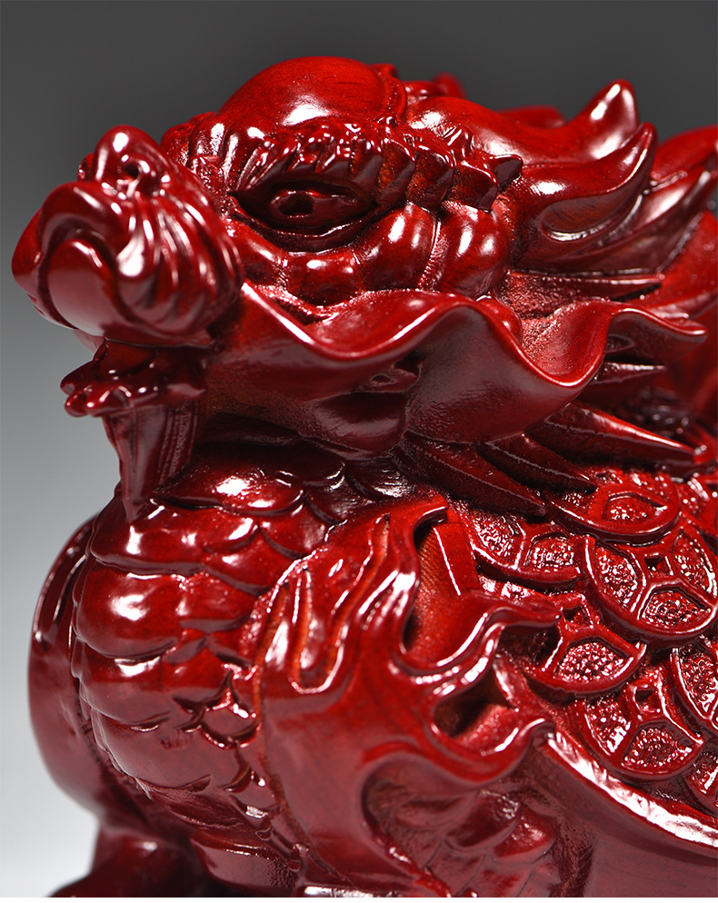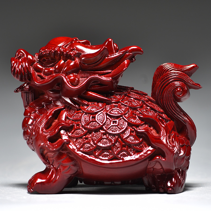 붉은 나무 조각 드래곤 거북이 장식품 드래곤 거북이 현무 가정 거실 코너 마스코트 장식 마호가니 공예품스토어 가기