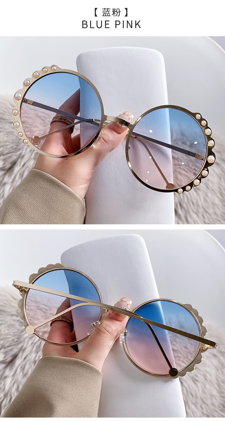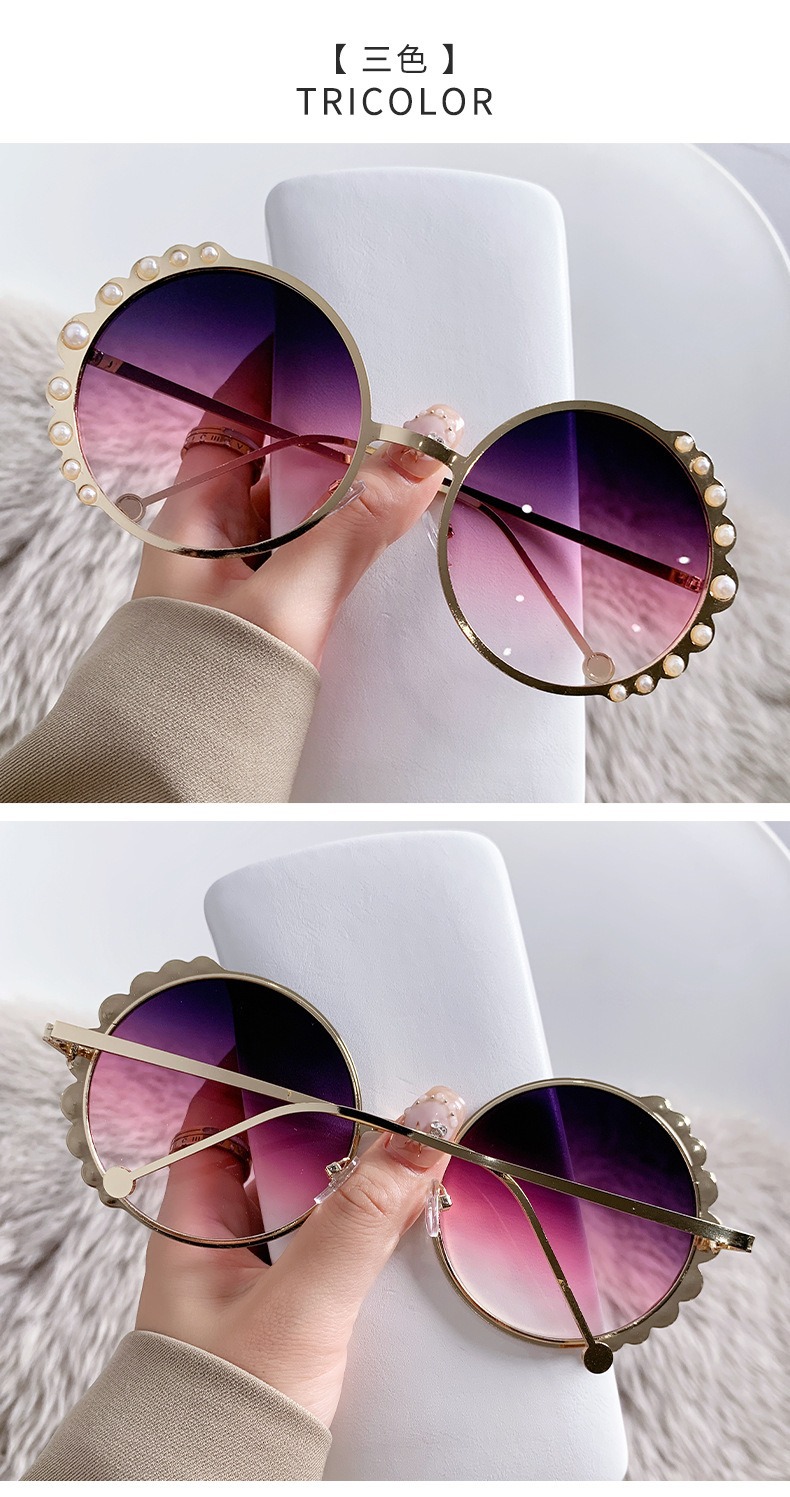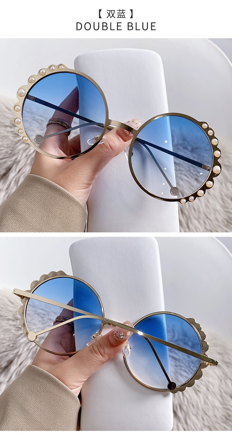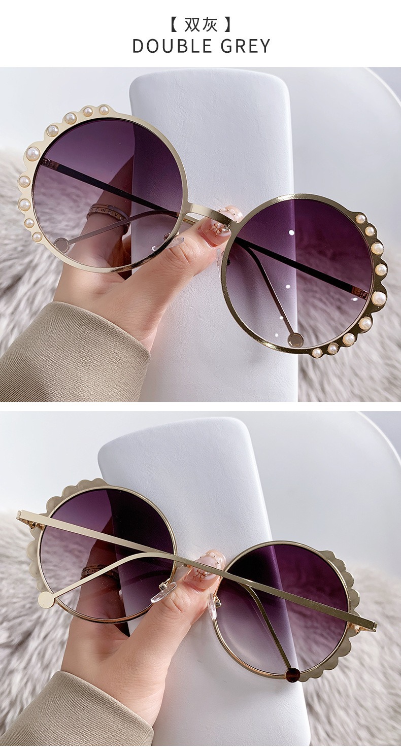 2025 국경 새로운 독특한 힙합 라운드 프레임 세트 진주 선글라스 여성 유럽과 미국의 꽃 모양 금속 선글라스스토어 가기