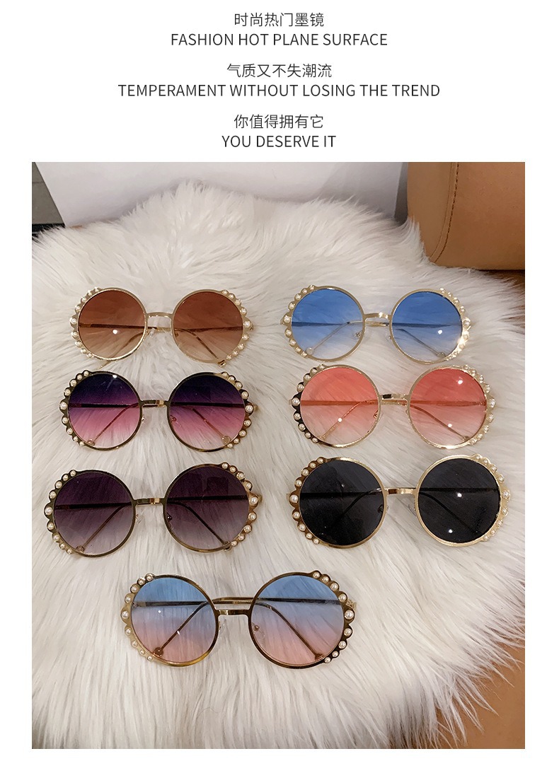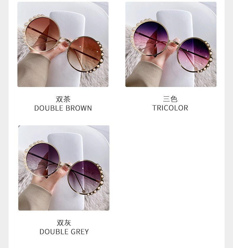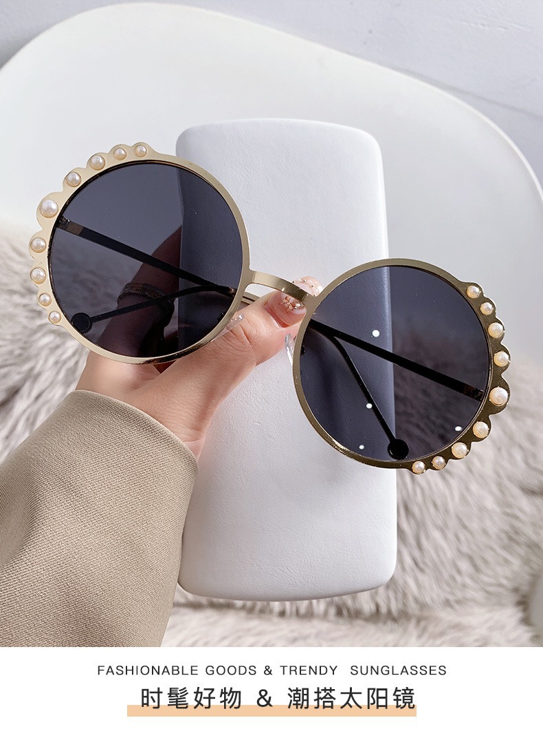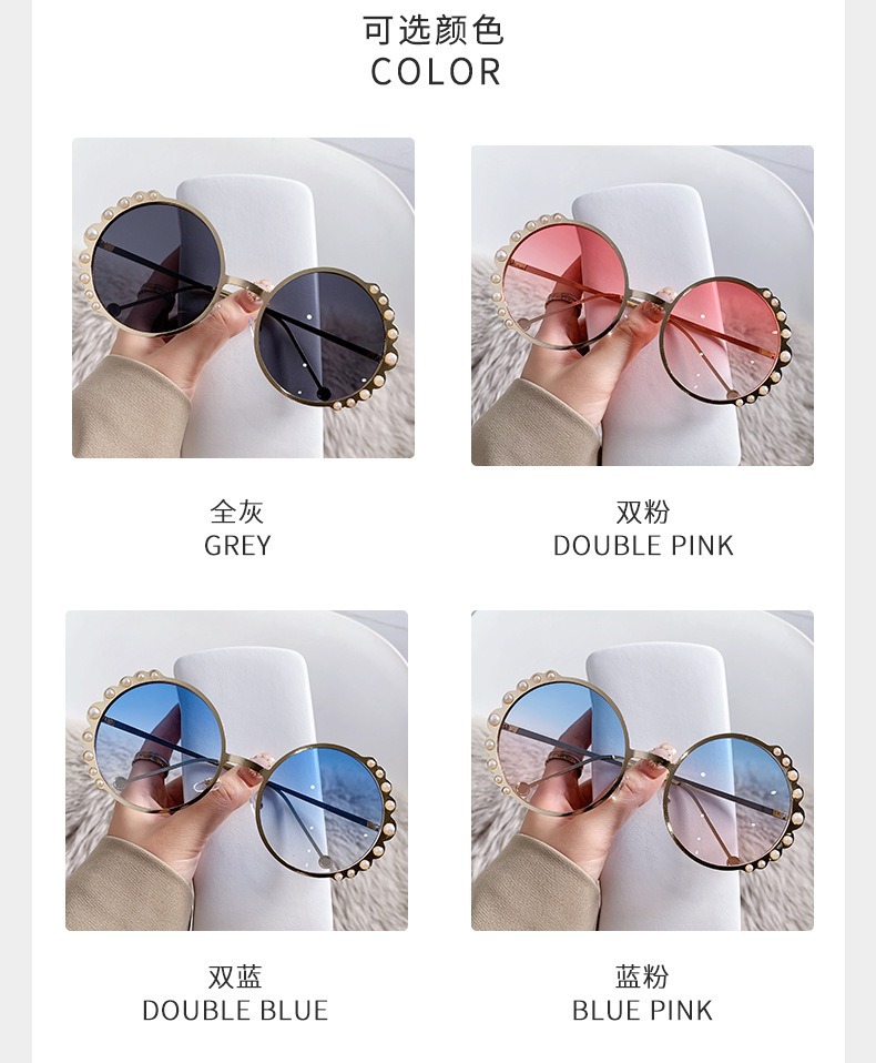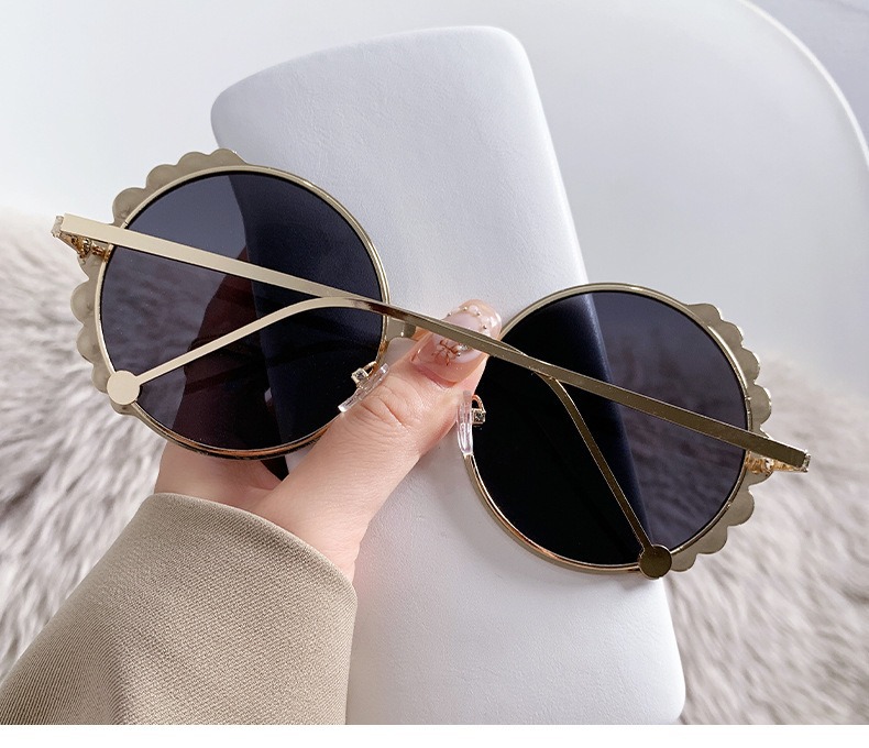 2025 국경 새로운 독특한 힙합 라운드 프레임 세트 진주 선글라스 여성 유럽과 미국의 꽃 모양 금속 선글라스스토어 가기