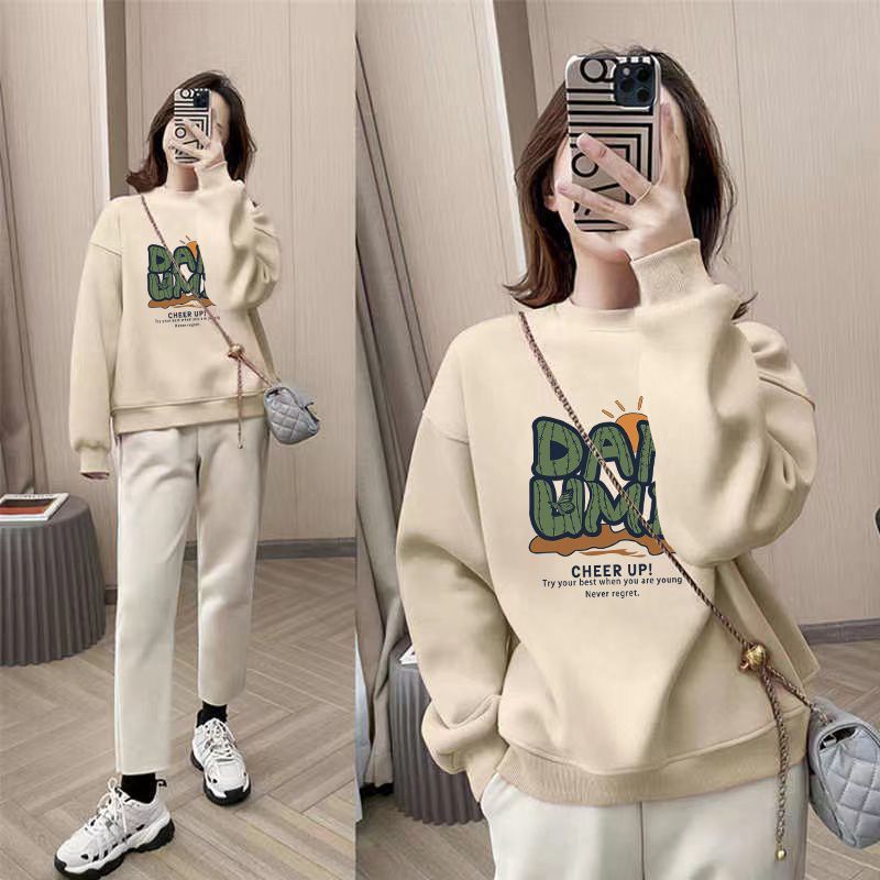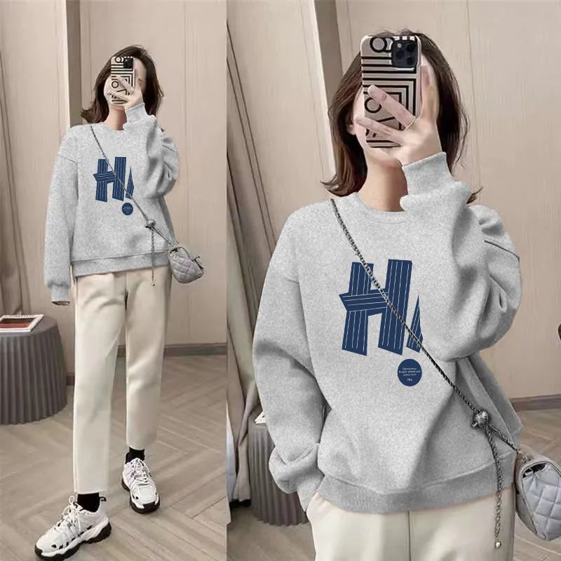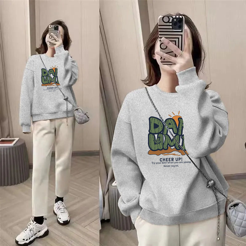 A6C2025 봄 새로운 순면 땀 여성의 높은 게이지 인쇄 느슨한 둥근 목 슬림 핏 탑스토어 가기