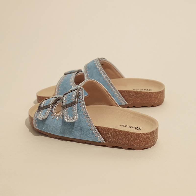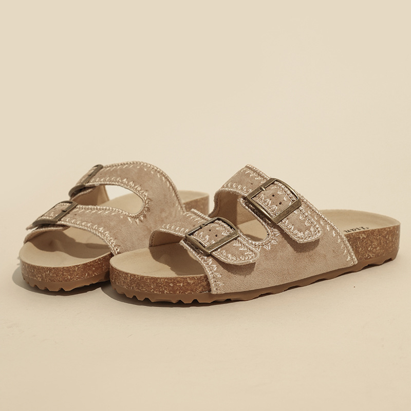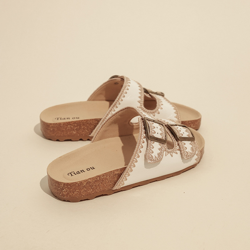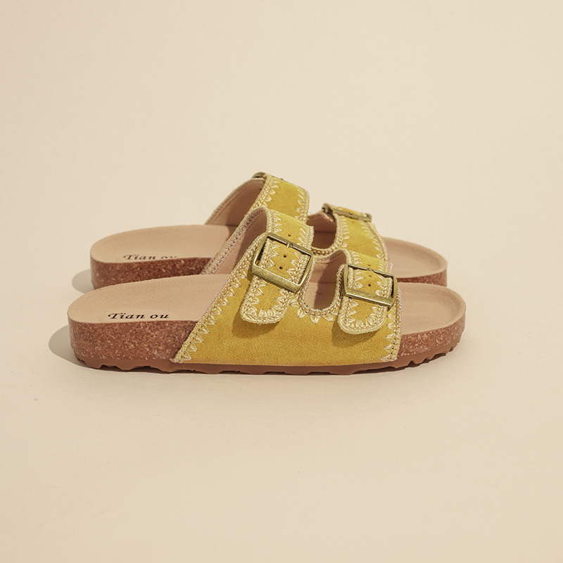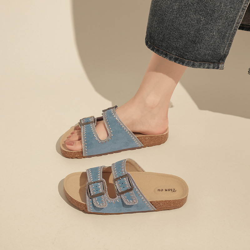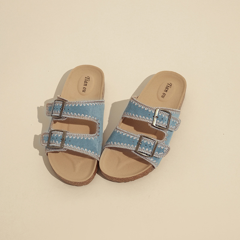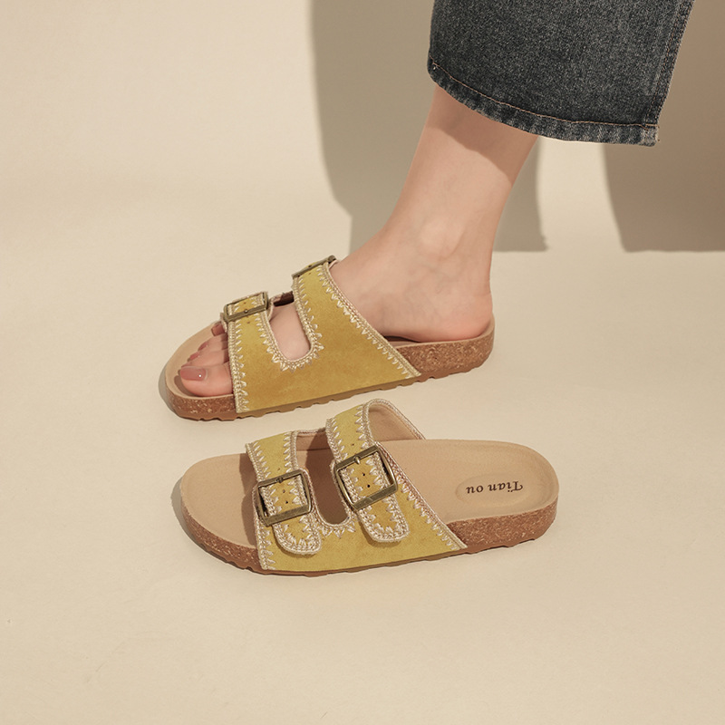 정품 가죽 두꺼운 바닥 슬리퍼 여성 여름 외부 착용 2025 새로운 Birkenstocks 스커트 캐주얼 비치 샌들