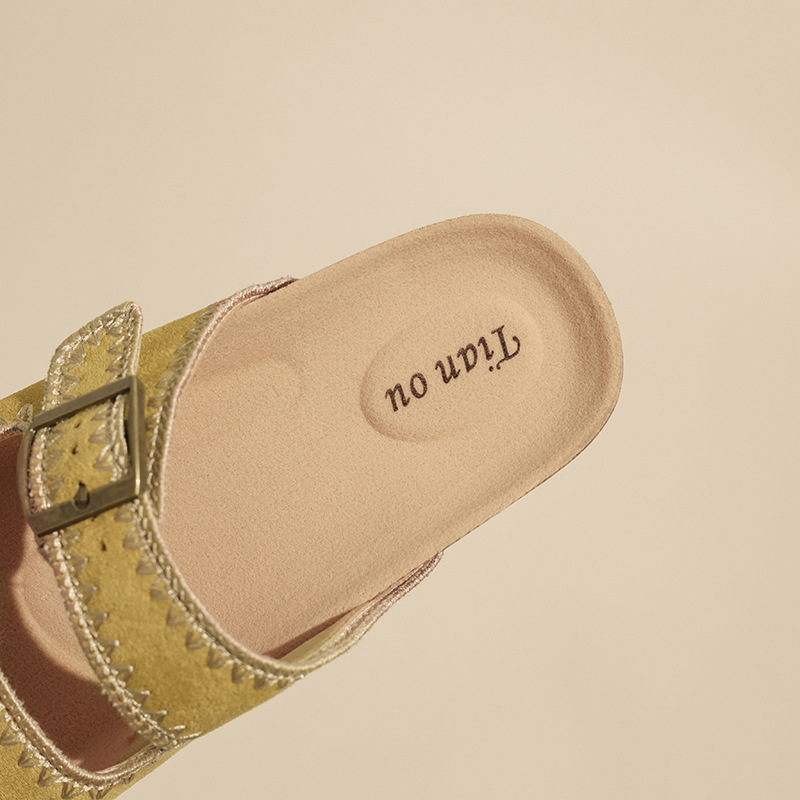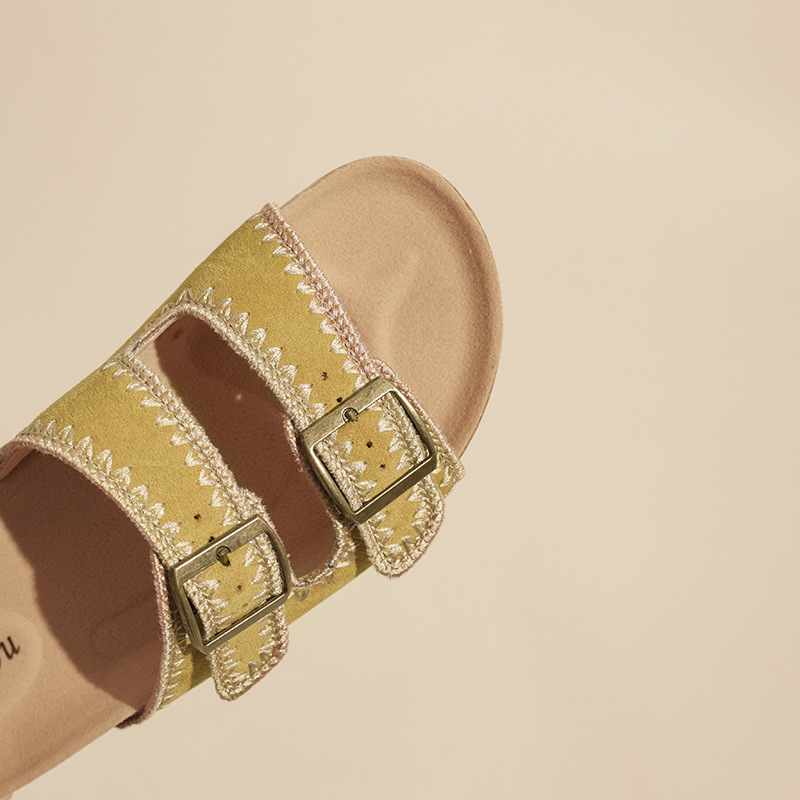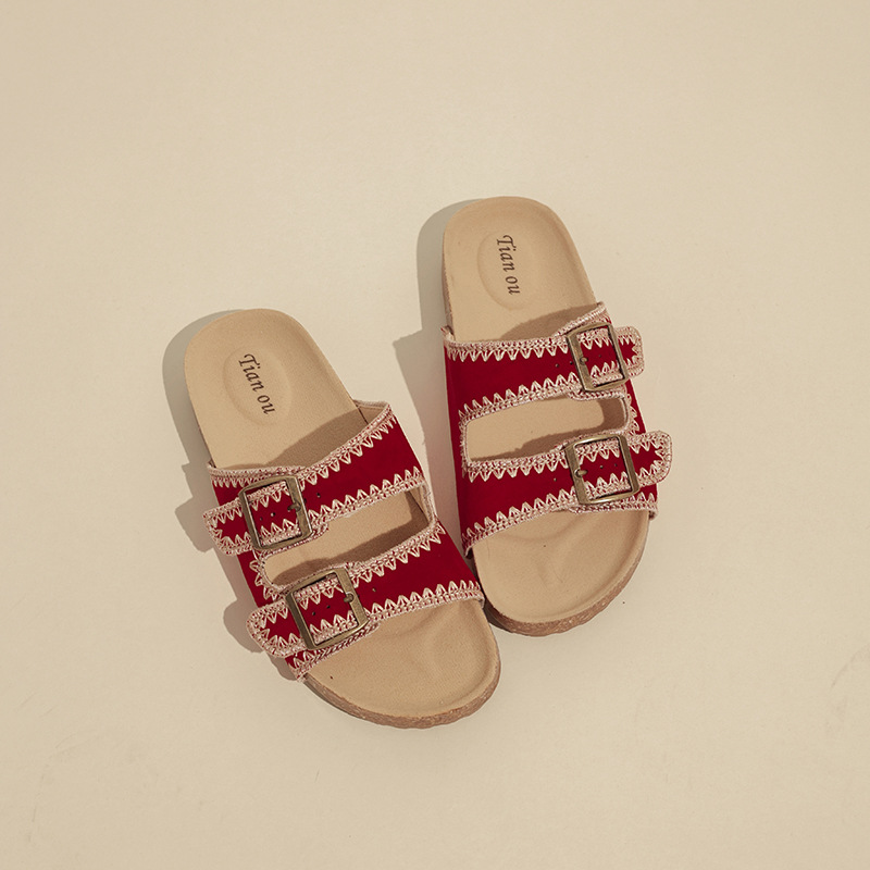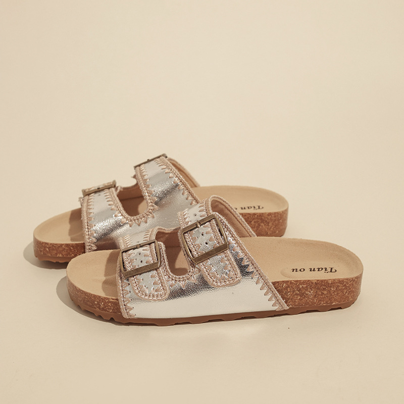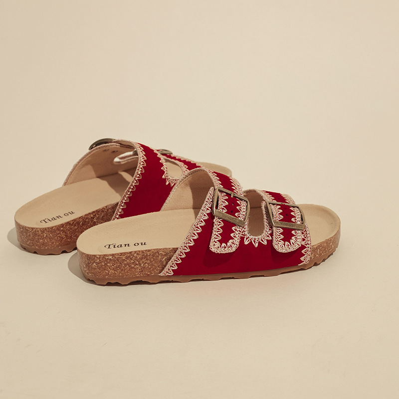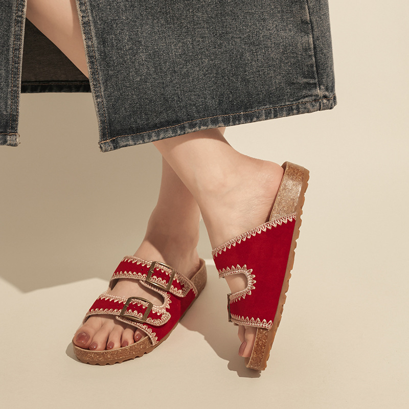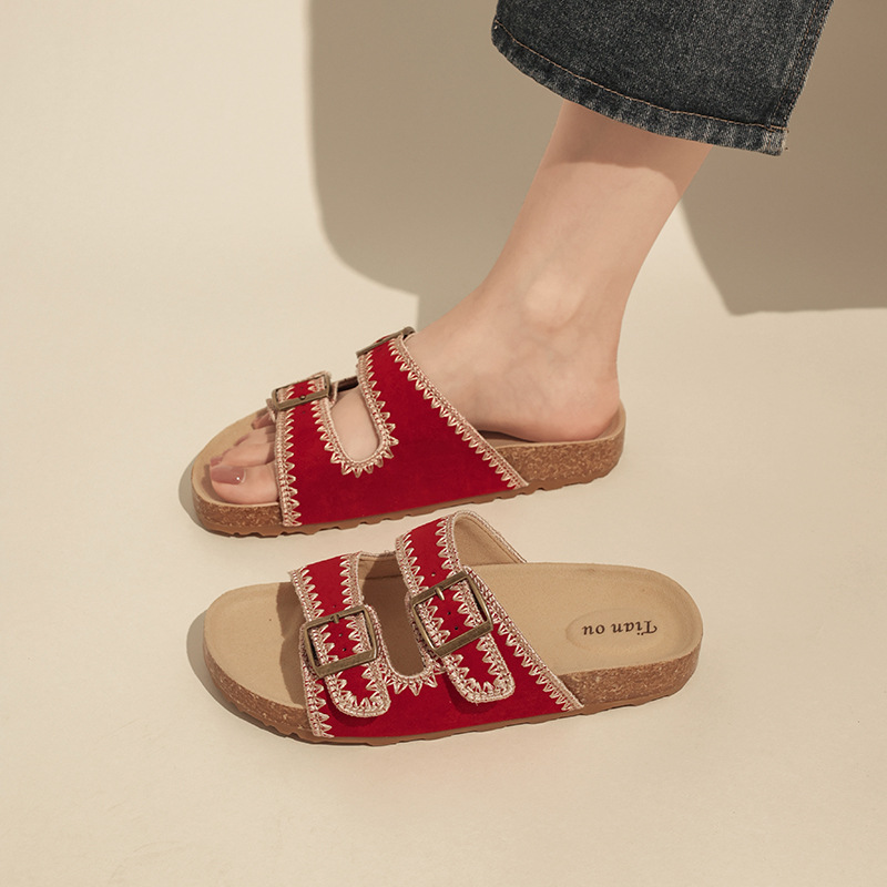 정품 가죽 두꺼운 바닥 슬리퍼 여성 여름 외부 착용 2025 새로운 Birkenstocks 스커트 캐주얼 비치 샌들