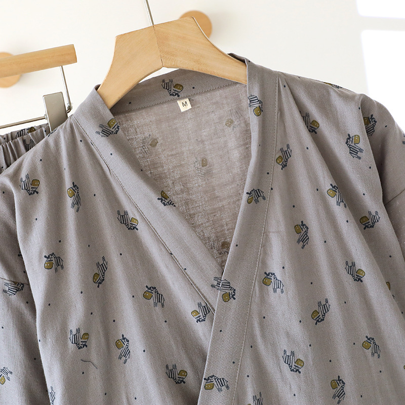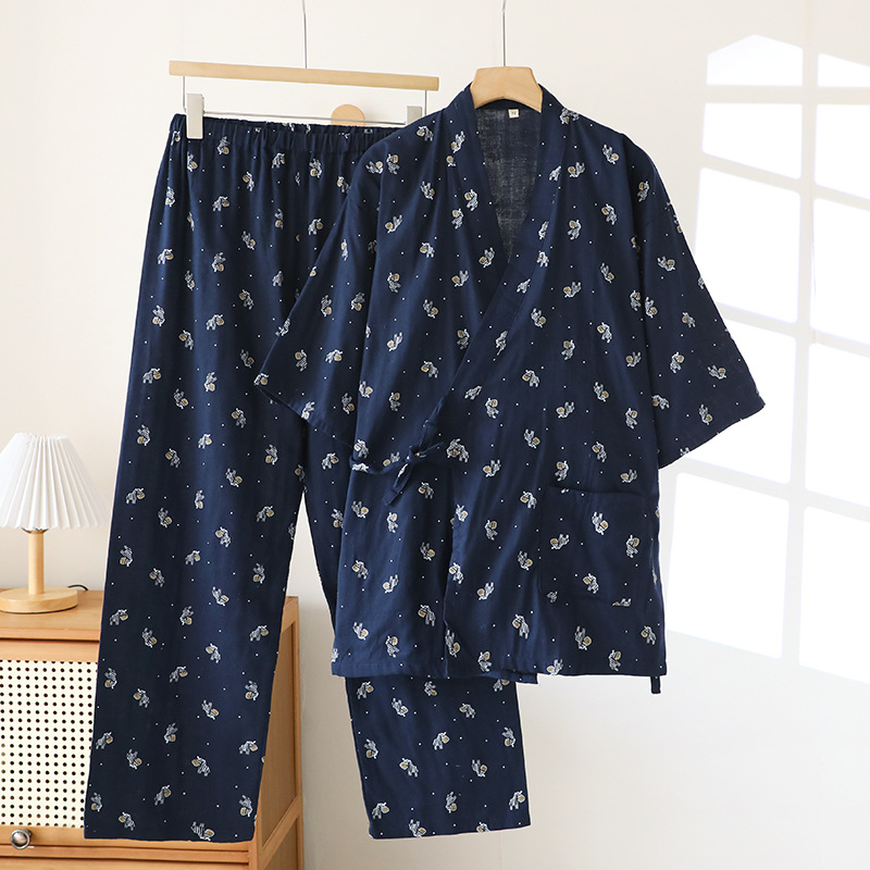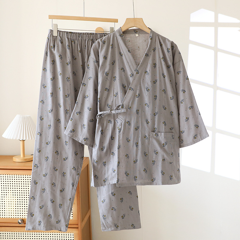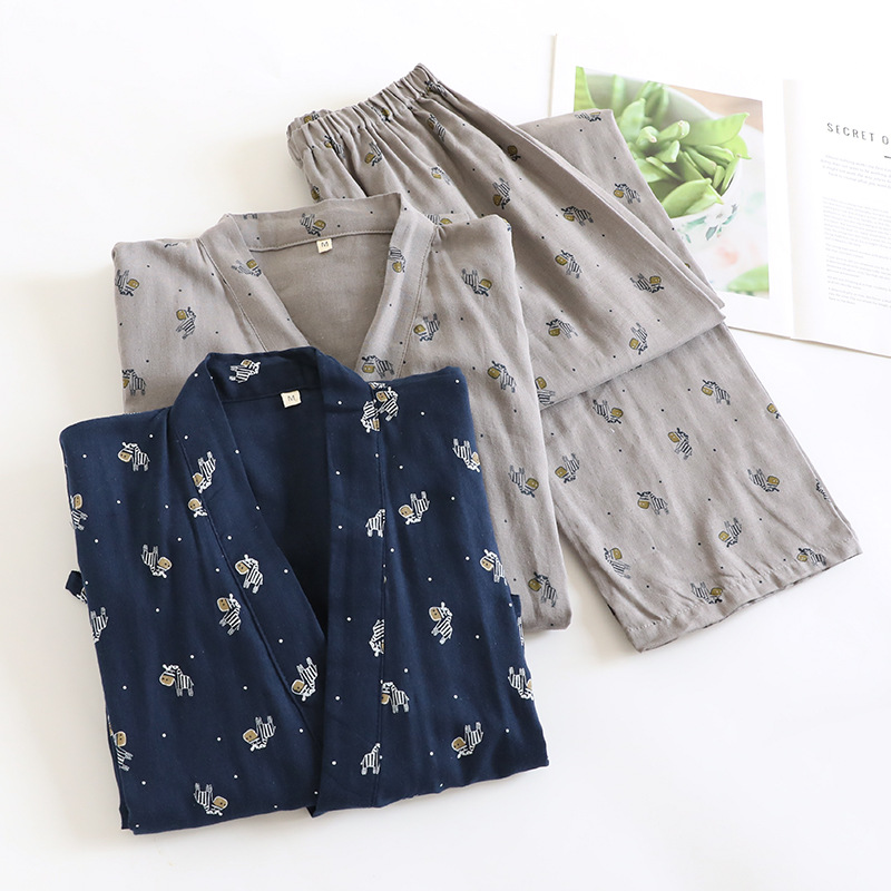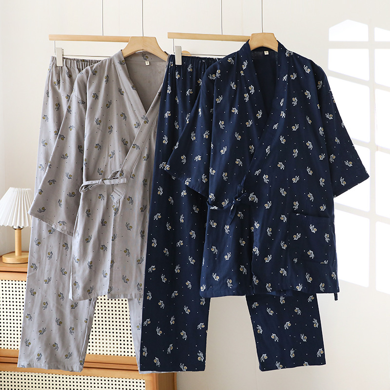 일본 기모노 잠옷 순수 코튼 거즈 남성과 여성 커플 얇은 봄, 여름 얇은 코튼 느슨한 홈웨어 세트