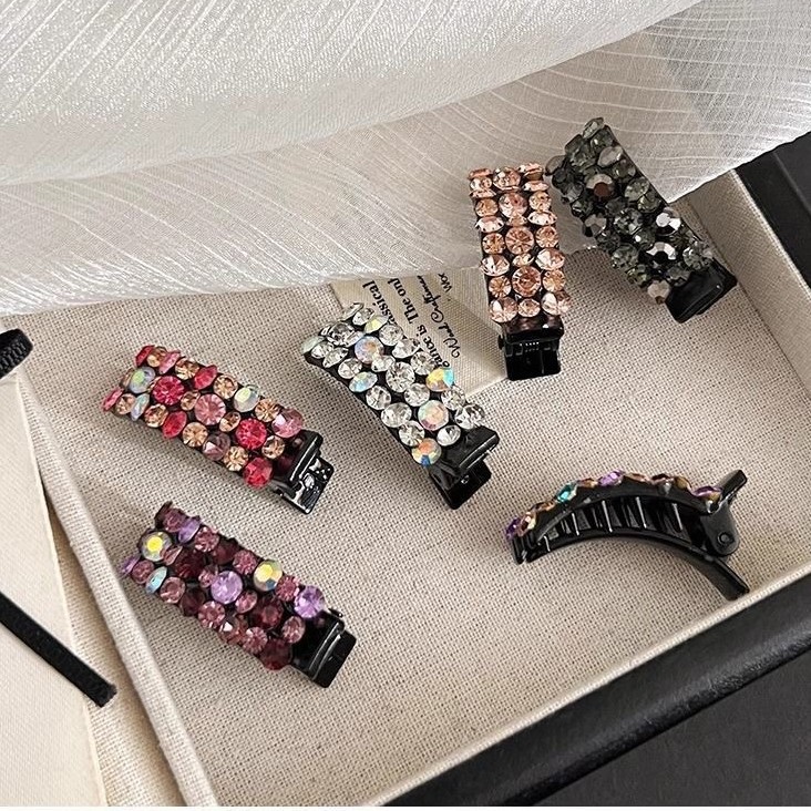 하이 엔드 다채로운 라인 석 머리핀 사이드 앞머리 클립 2025 라이트 럭셔리 크리스탈 머리핀 Traceless Duckbill Clip Headwear