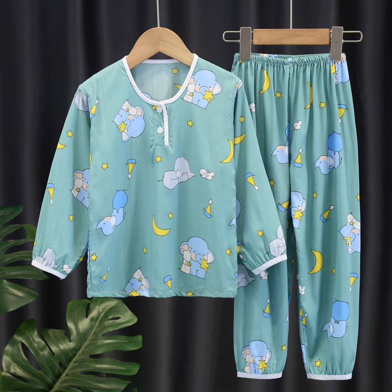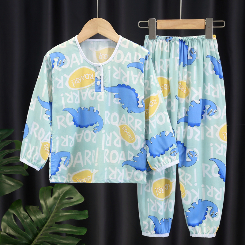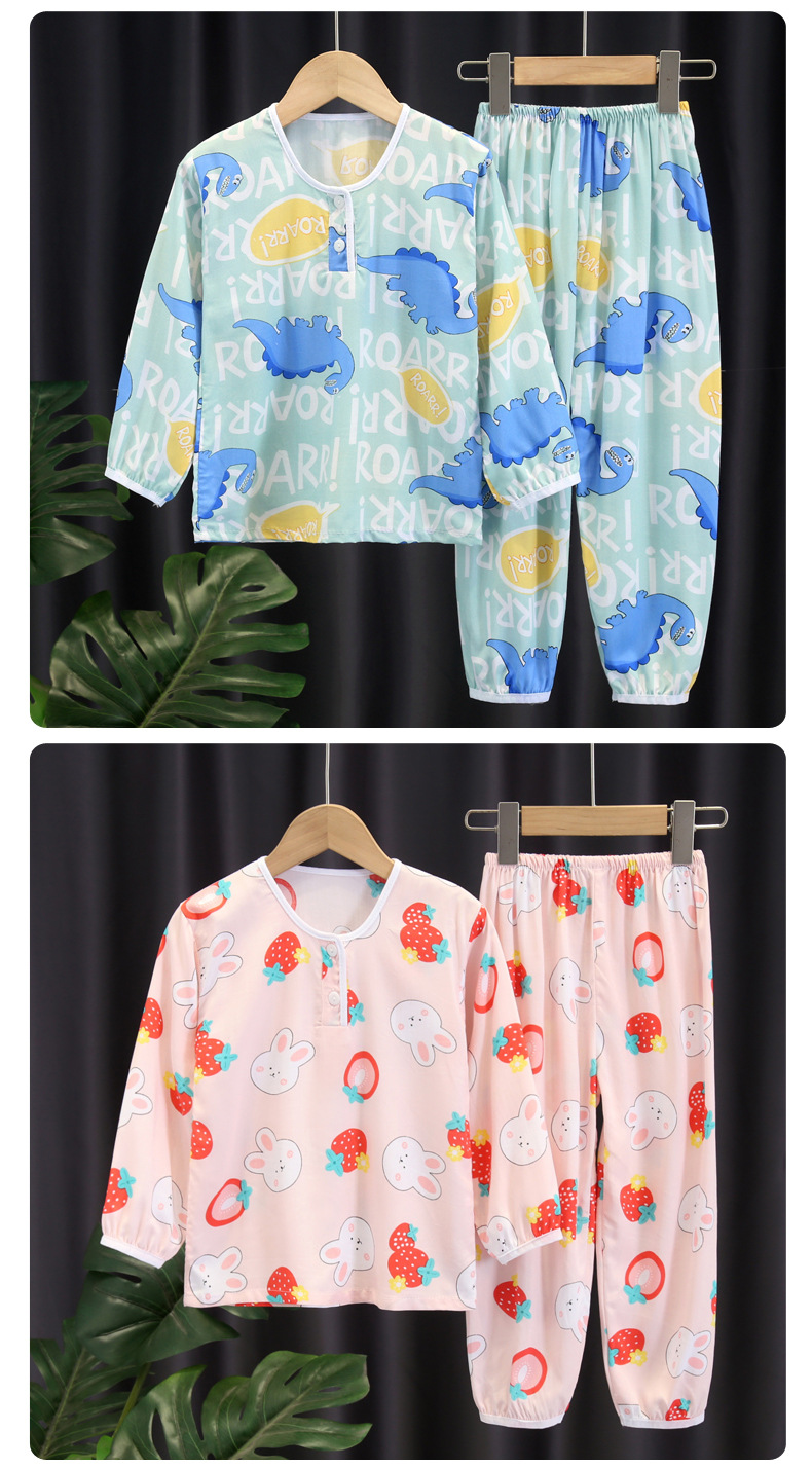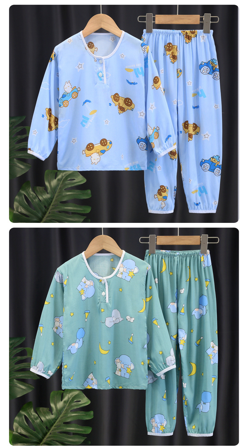 여름 어린이 면 실크 잠옷 커프스 세트 소년과 소녀 긴팔 바지 얇은 에어컨 옷 아기 가정 옷