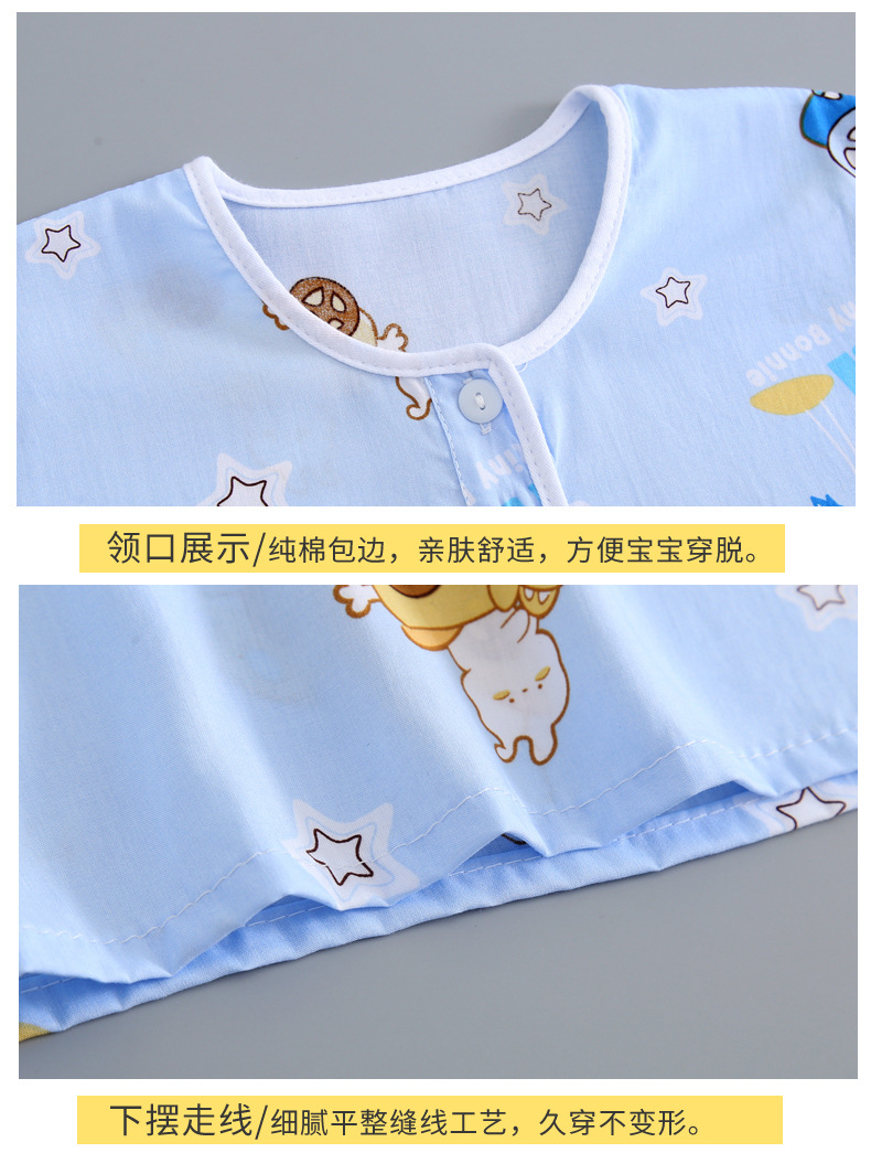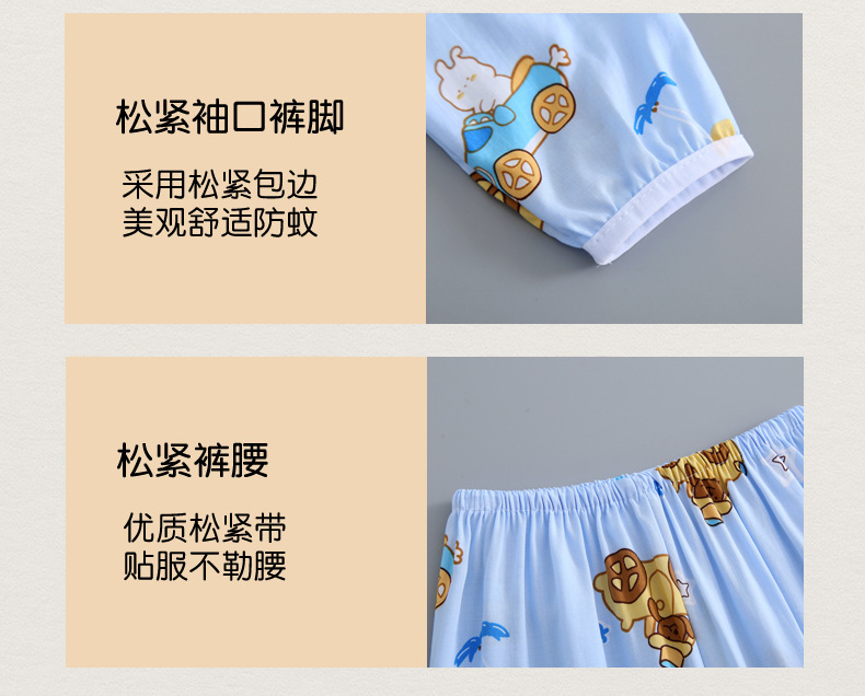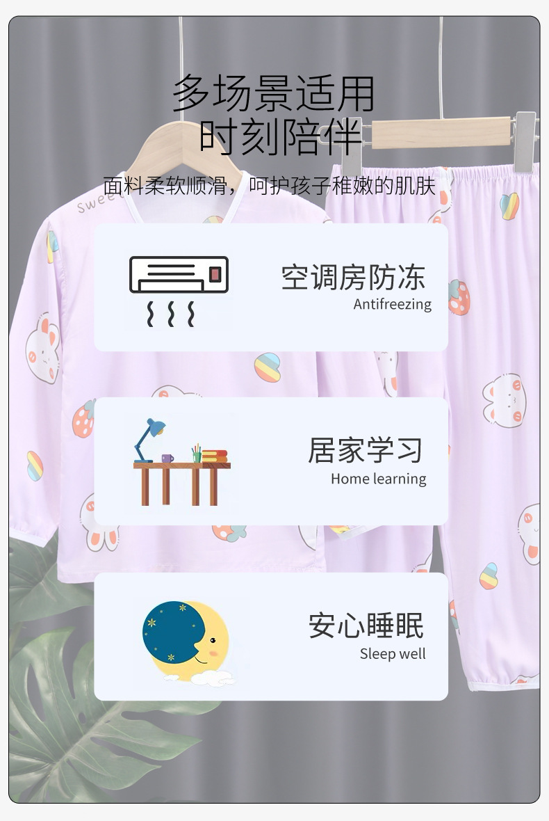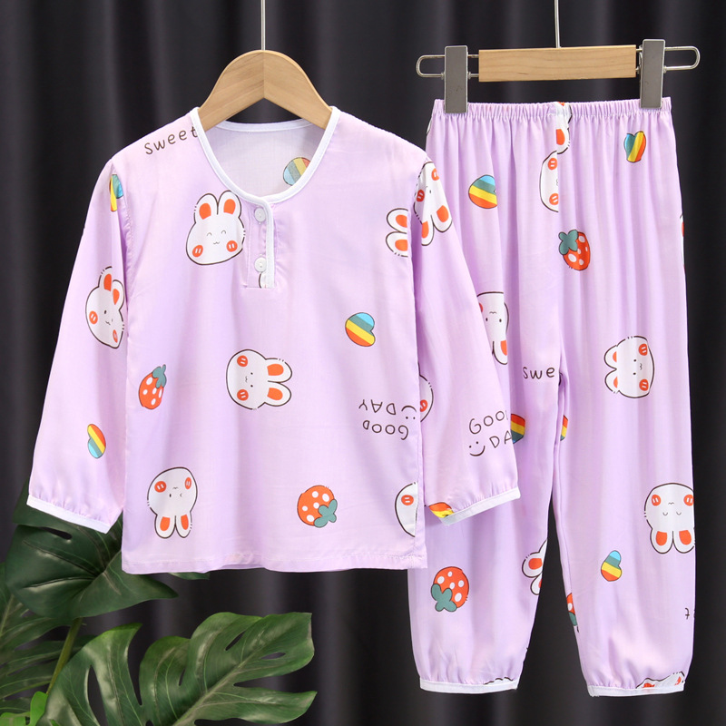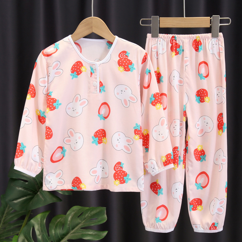 여름 어린이 면 실크 잠옷 커프스 세트 소년과 소녀 긴팔 바지 얇은 에어컨 옷 아기 가정 옷
