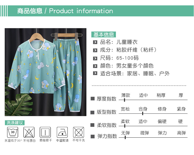 여름 어린이 면 실크 잠옷 커프스 세트 소년과 소녀 긴팔 바지 얇은 에어컨 옷 아기 가정 옷스토어 가기