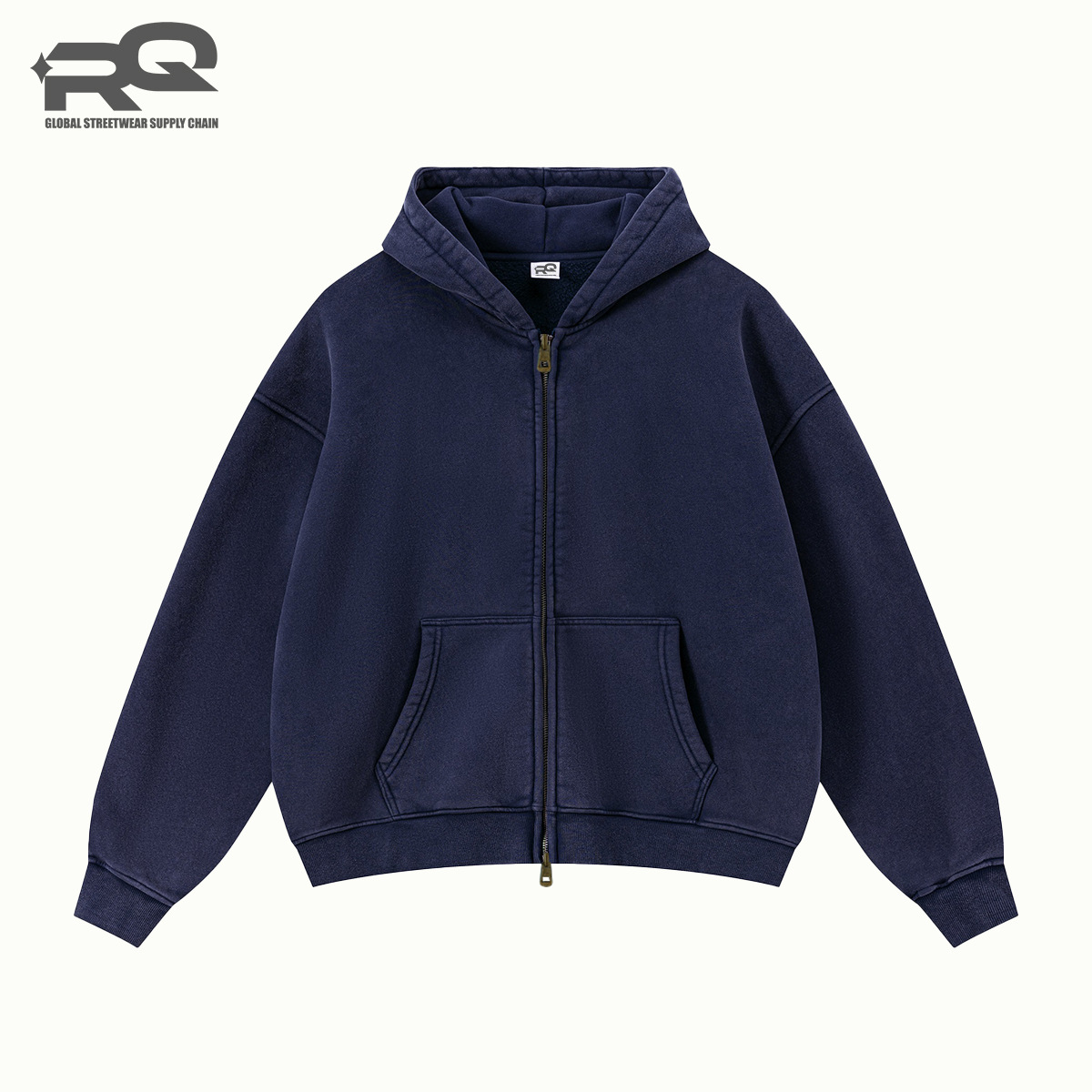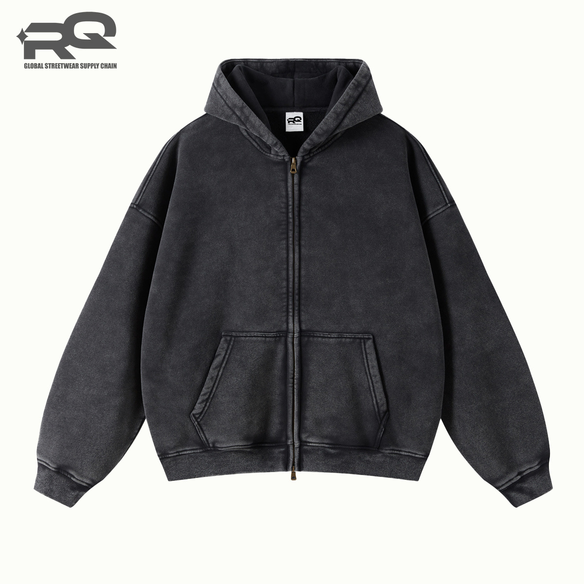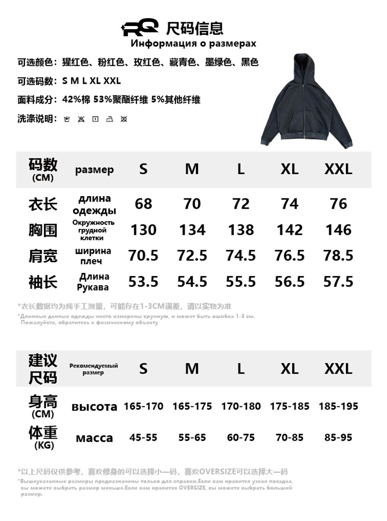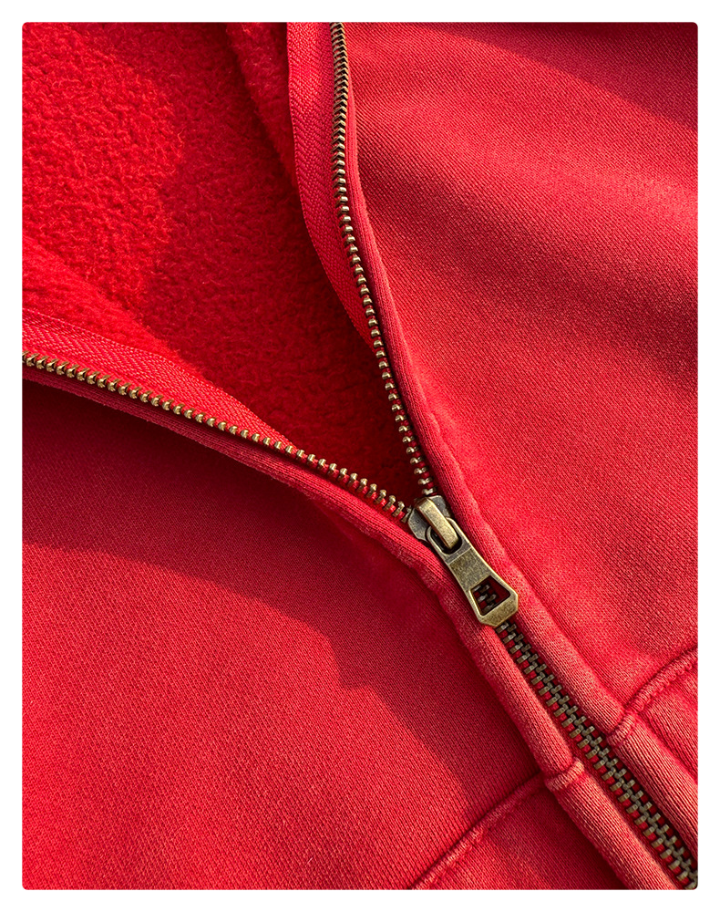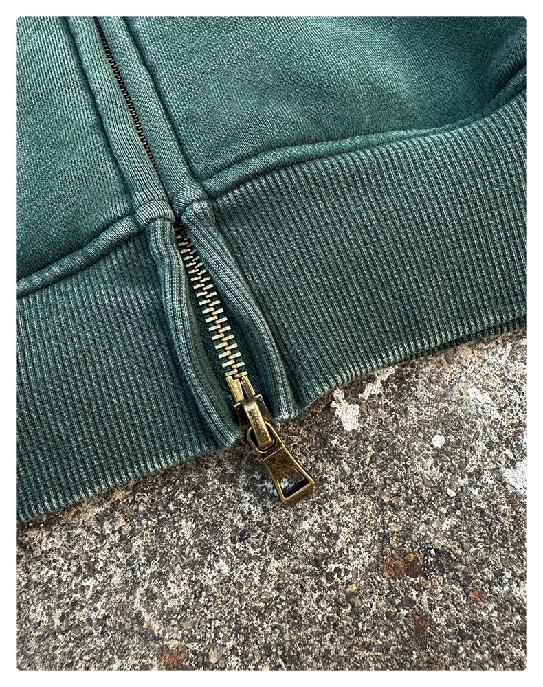 RQ 남성용 더블 지퍼 워싱 코튼 스웨트셔츠, 워싱 및 기모 공정, 하이 스트리트 아메리칸 스타일 레트로 스웨트셔츠 재킷스토어 가기