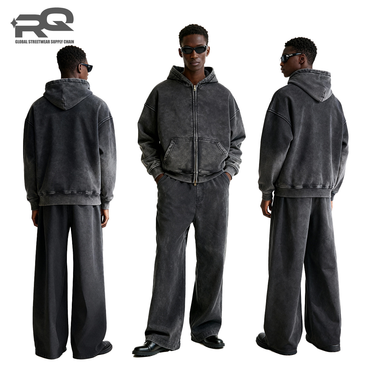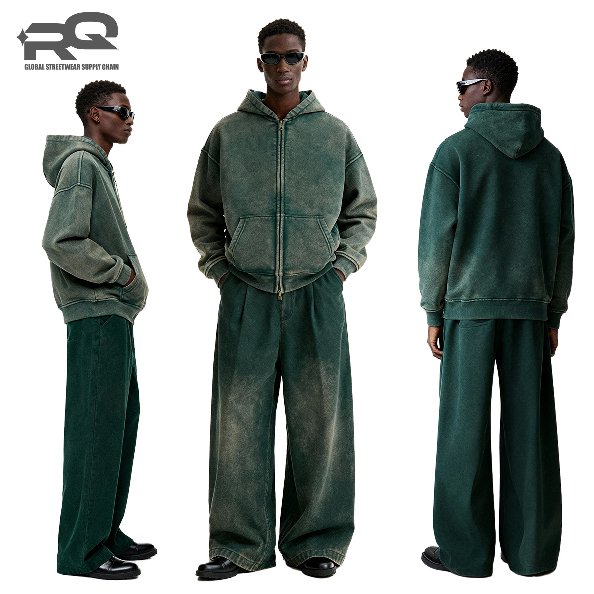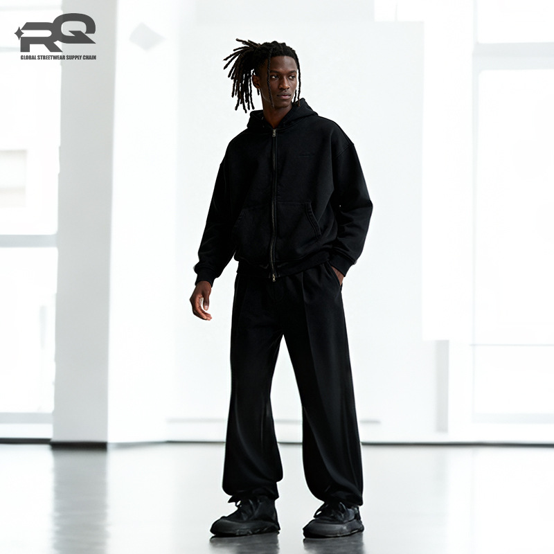 RQ 남성용 더블 지퍼 워싱 코튼 스웨트셔츠, 워싱 및 기모 공정, 하이 스트리트 아메리칸 스타일 레트로 스웨트셔츠 재킷