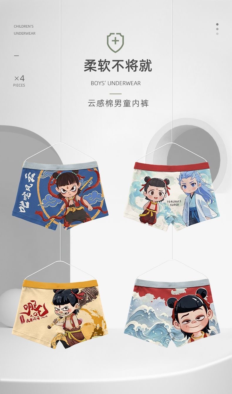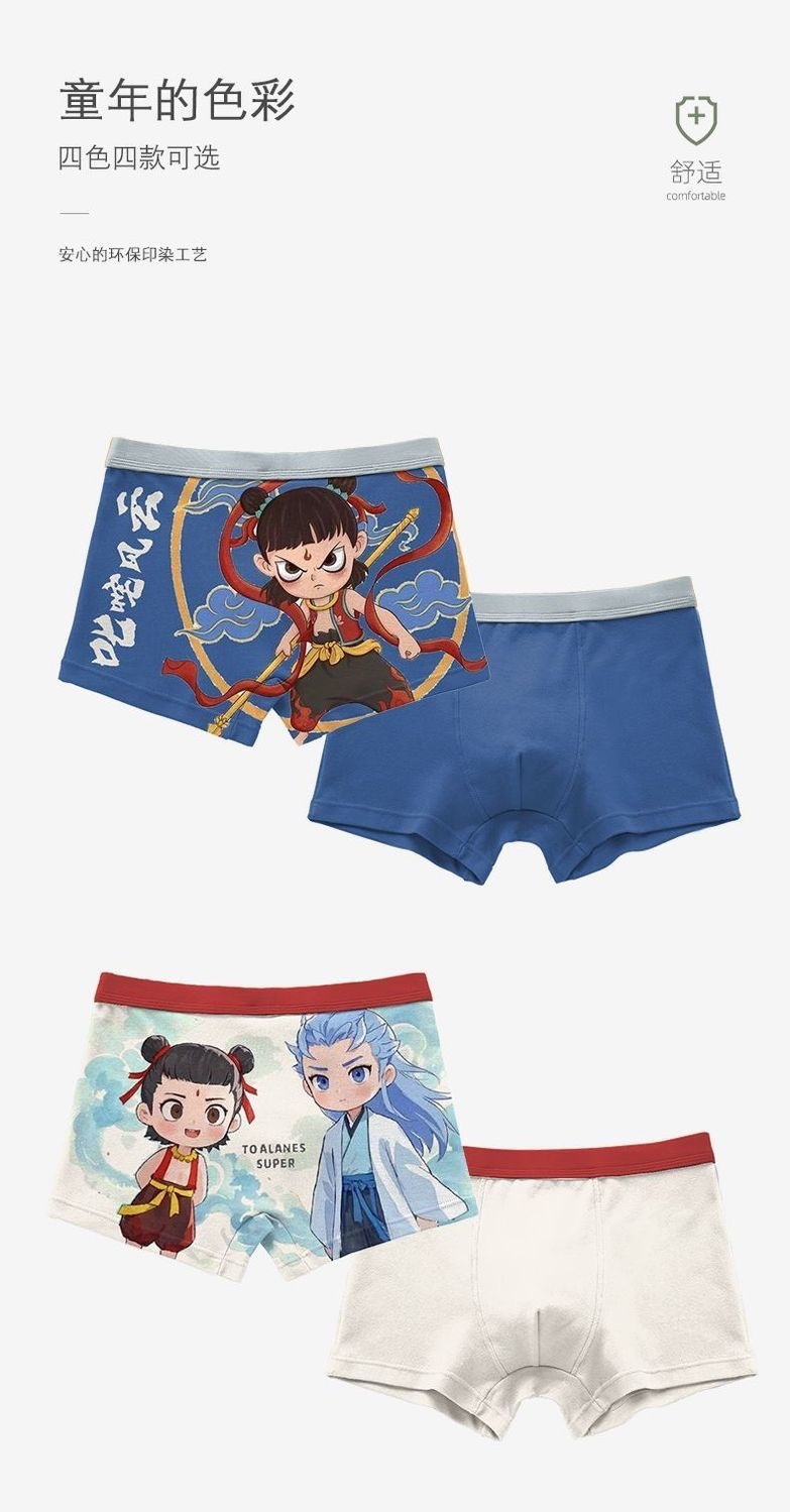 어린 소년의 사각형 마술 아동 Na Zha 2025 Zhongnaohai 사각형 어린이 속옷 소년의 새로운 큰 어린이 반바지 Ao Bing스토어 가기