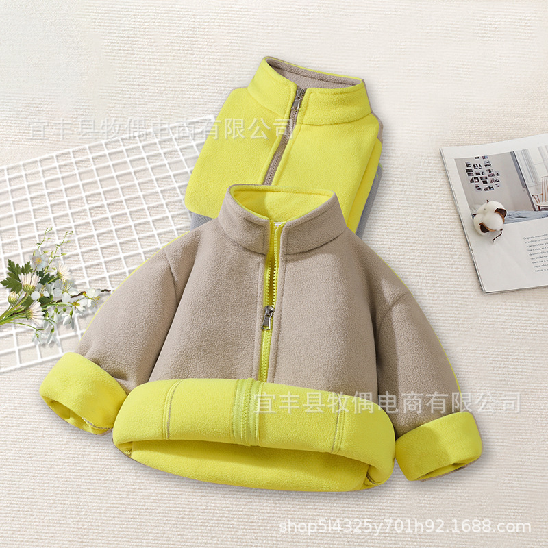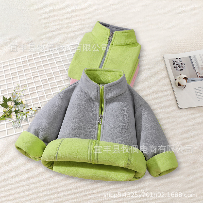 아동용 폴라 플리스 재킷 2025 봄, 가을 새로운 따뜻한 탑 소년 소녀 스포츠 지퍼 셔츠 교복 트렌디 한 내부 착용스토어 가기