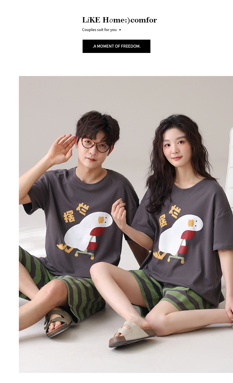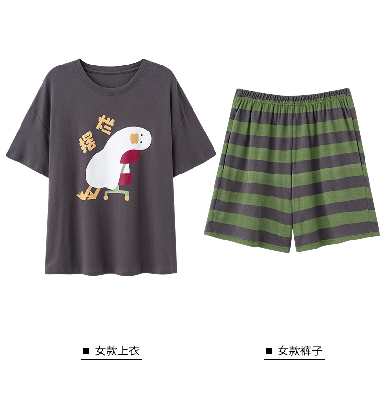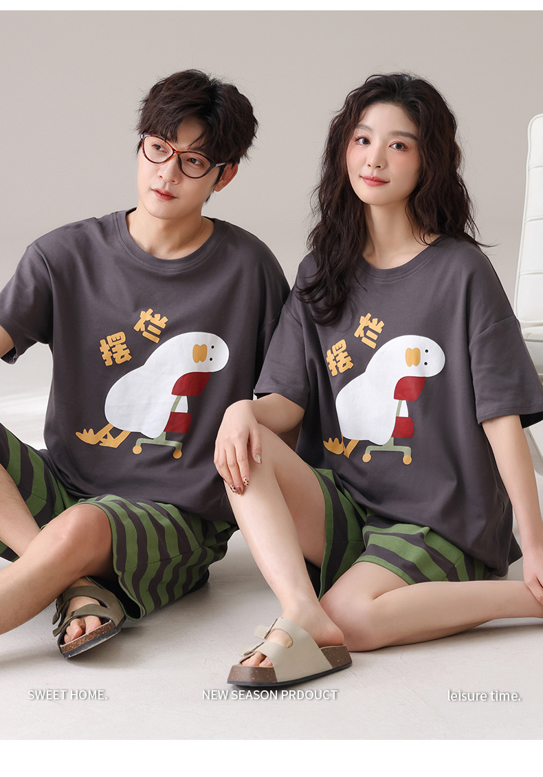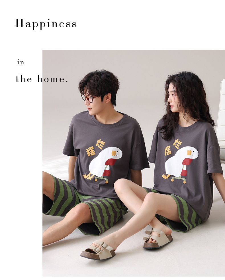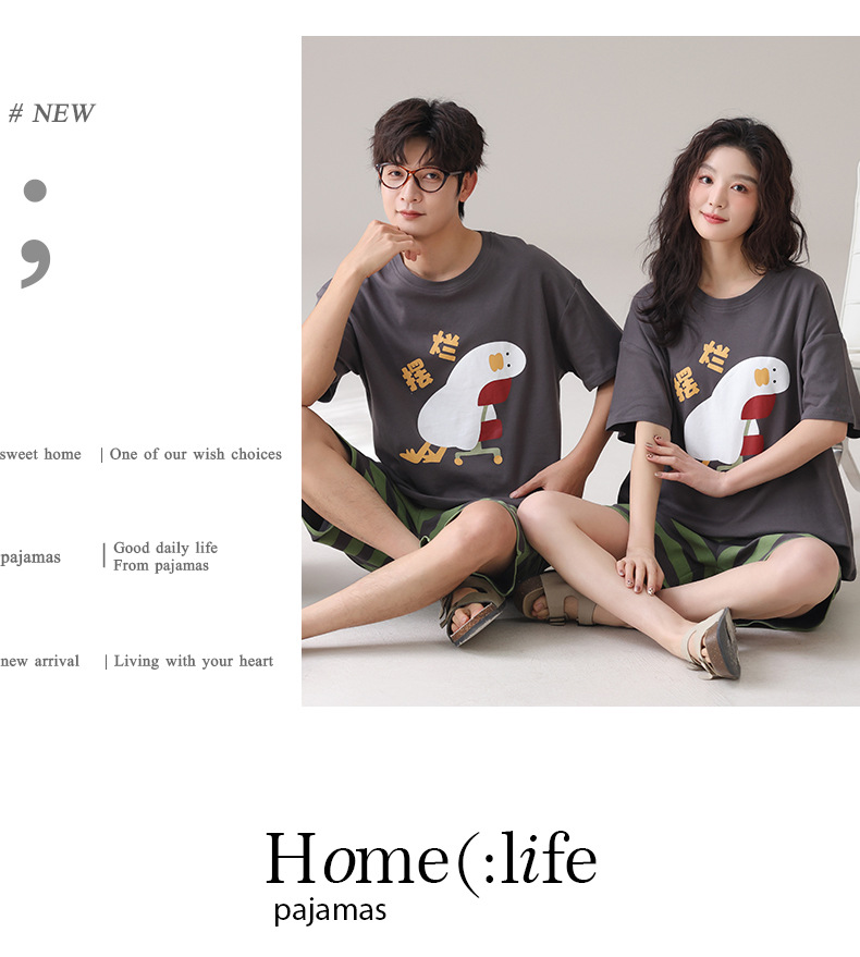 커플 잠옷 여름 100% 면 여성 한국 스타일 정장 반팔 반바지 캐주얼 만화 귀여운 남성 가정복스토어 가기