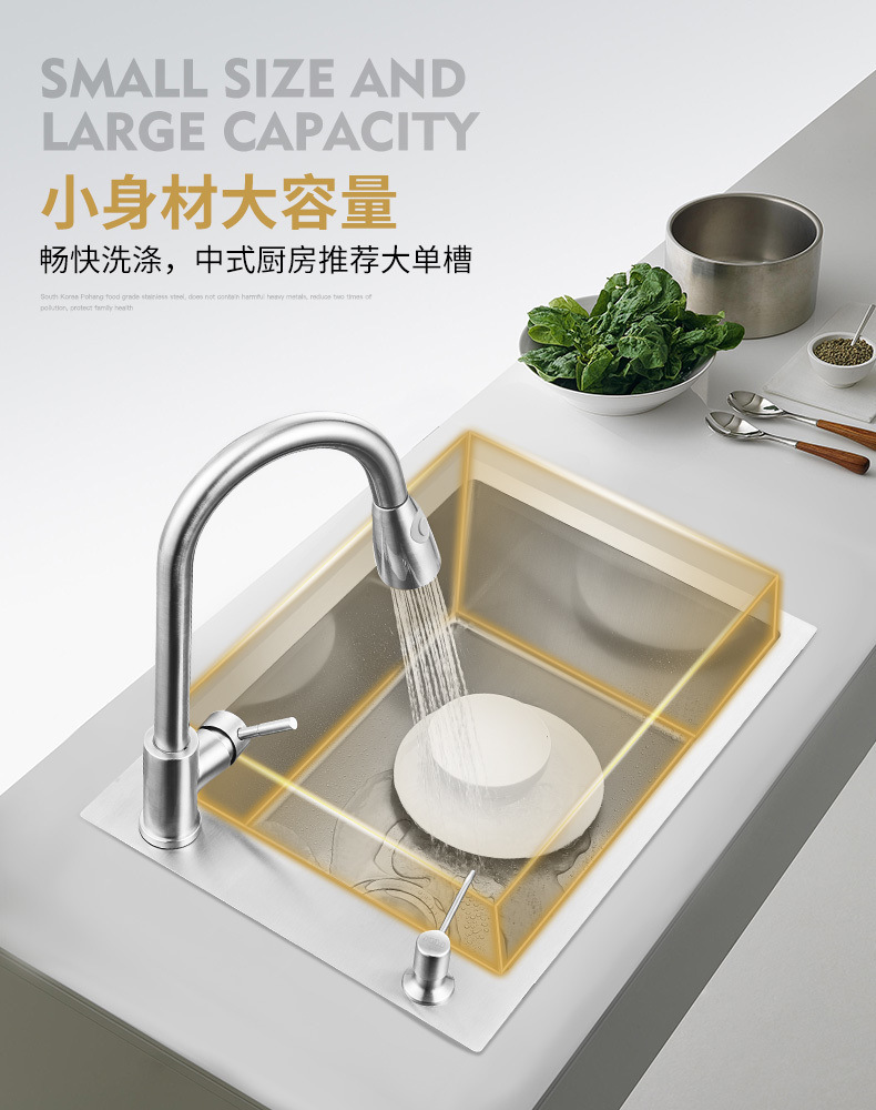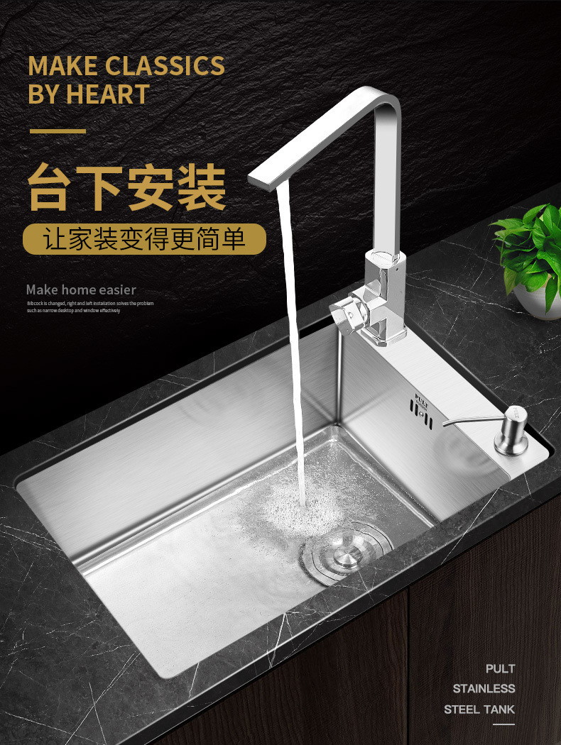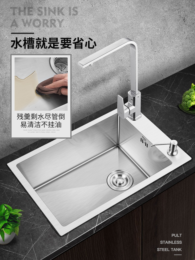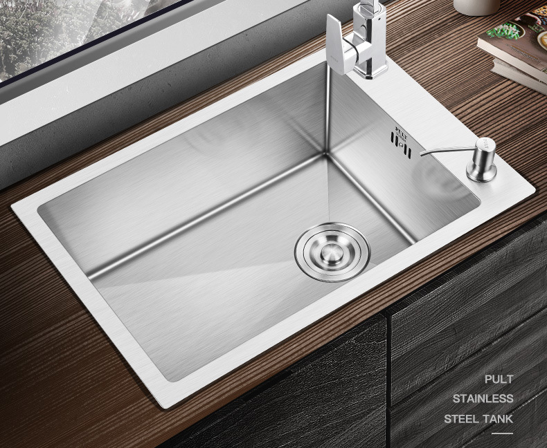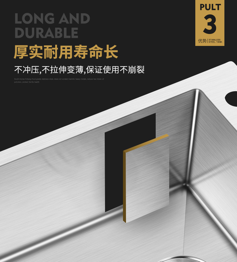 주방 측면 장착형 304 스테인레스 스틸 싱글 싱크대 식기 세척 수평 좁고 긴 대형 싱크대 두꺼운 공급망스토어 가기