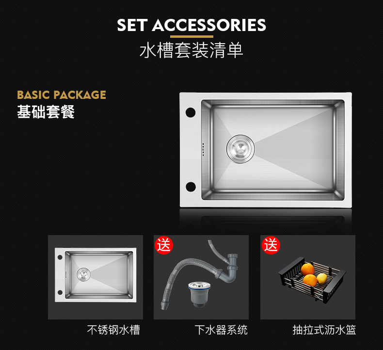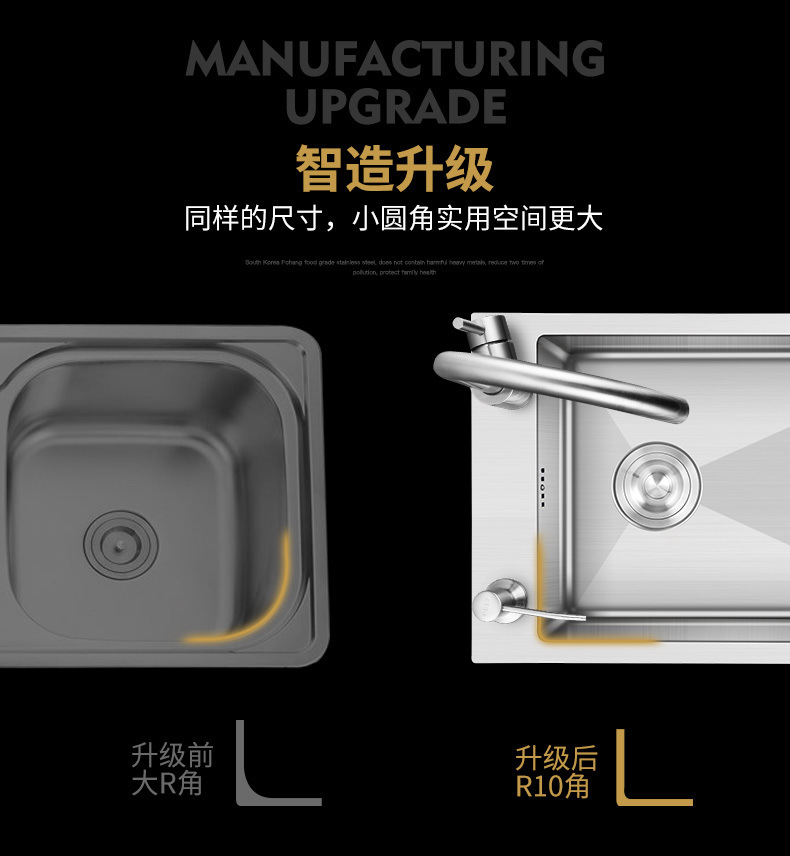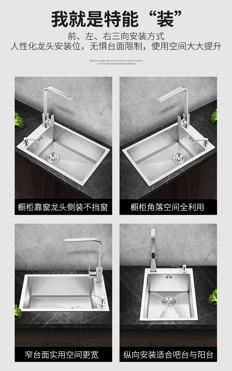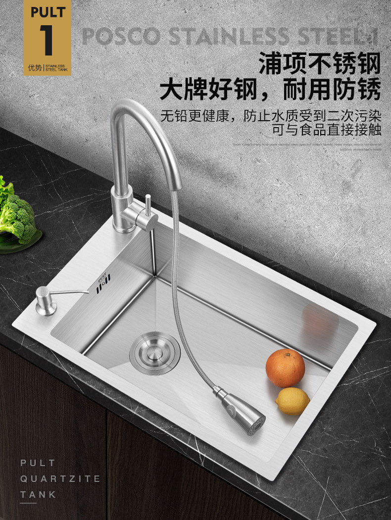 주방 측면 장착형 304 스테인레스 스틸 싱글 싱크대 식기 세척 수평 좁고 긴 대형 싱크대 두꺼운 공급망스토어 가기