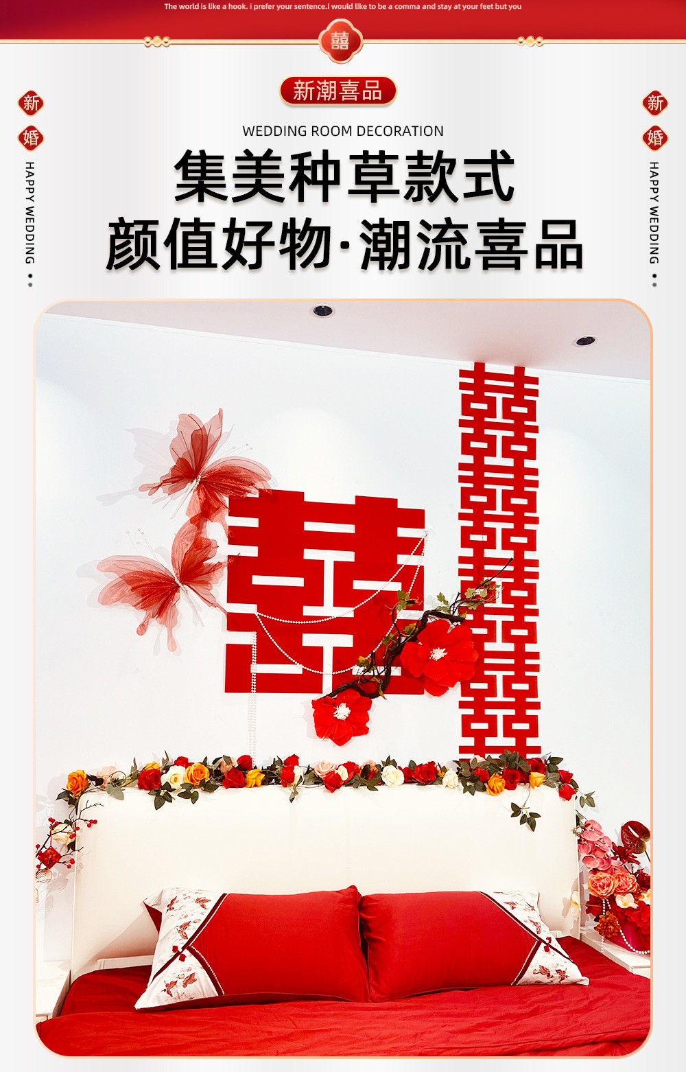 웨딩 룸 레이아웃 엘리베이터 별도의 하이 엔드 해피 캐릭터 스티커 새 집 원피스 업 더블 오픈 도어 웨딩 스티커