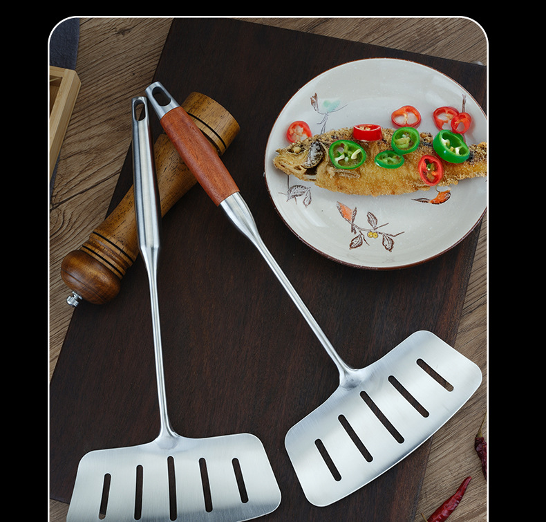 • 스테인리스 두꺼운 생선튀김 주걱 [자단 손잡이]
