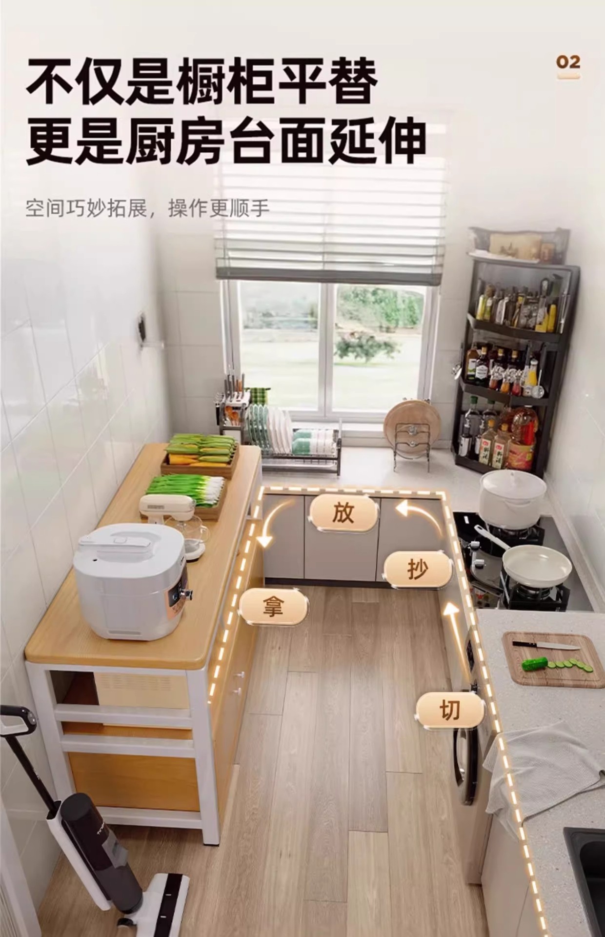 • (야채, 고기 다지기 가능) [두꺼운 30mm 조리대] 따뜻한 흰색 3겹, 길이 120, 폭 35, 높이 80