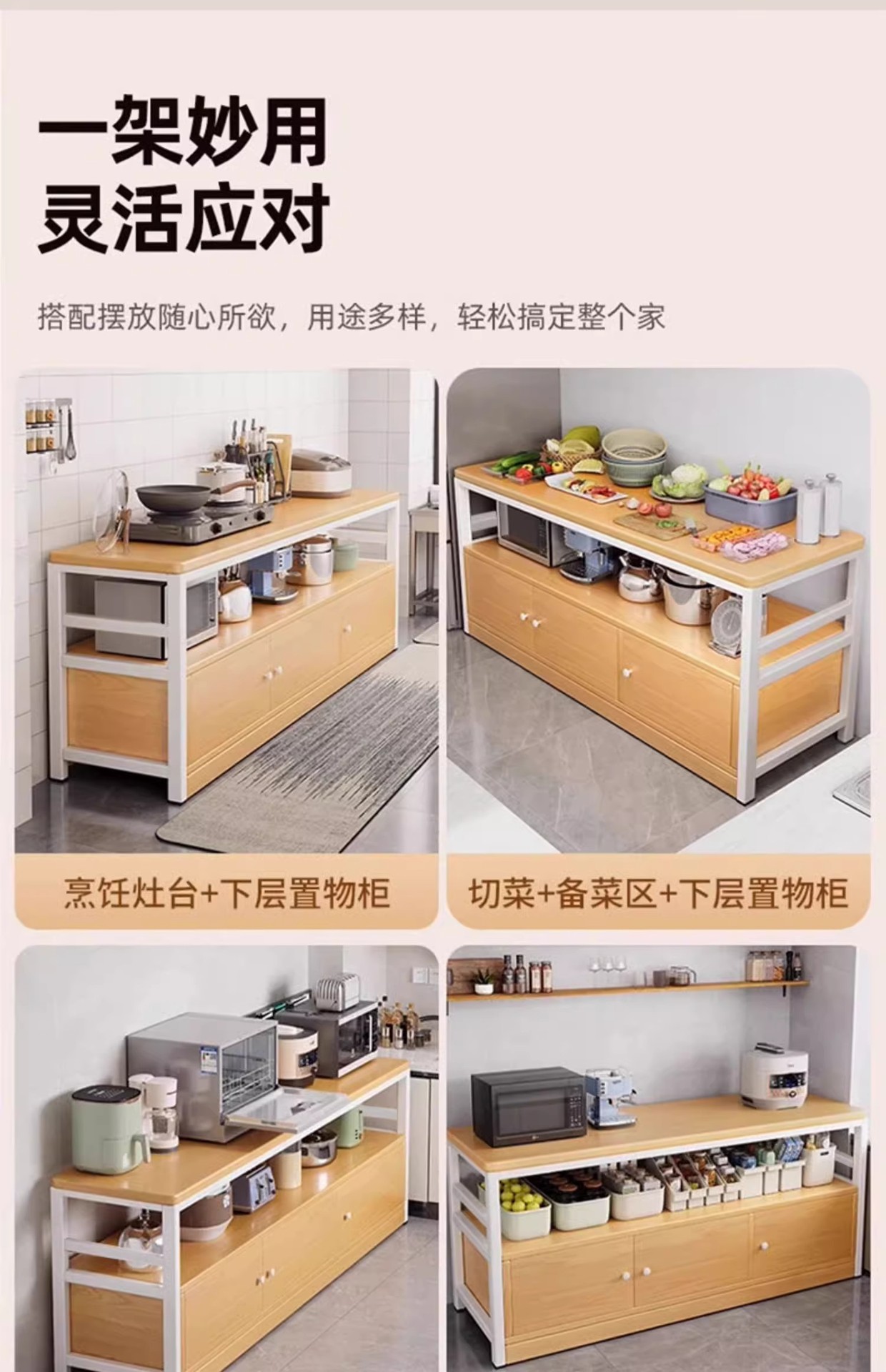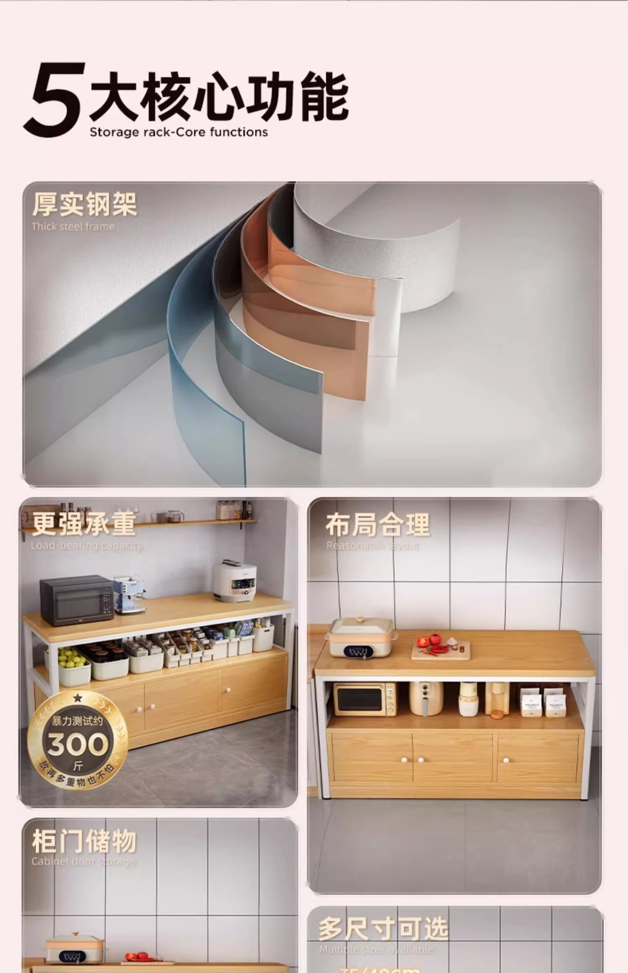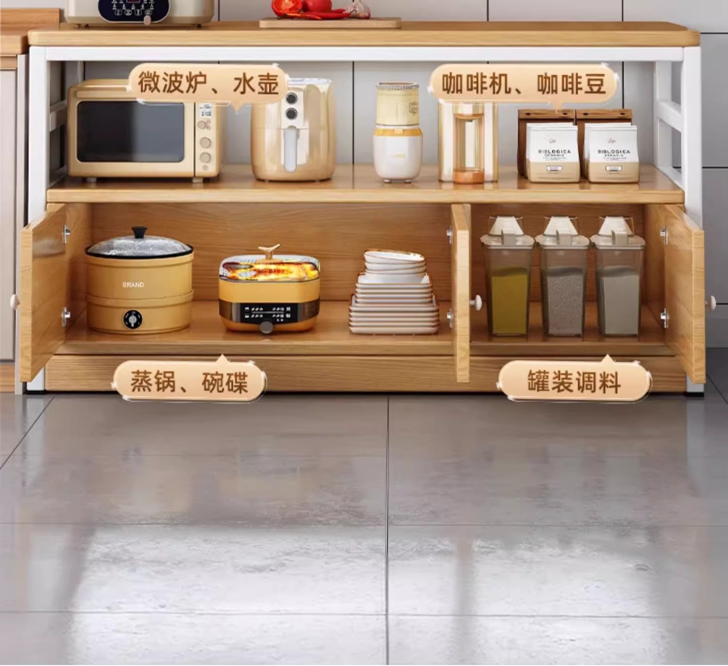 주방 스토리지 랙 바닥 서 다기능 캐비닛 사이드 보드 가정용 다층 전자 레인지 스토리지 랙 스토리지 캐비닛