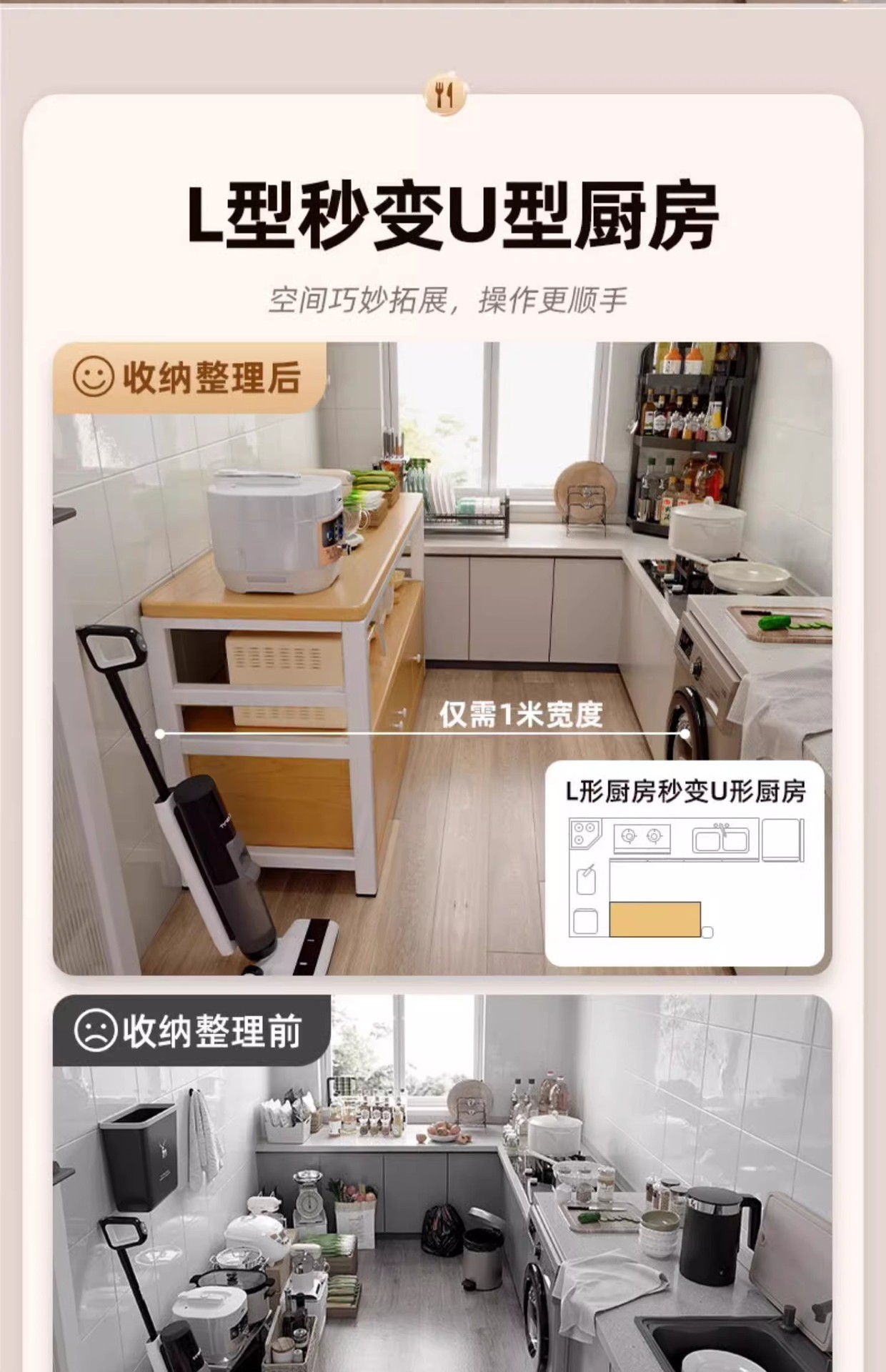 • (야채, 고기 다지기 가능) [두꺼운 30mm 조리대] 따뜻한 흰색 3겹, 길이 100, 폭 35, 높이 80