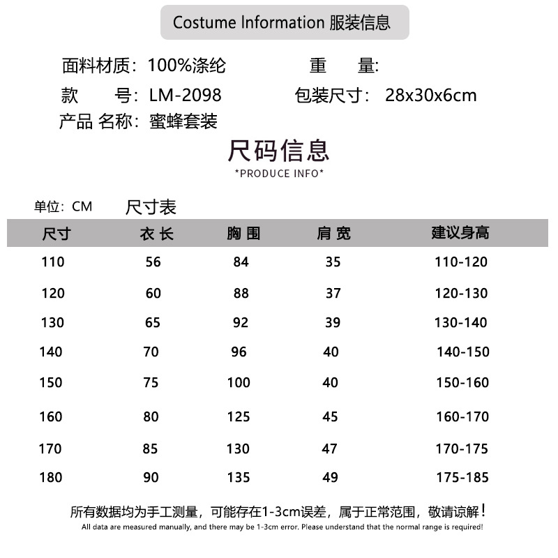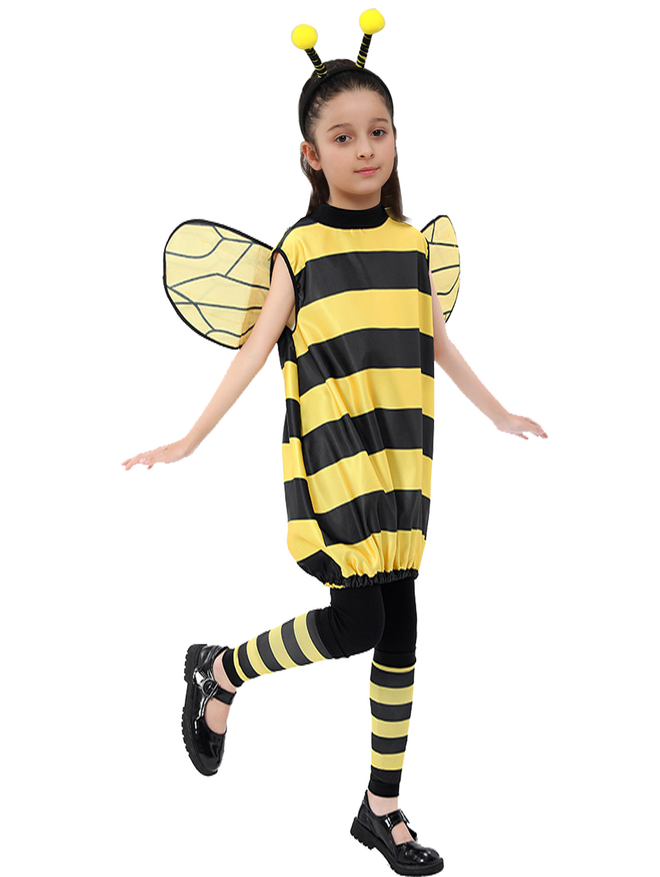 날개 달린 꿀벌과 일곱개의 별 무당벌레가 재미있는 코스프레 3피스 어린이 휴일 파티 의상이 출시되었습니다.