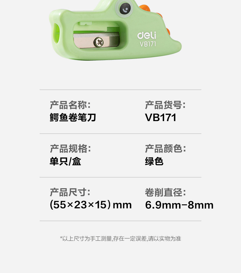 델리 VB171 악어연필깎이(녹색)(24개/통) 초등학생용 소형 휴대용