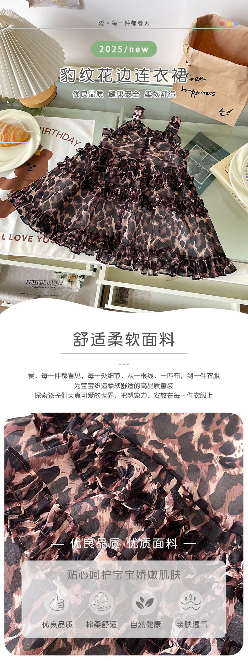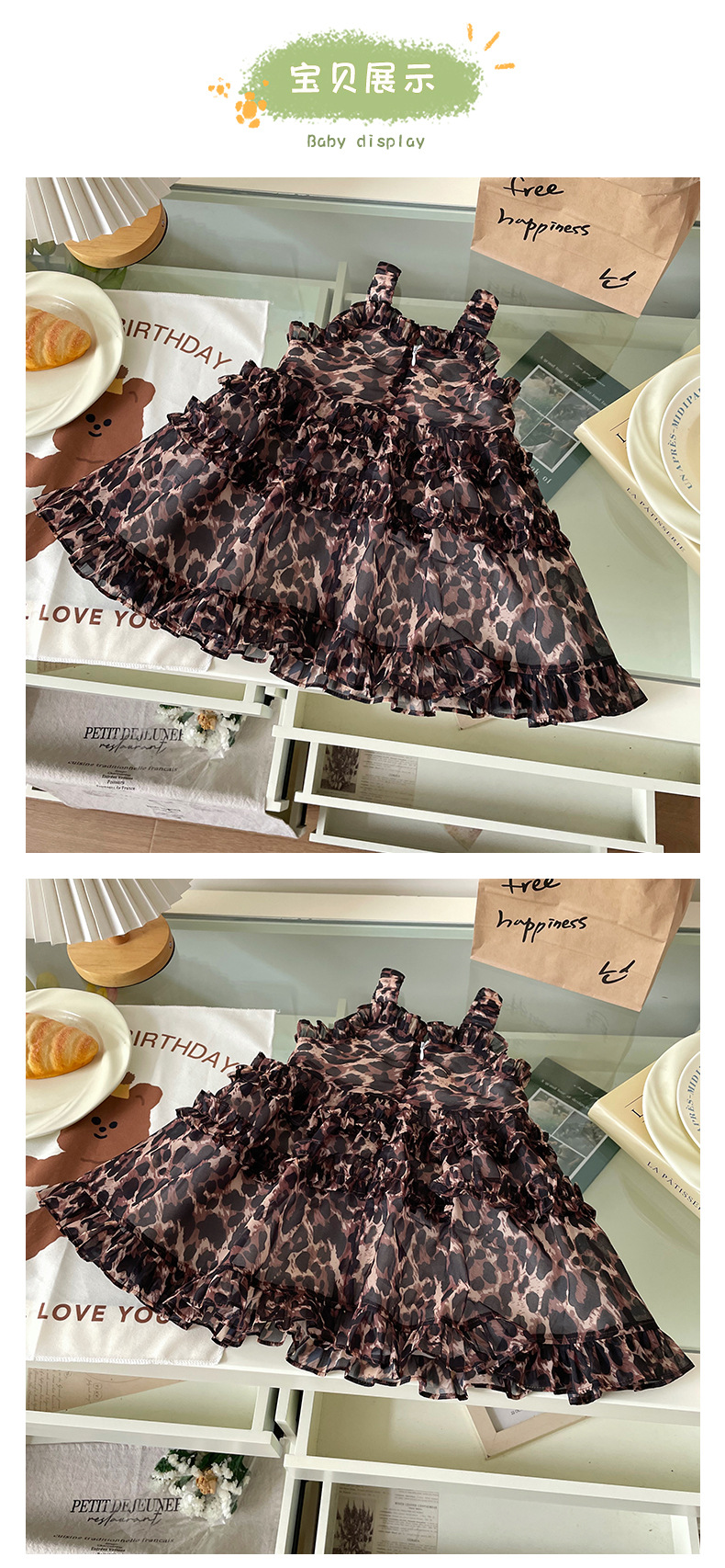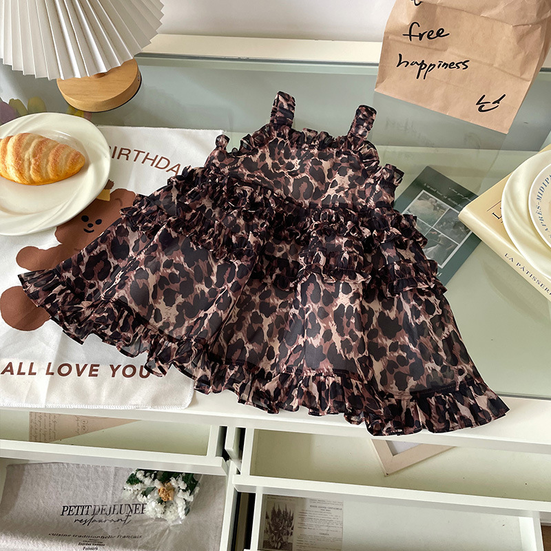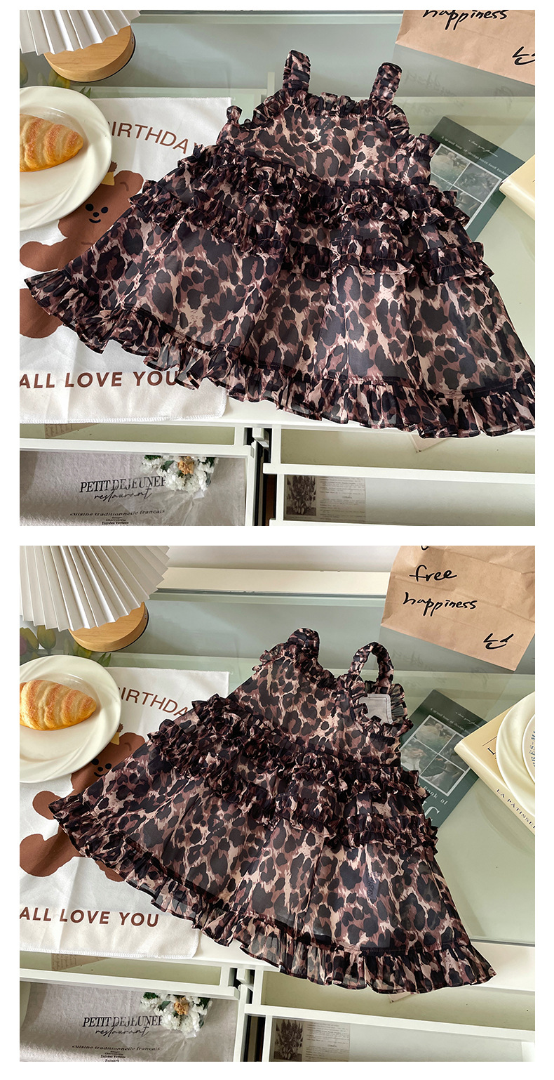 [재고] XQ259209 여자 어린이 원피스 2025 여름 새 한국 레오파드 무늬 슬링 휴가 원피스스토어 가기