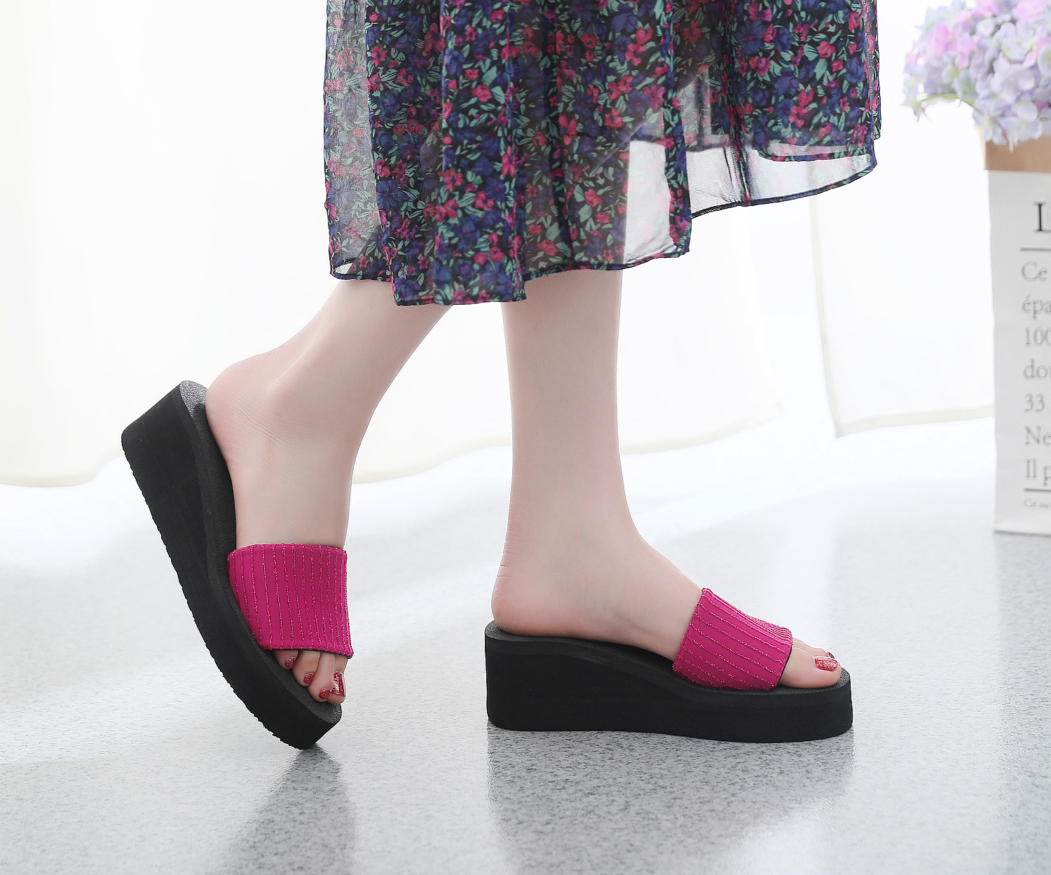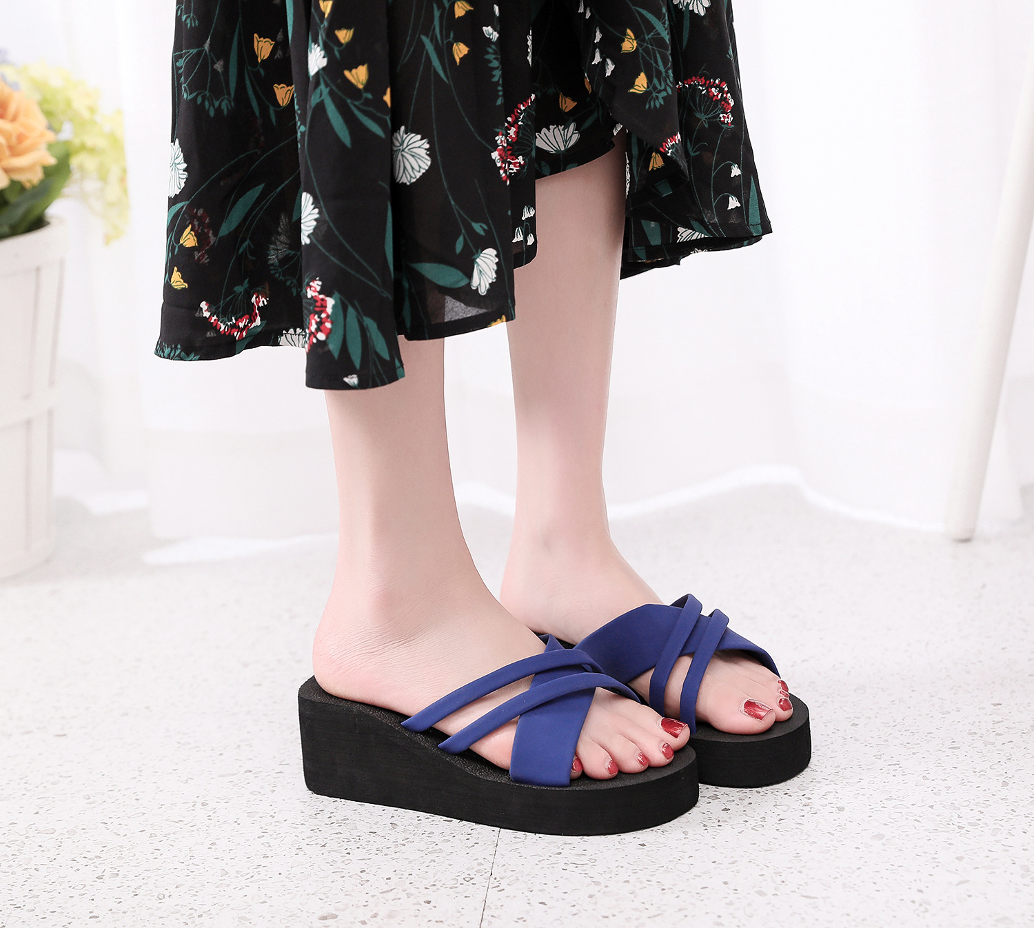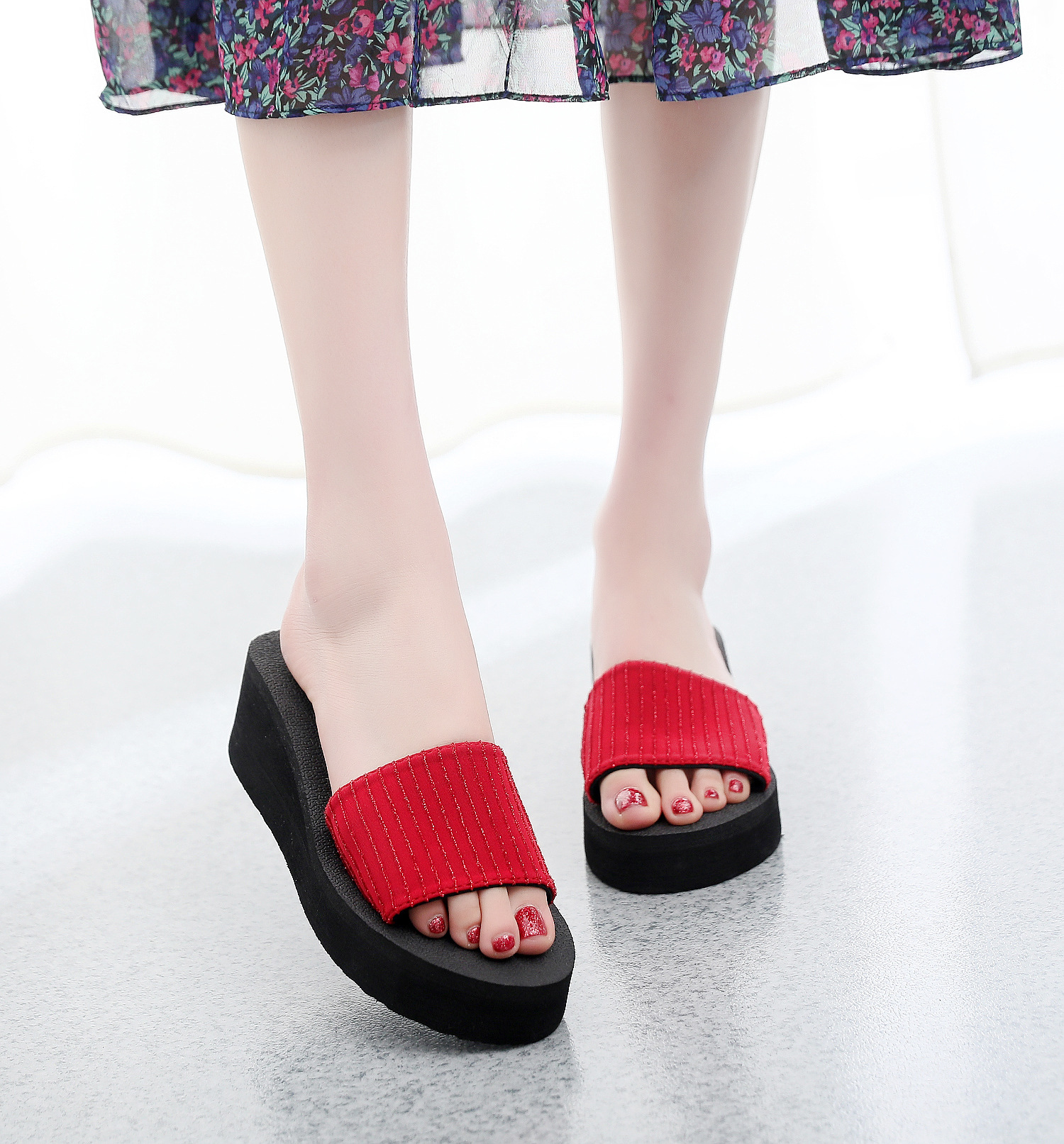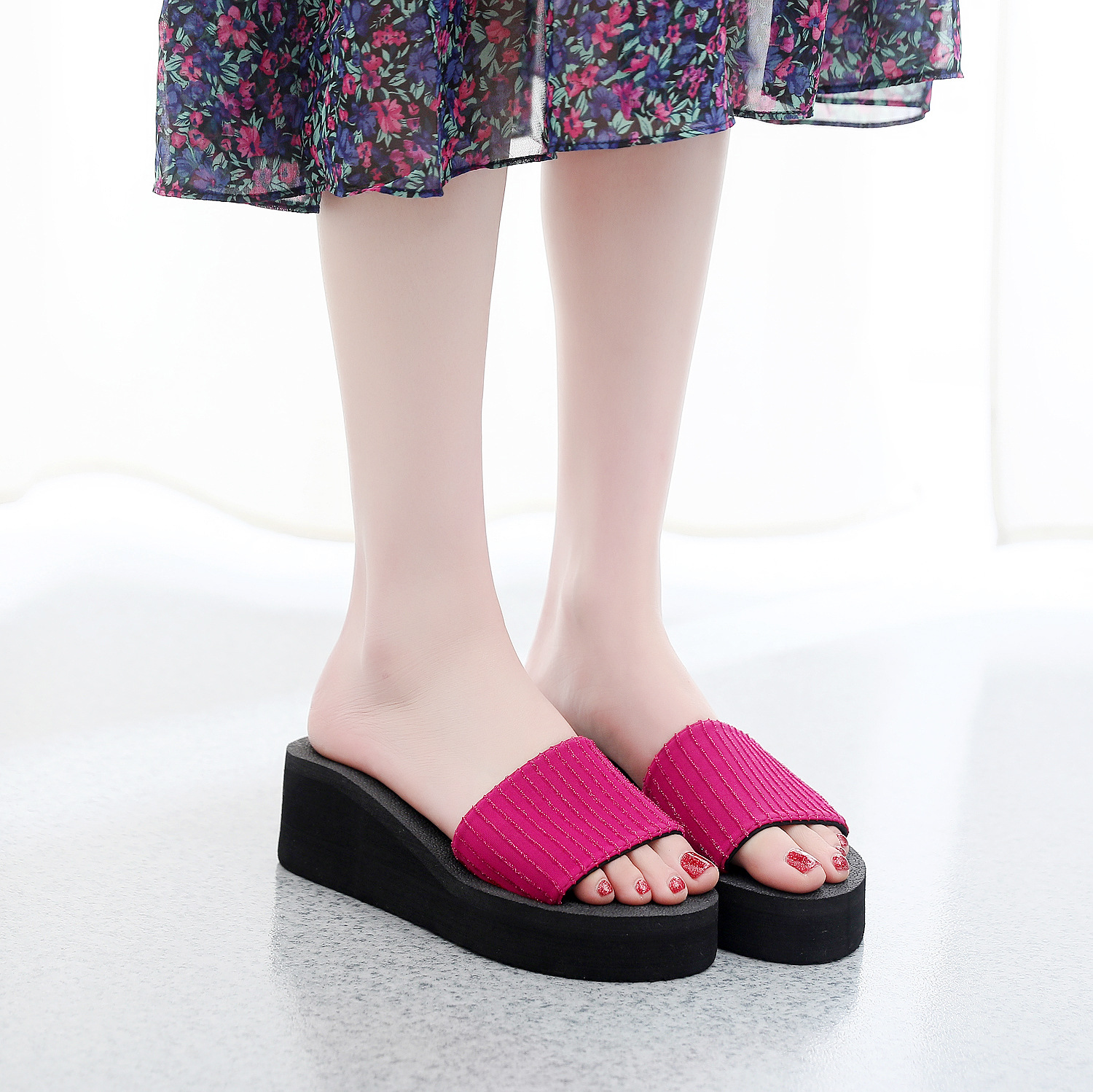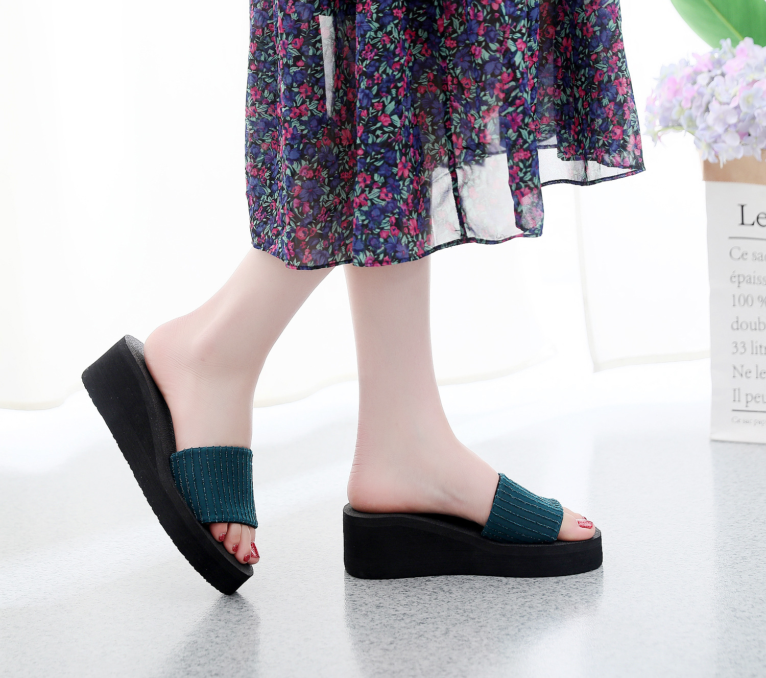 2021 여름 슬리퍼 여성용 스위트 웨지 하이힐 샌들 플랫폼 두꺼운 밑창 슬리퍼 슬리퍼 실내 슬리퍼스토어 가기