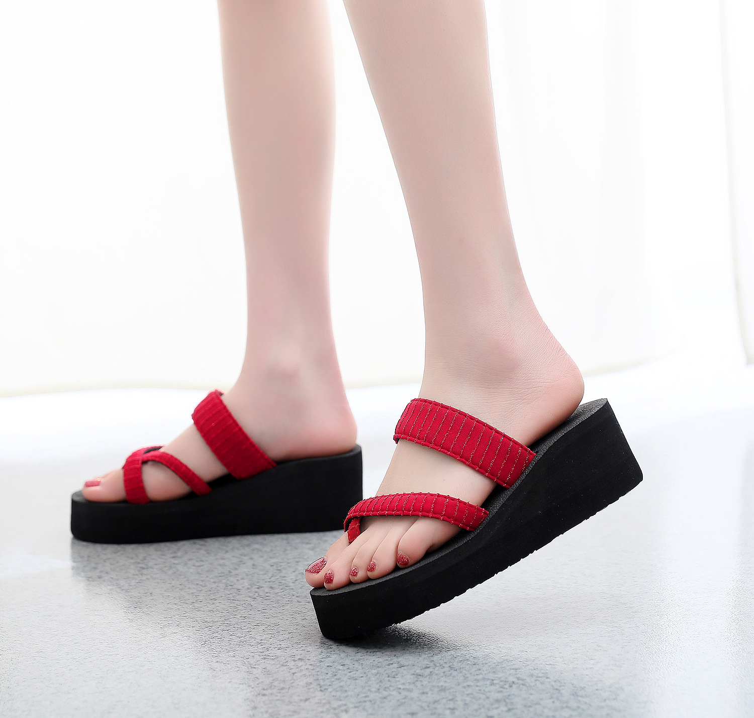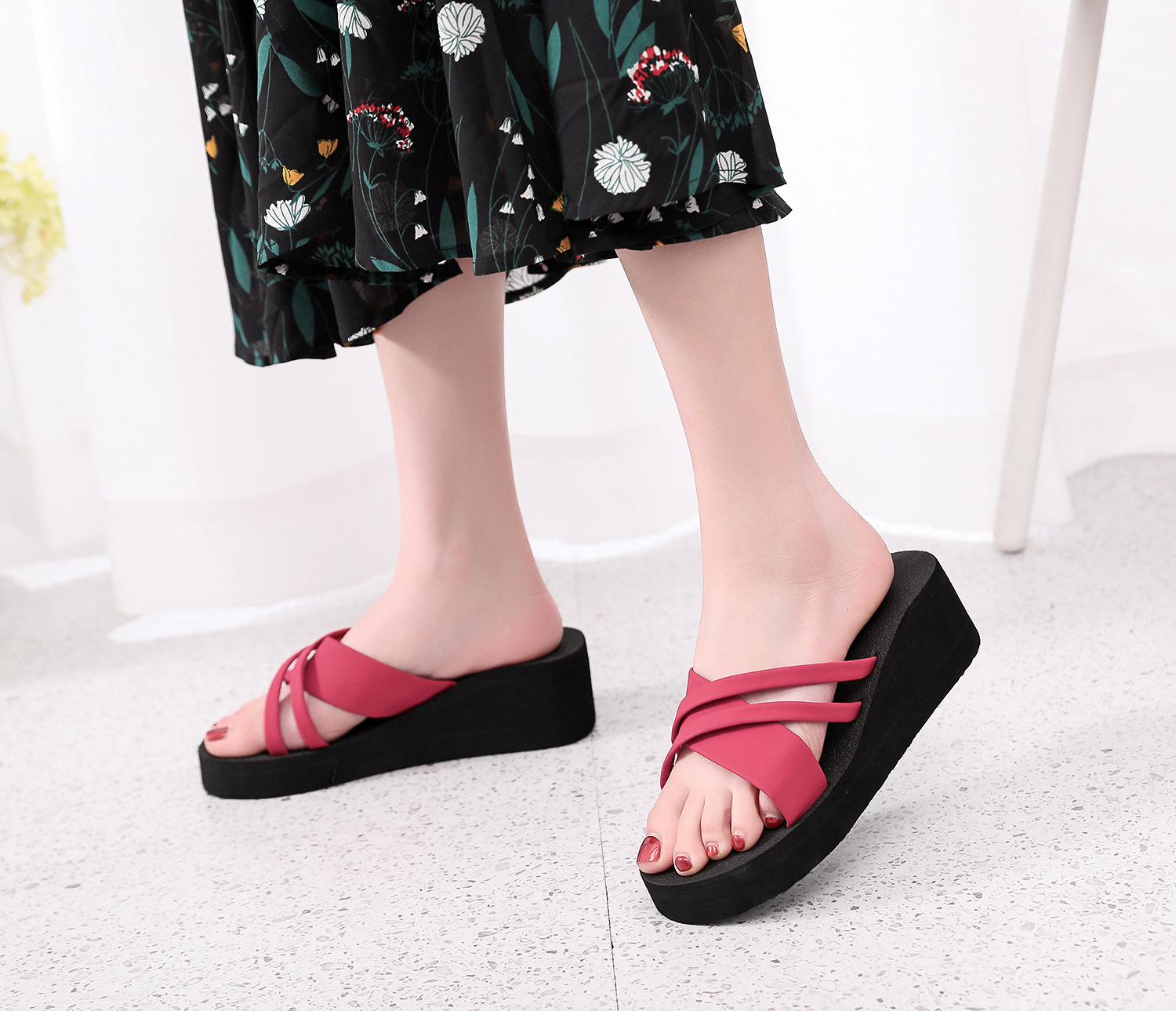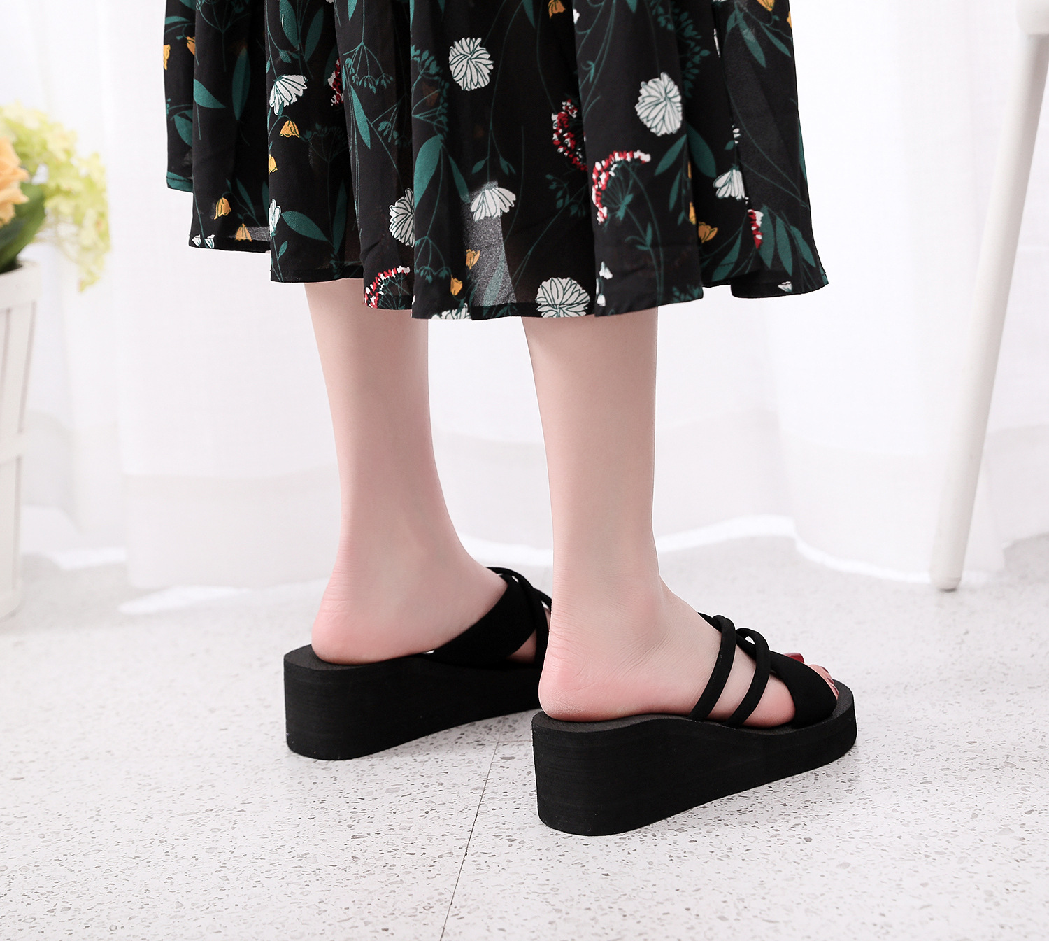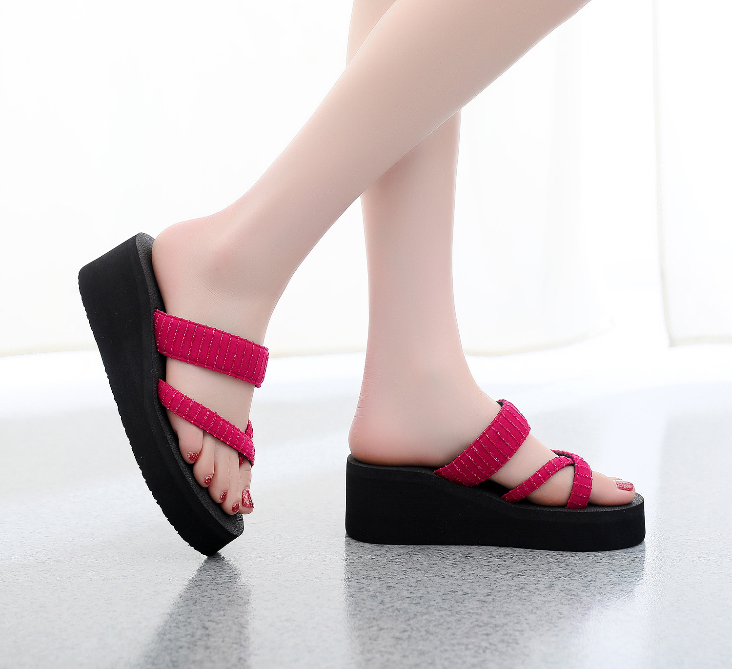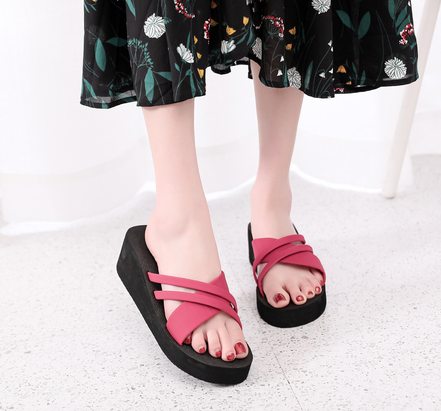 2021 여름 슬리퍼 여성용 스위트 웨지 하이힐 샌들 플랫폼 두꺼운 밑창 슬리퍼 슬리퍼 실내 슬리퍼스토어 가기