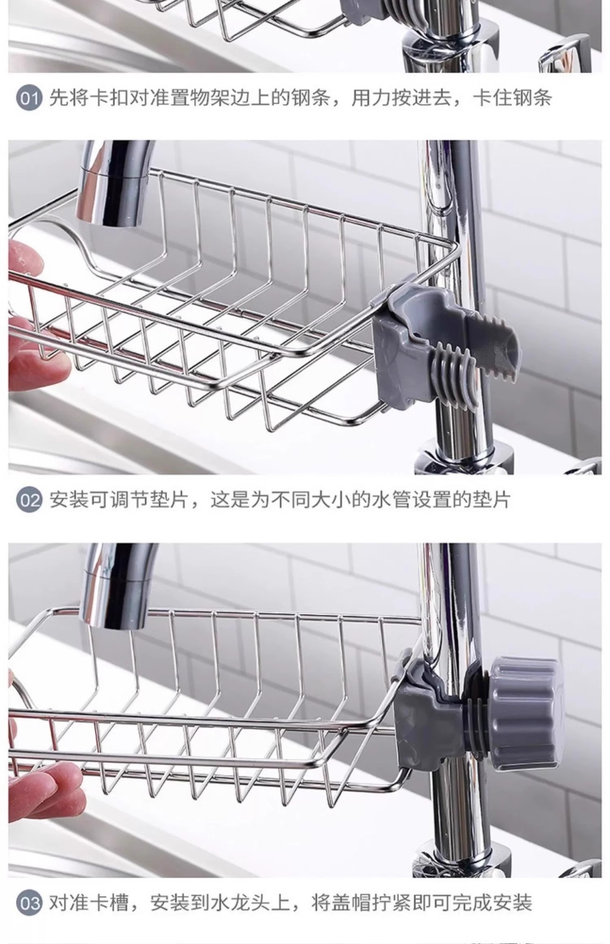 가정용 주방 싱크 수도꼭지 보관함 스테인레스 스틸 배수구 창의적인 단일 레이어 걸레 및 위생 용품 보관함스토어 가기
