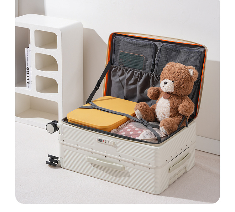 사이드 플립형 여행가방, 앞면 개폐식 여성용 알루미늄 프레임 비밀번호 여행용 트롤리 가방 24인치 방수