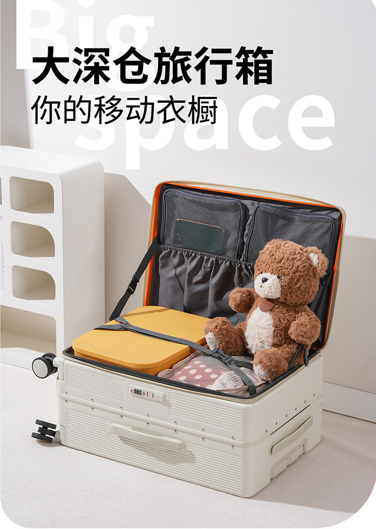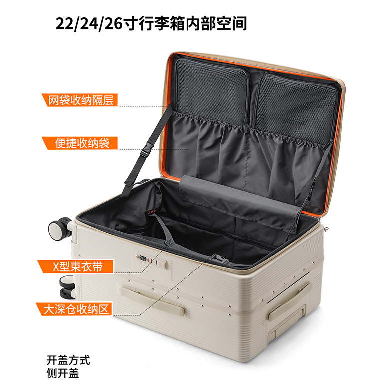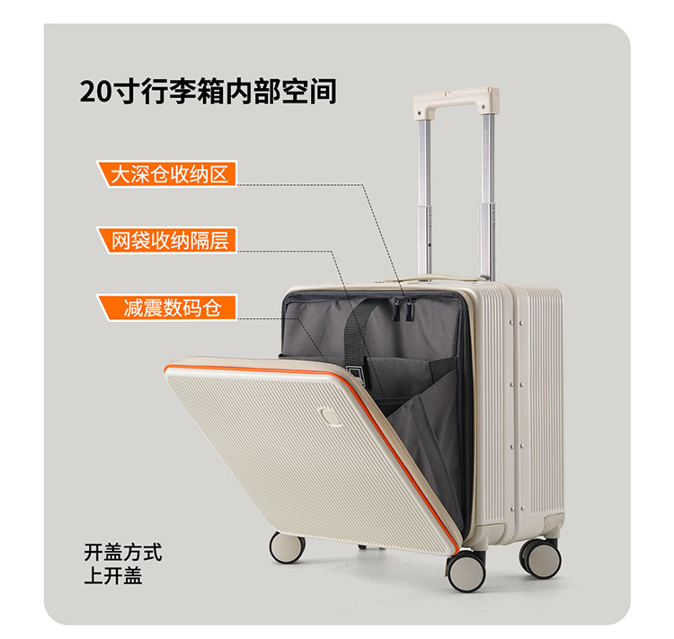 사이드 플립형 여행가방, 앞면 개폐식 여성용 알루미늄 프레임 비밀번호 여행용 트롤리 가방 24인치 방수스토어 가기