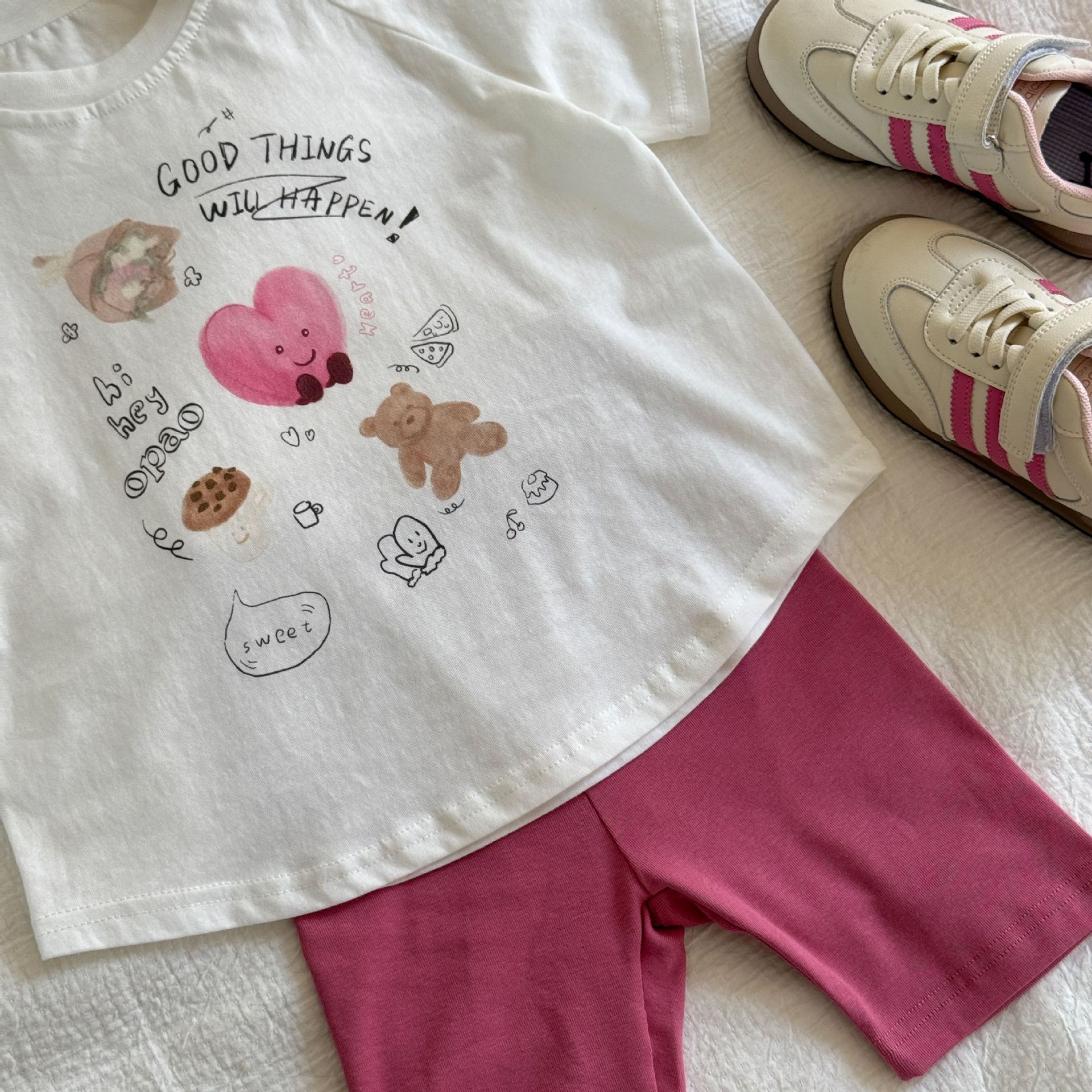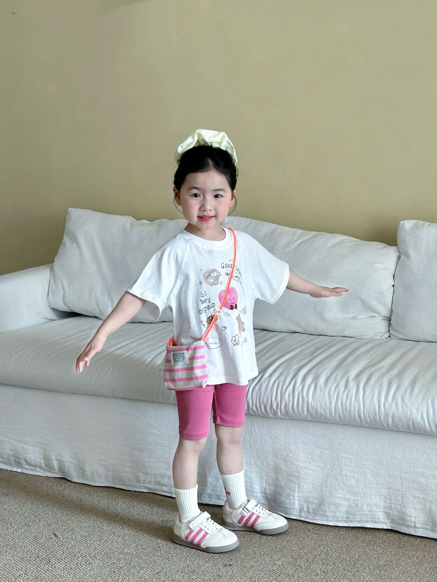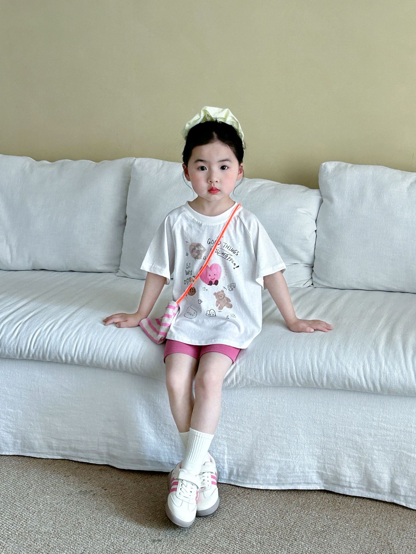 한국 아동복 2025 여름 새로운 외국 스타일 귀여운 여성 아기 한국 만화 반팔 반바지 유치원 세트스토어 가기