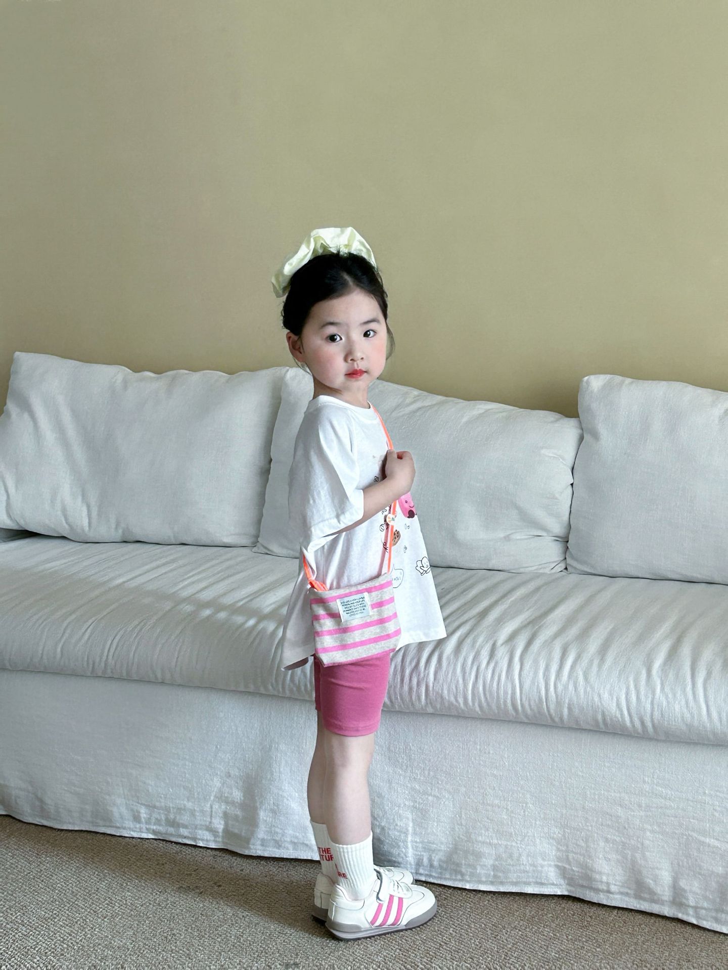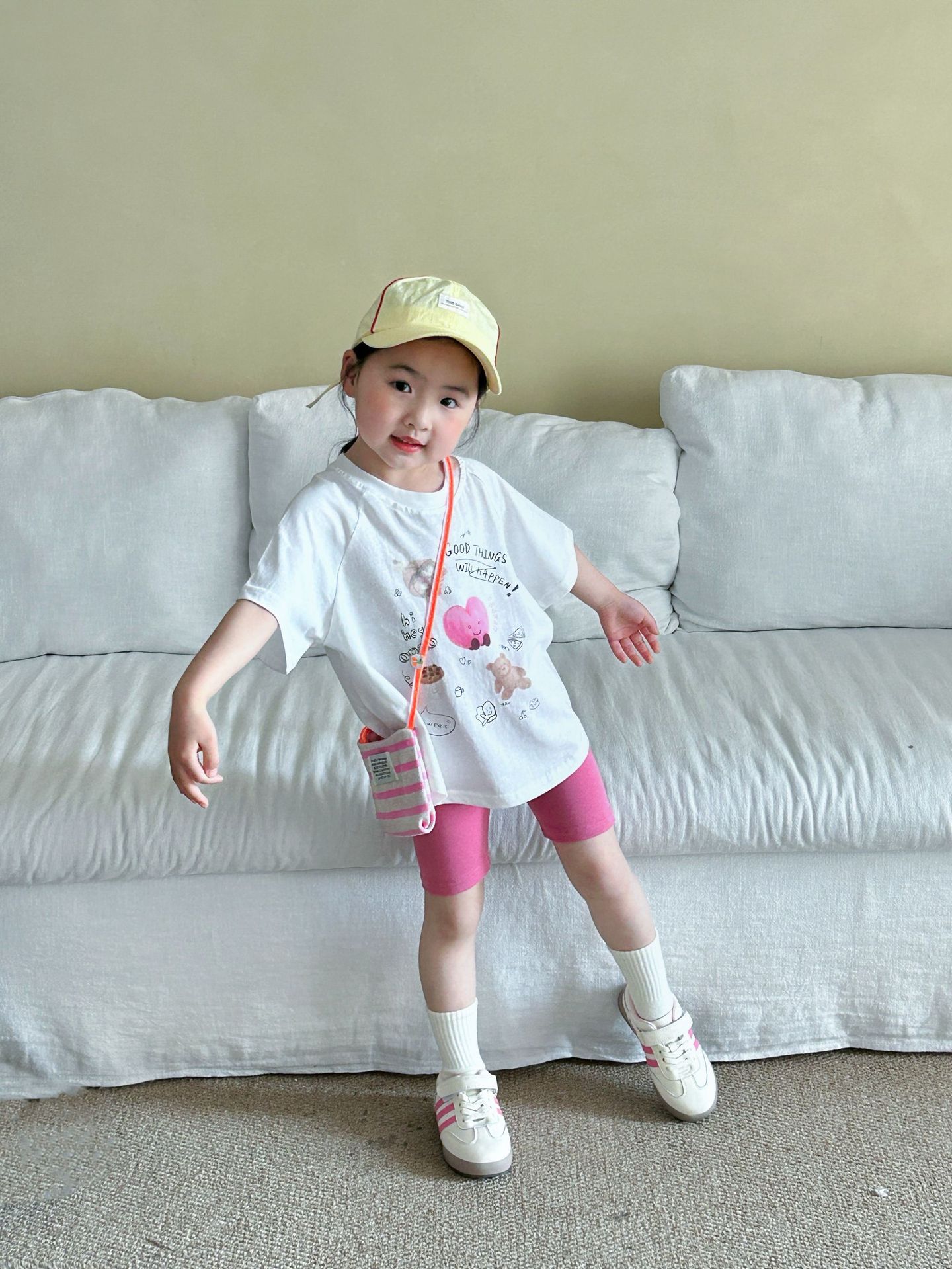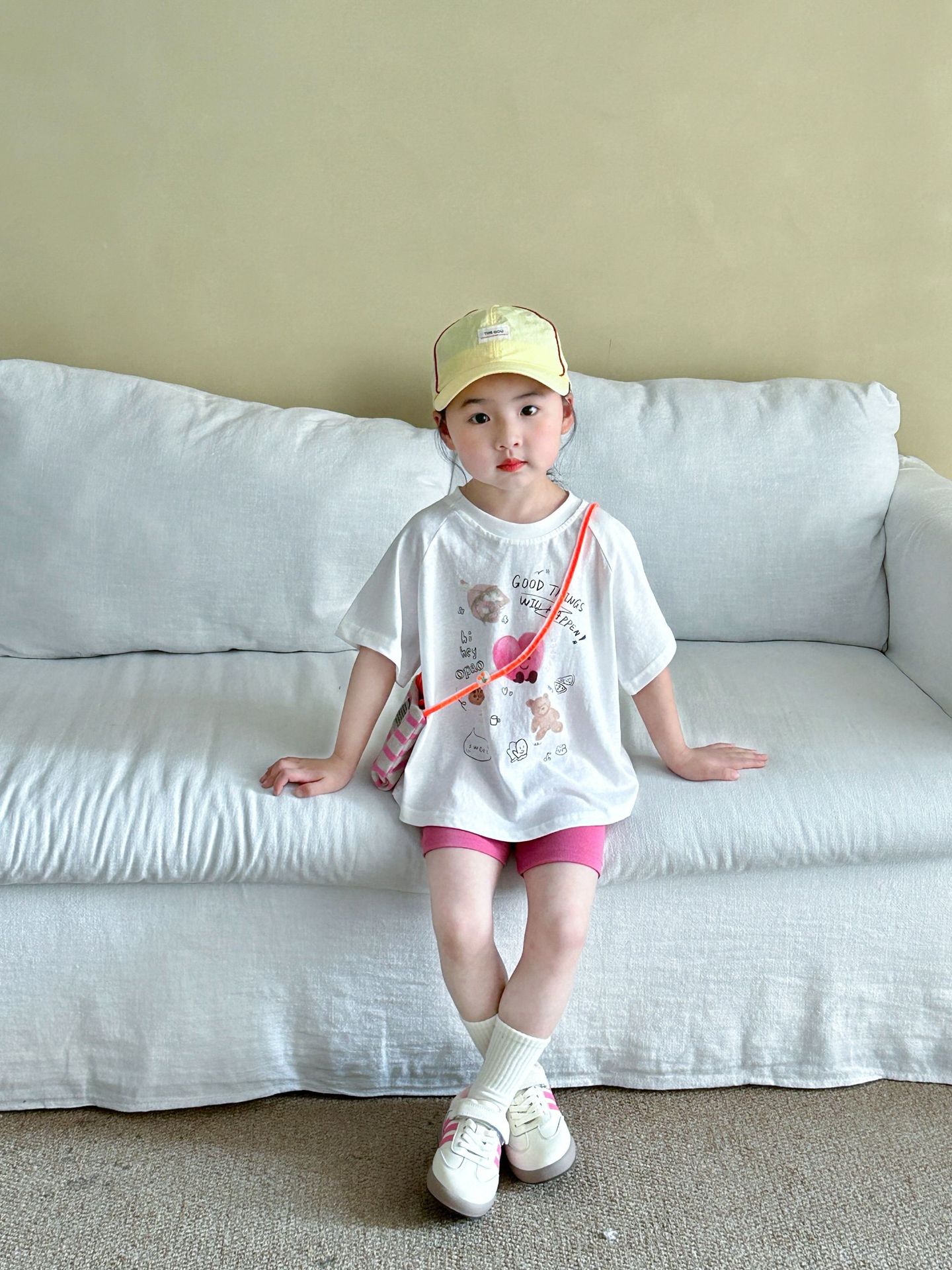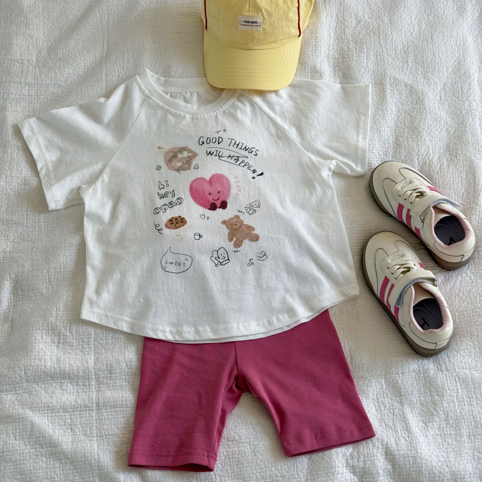한국 아동복 2025 여름 새로운 외국 스타일 귀여운 여성 아기 한국 만화 반팔 반바지 유치원 세트스토어 가기