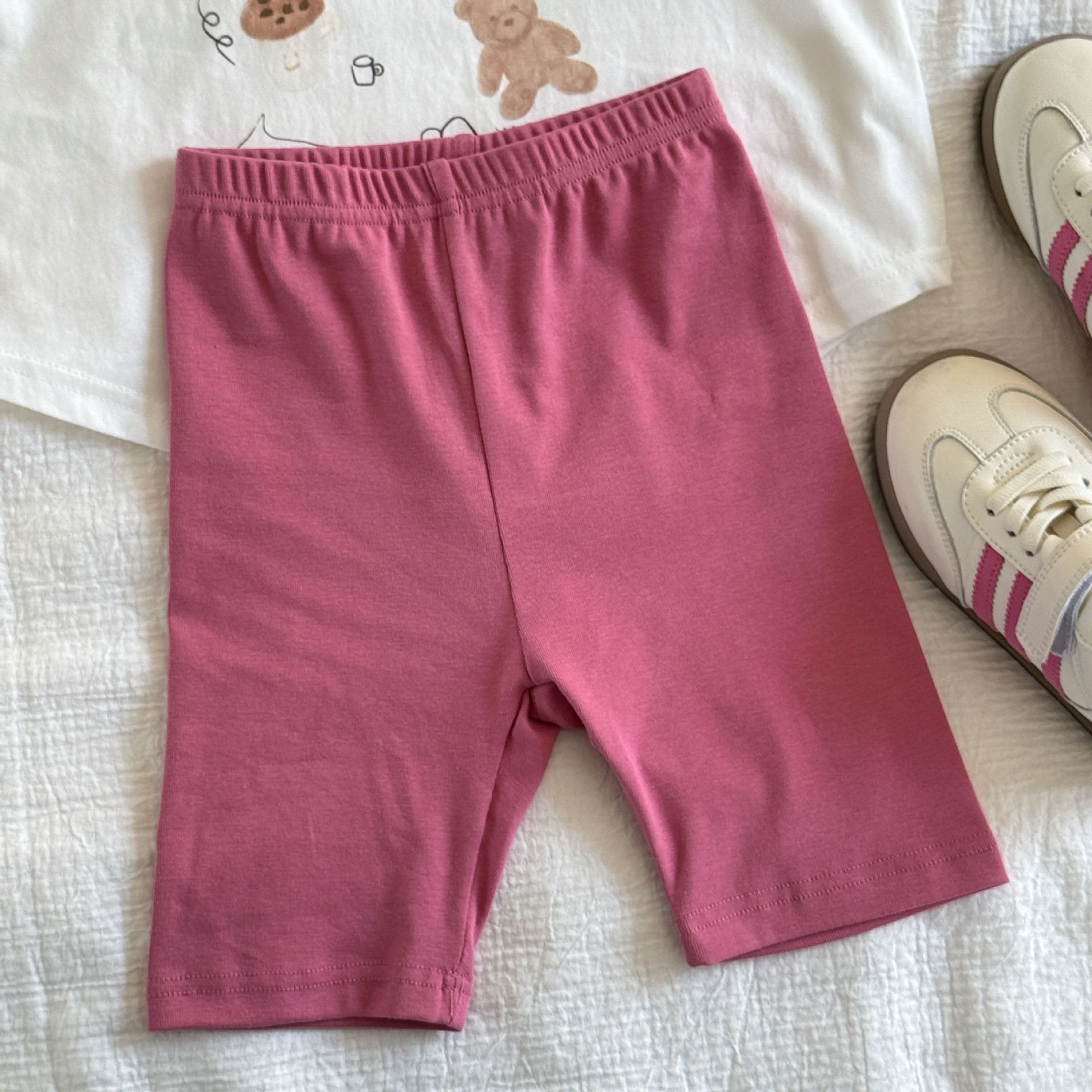 한국 아동복 2025 여름 새로운 외국 스타일 귀여운 여성 아기 한국 만화 반팔 반바지 유치원 세트