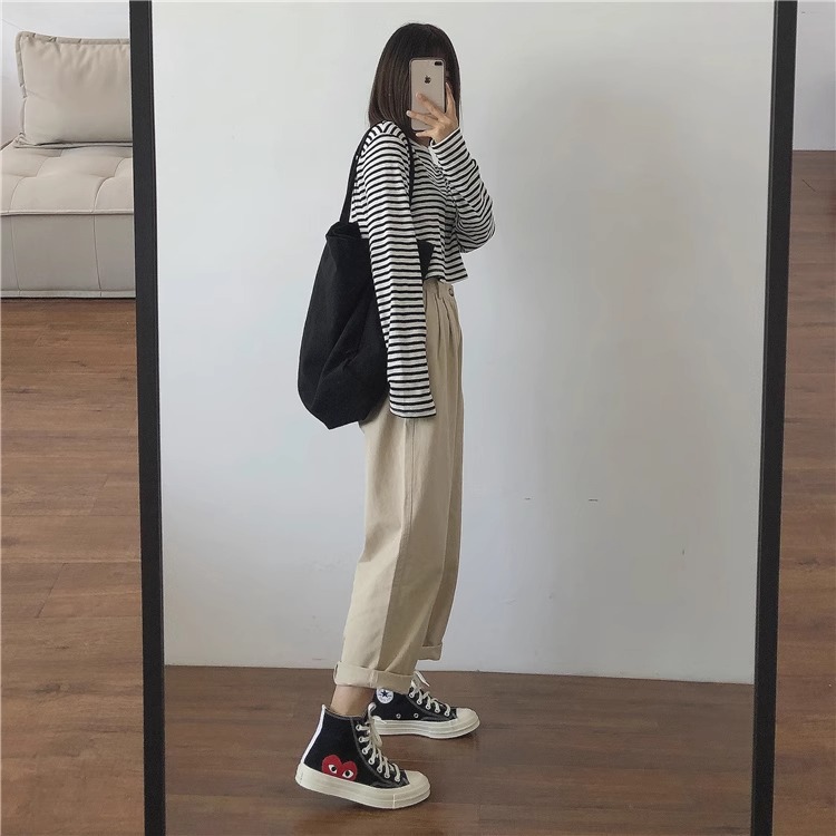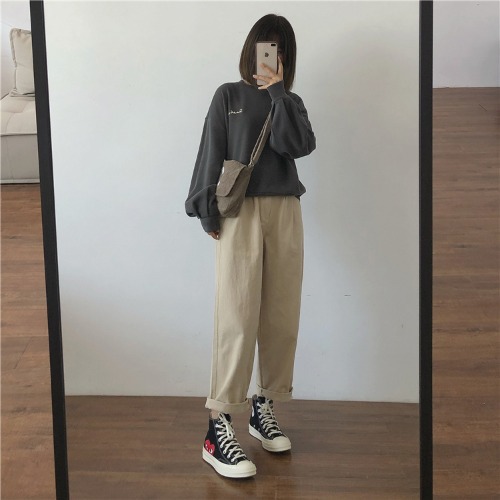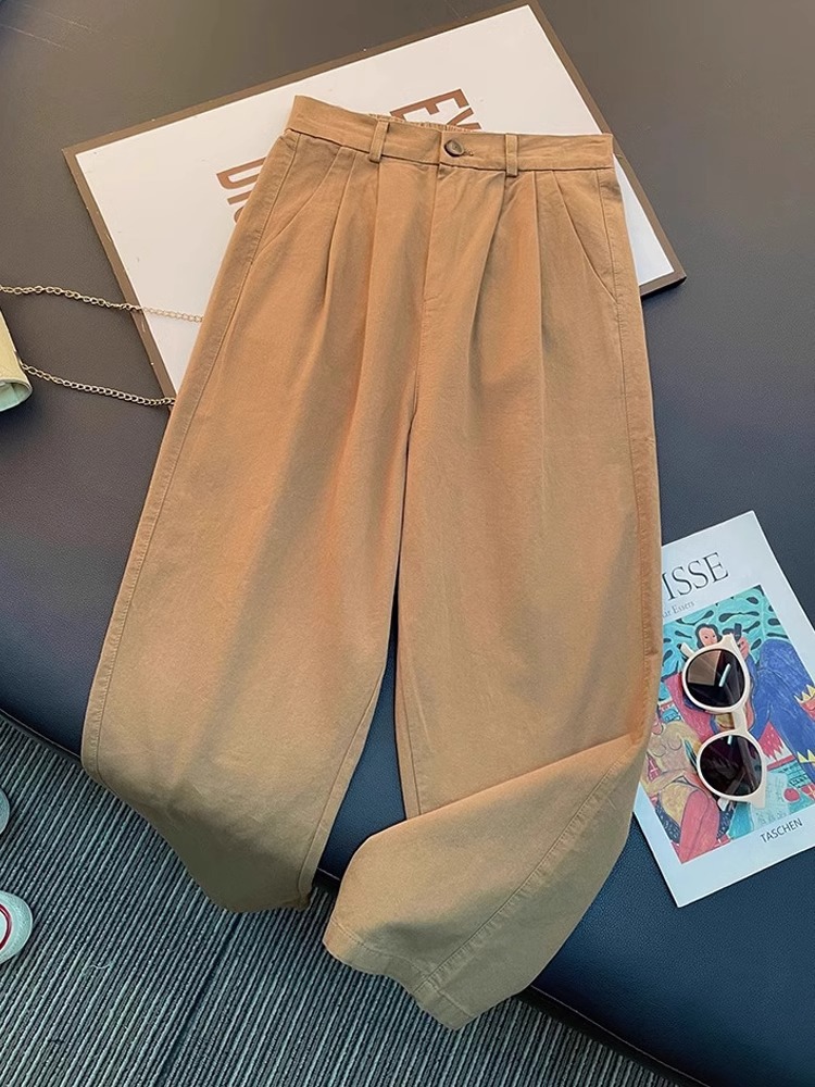 小个子卡其色工装裤女春夏显高搭配显瘦直筒宽松休闲