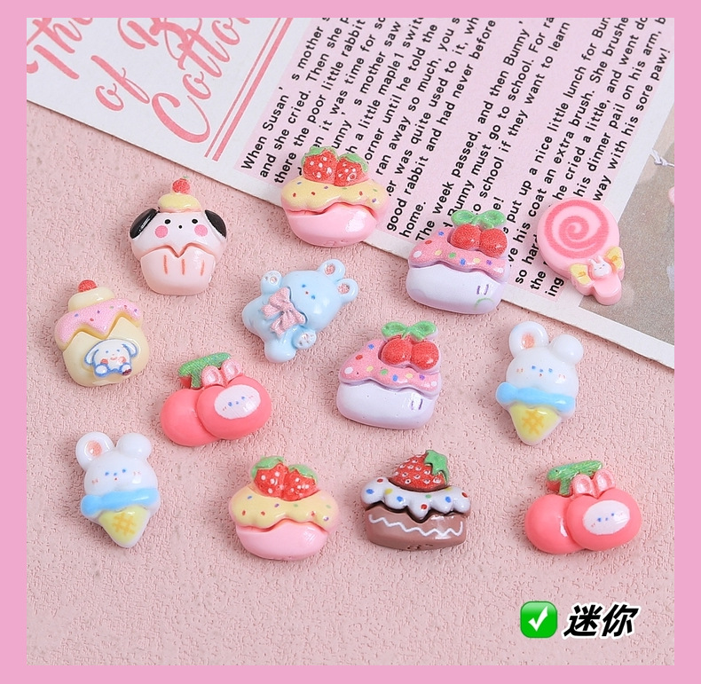 미니 체리 케이크 음식 장난감 만화 diy 쥬얼리 액세서리 크림 접착제 수지 작은 액세서리 구멍 신발 버클 재료스토어 가기