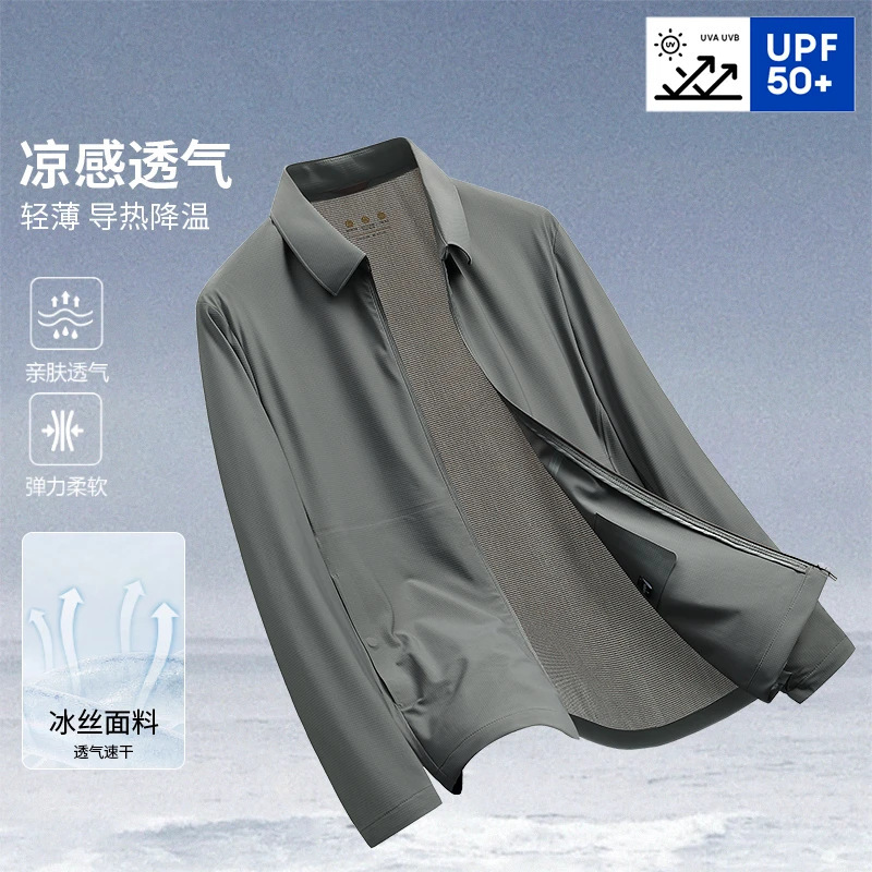 [자외선 차단제 에어컨 재킷] 여름 옷깃 비즈니스 임원 아이스 실크 남성 시원한 통기성 자외선 차단제스토어 가기