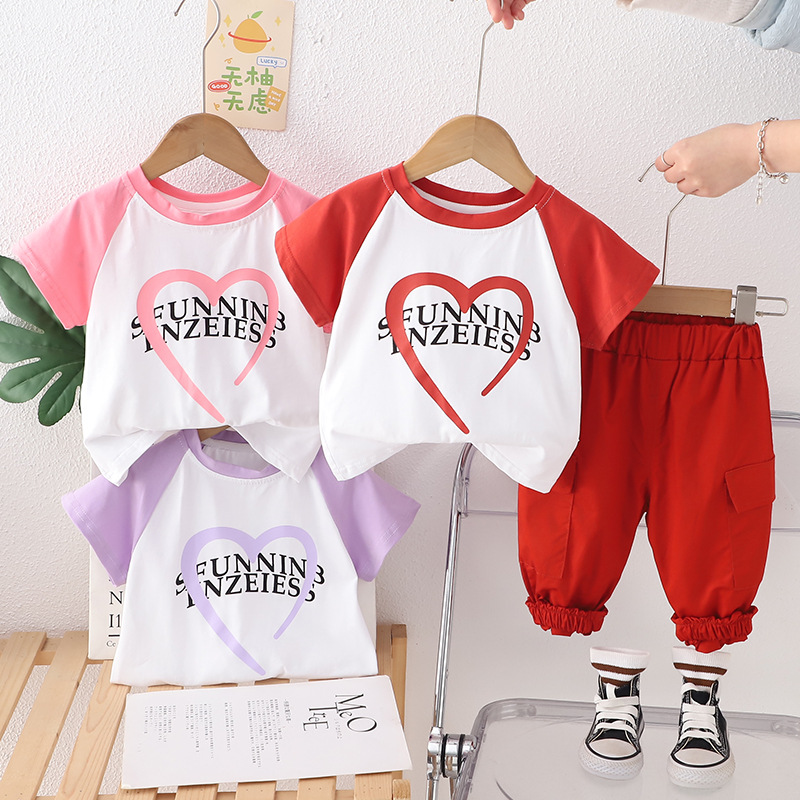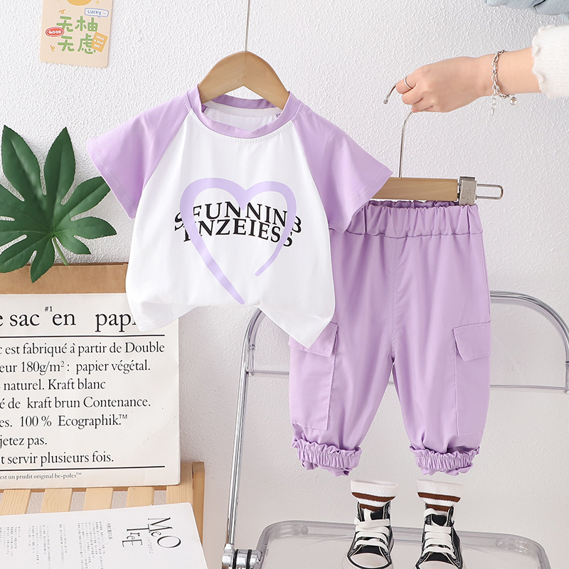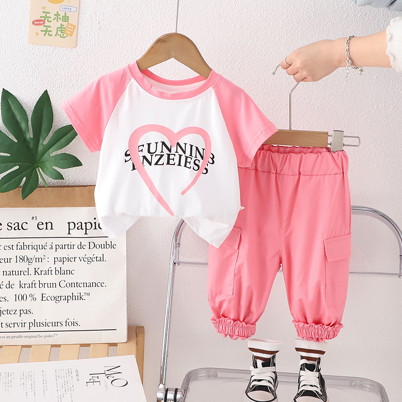 2025년 여름 어린이와 중년 어린이의 세련된 사랑 영어 라펠 바지 정장 유행 여름 소녀 아기 반팔 정장
