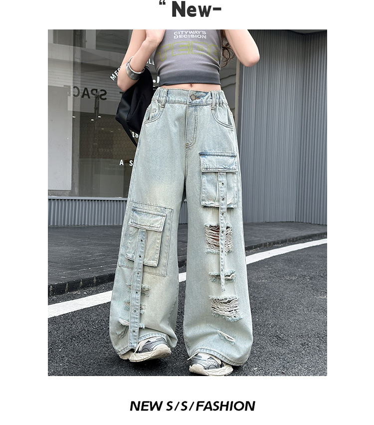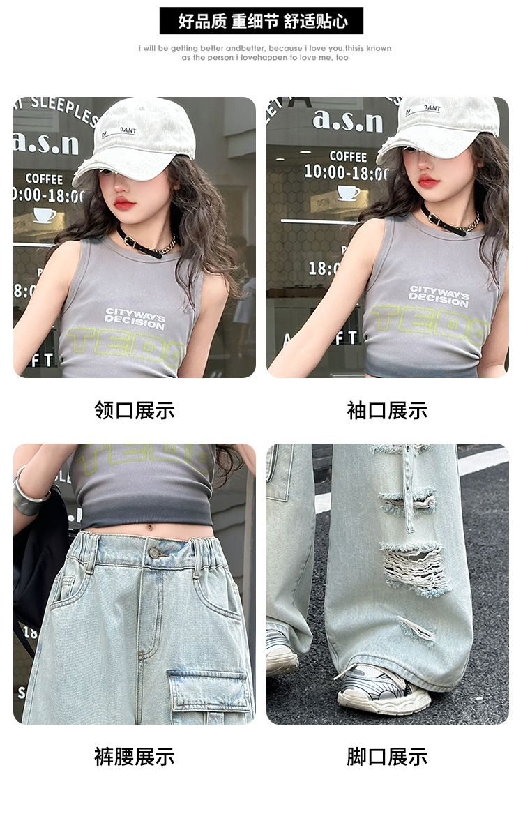 소녀 크록 팬츠 얇은 여름 2025 새로운 스타일 중대형 어린이 패셔널 리핑 청바지 어린이 거리 댄스 와이드 레그 팬츠스토어 가기