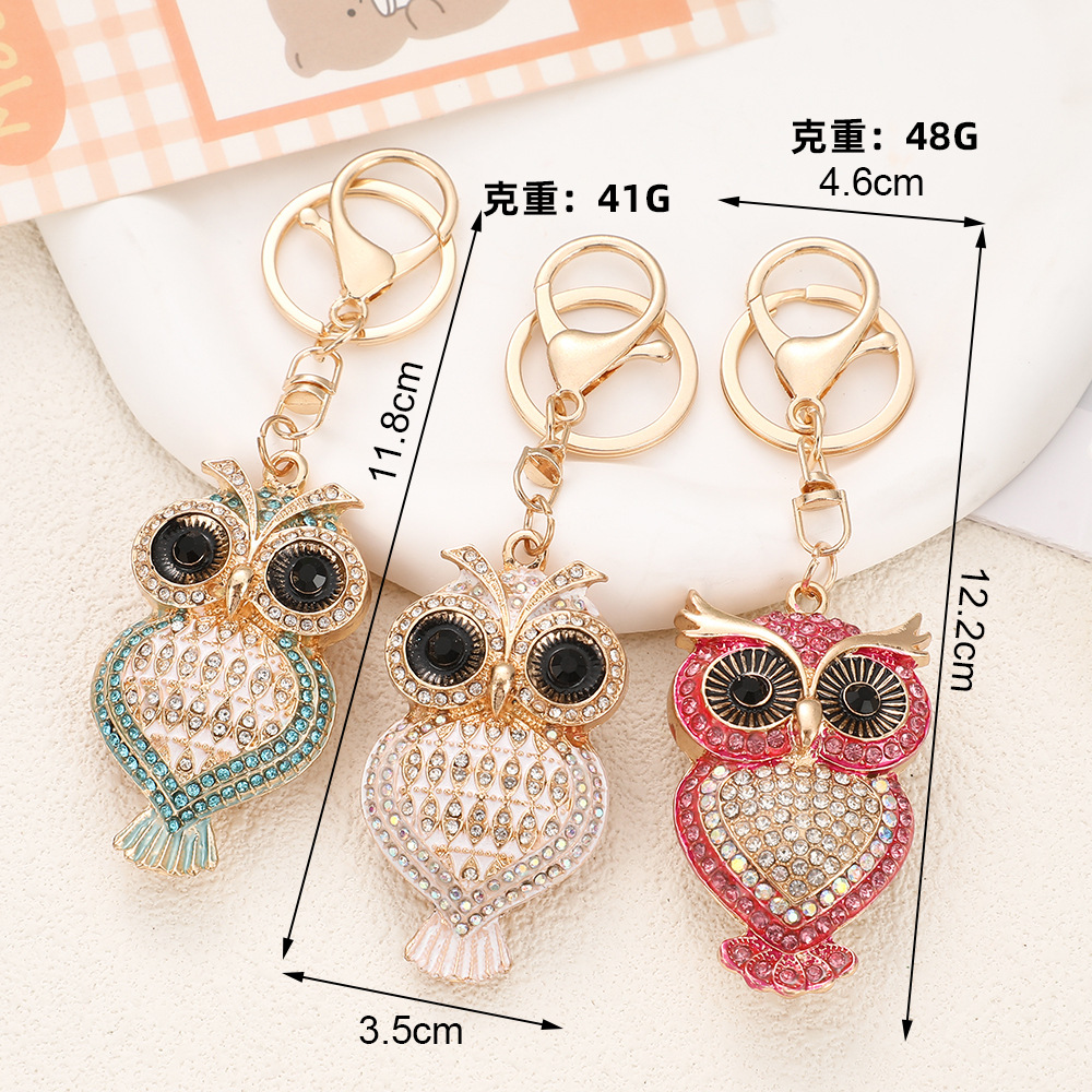 다이아몬드가 박힌 유럽과 미국의 올빼미 자동차 키 체인 여성 귀여운 가방 펜던트 금속 열쇠 고리 크로스 보더 크리 에이 티브 선물스토어 가기