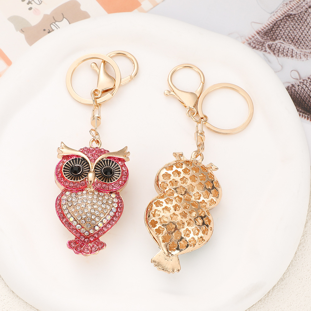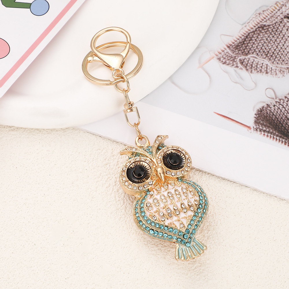 다이아몬드가 박힌 유럽과 미국의 올빼미 자동차 키 체인 여성 귀여운 가방 펜던트 금속 열쇠 고리 크로스 보더 크리 에이 티브 선물